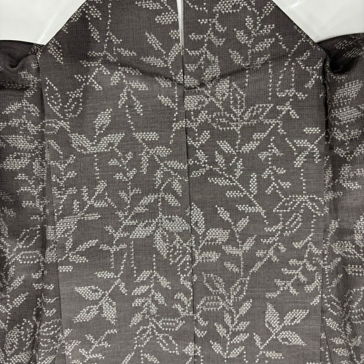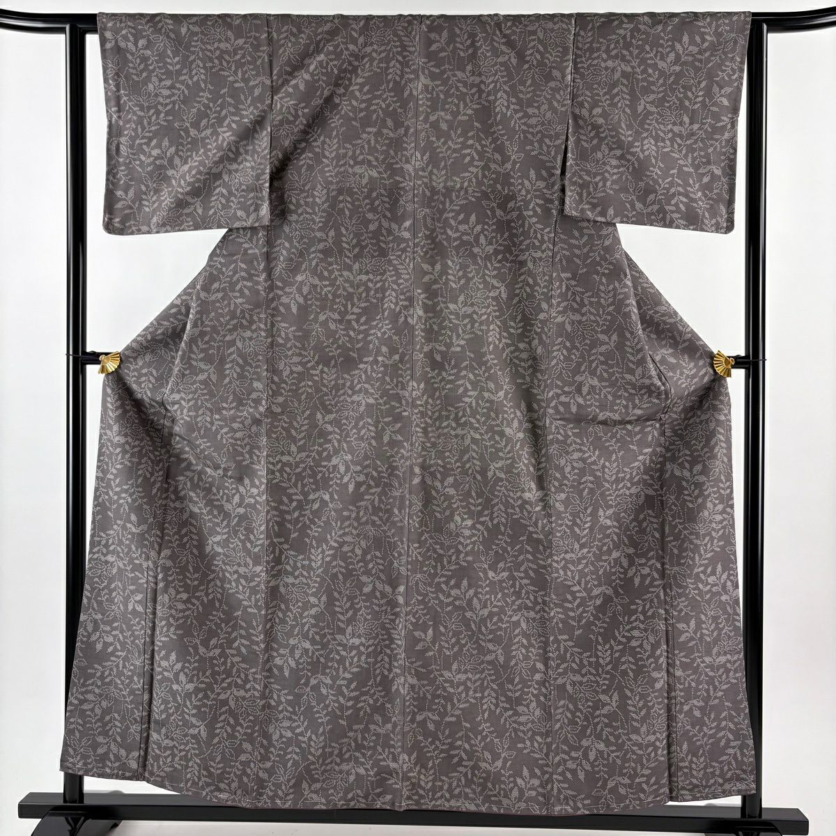 【最終値引き】 70%OFF 紬 身丈160cm 裄丈67cm M 袷 葉と実 流水 茶色 正絹 秀品 K70