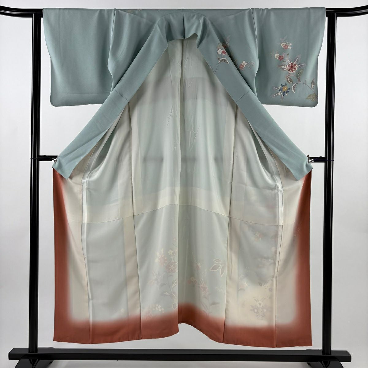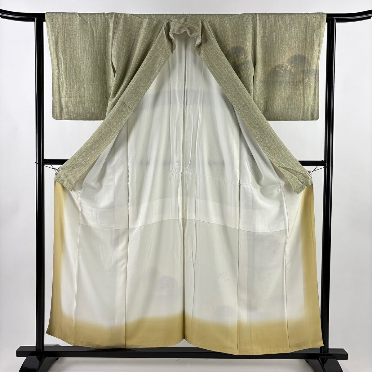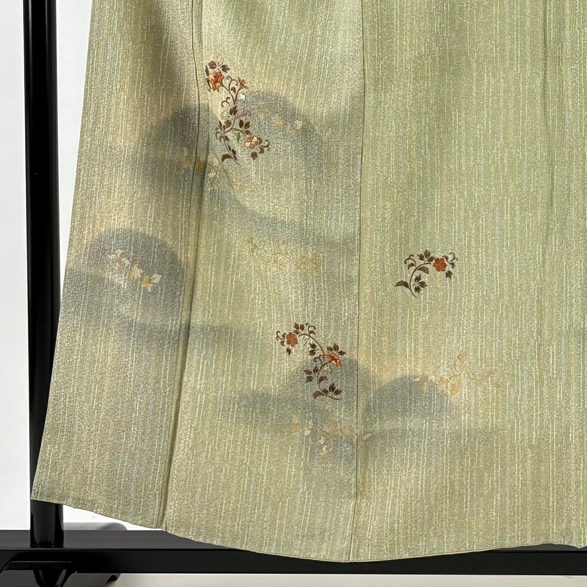 【在庫一掃】 付下げ 身丈157cm 裄丈64.5cm M 袷 落款あり 葉と実 刺繍 金糸 灰緑 正絹 秀品