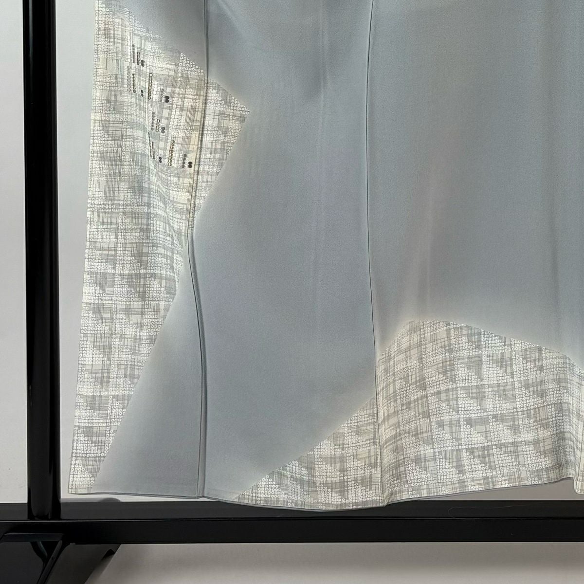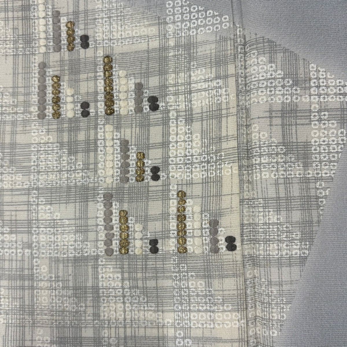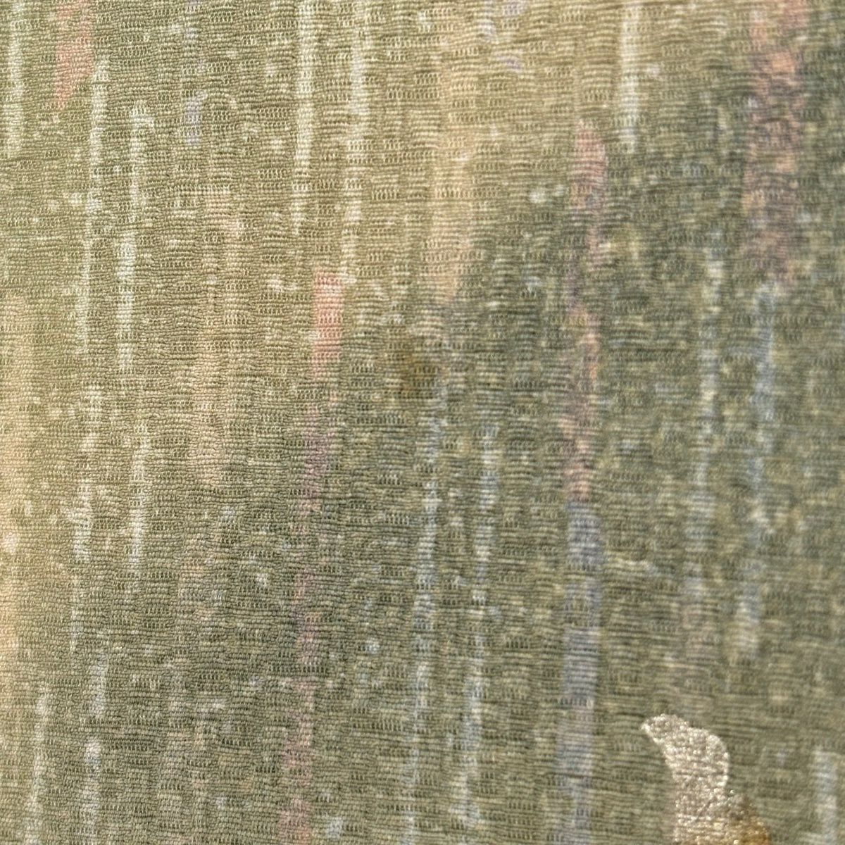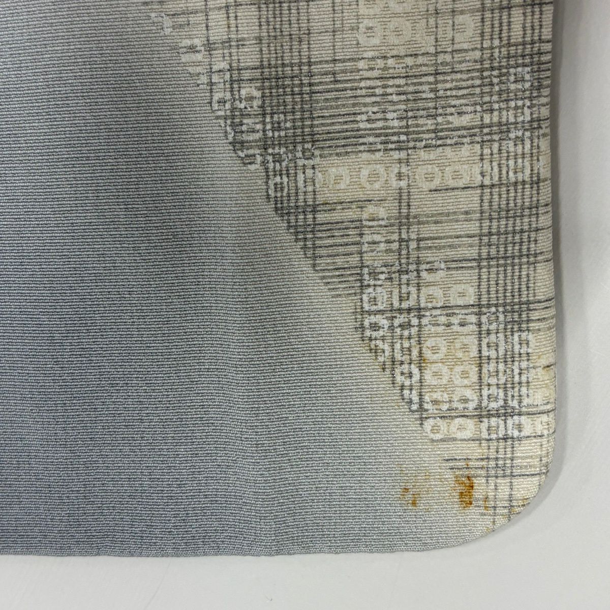 【最終値引き】 77%OFF 【美品】 袋帯 秀品 斜めぼかし 幾何学 銀糸 ベージュ 全通 正絹 K70