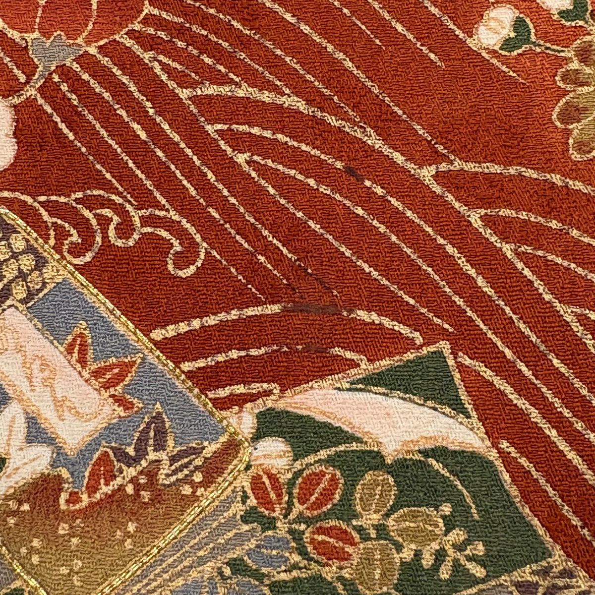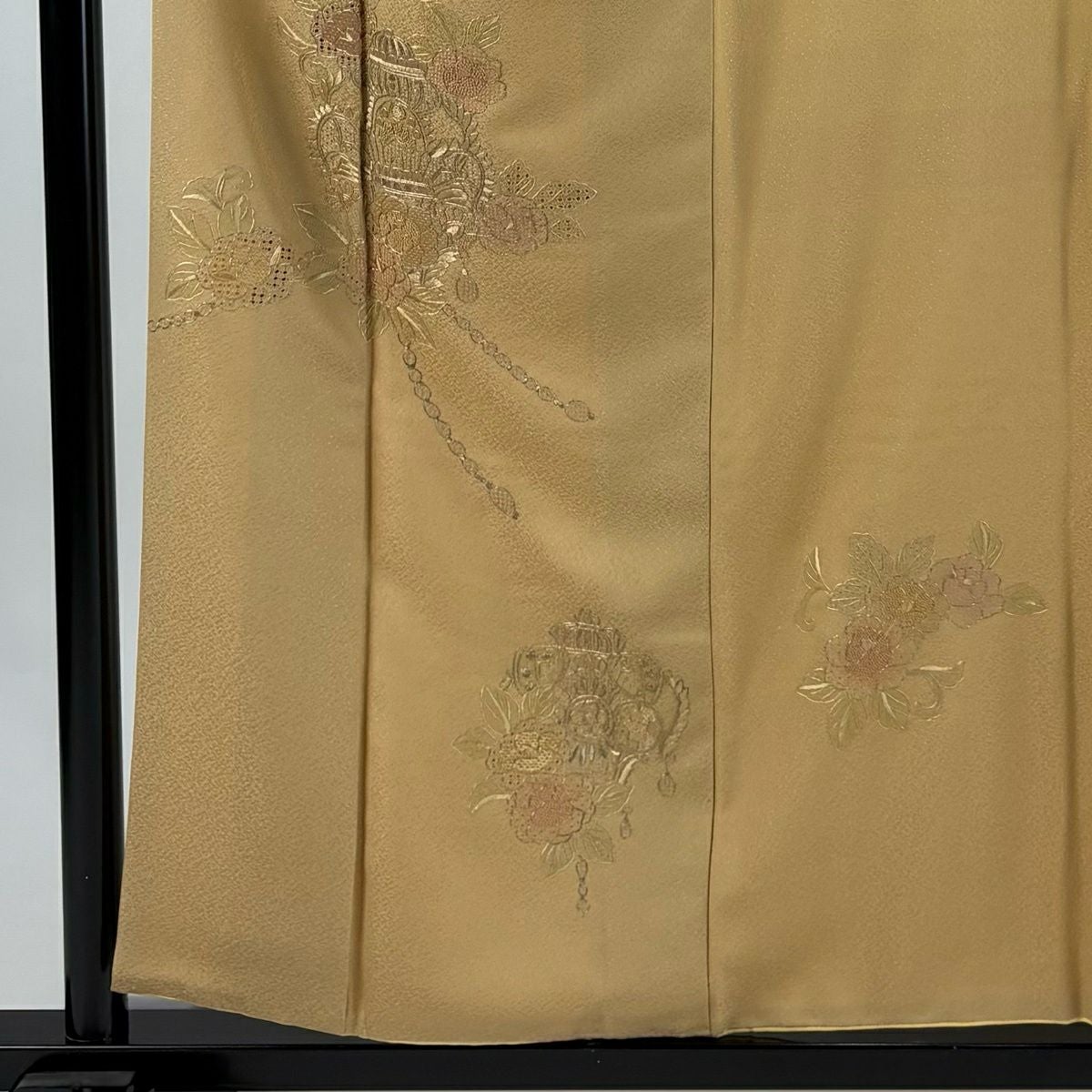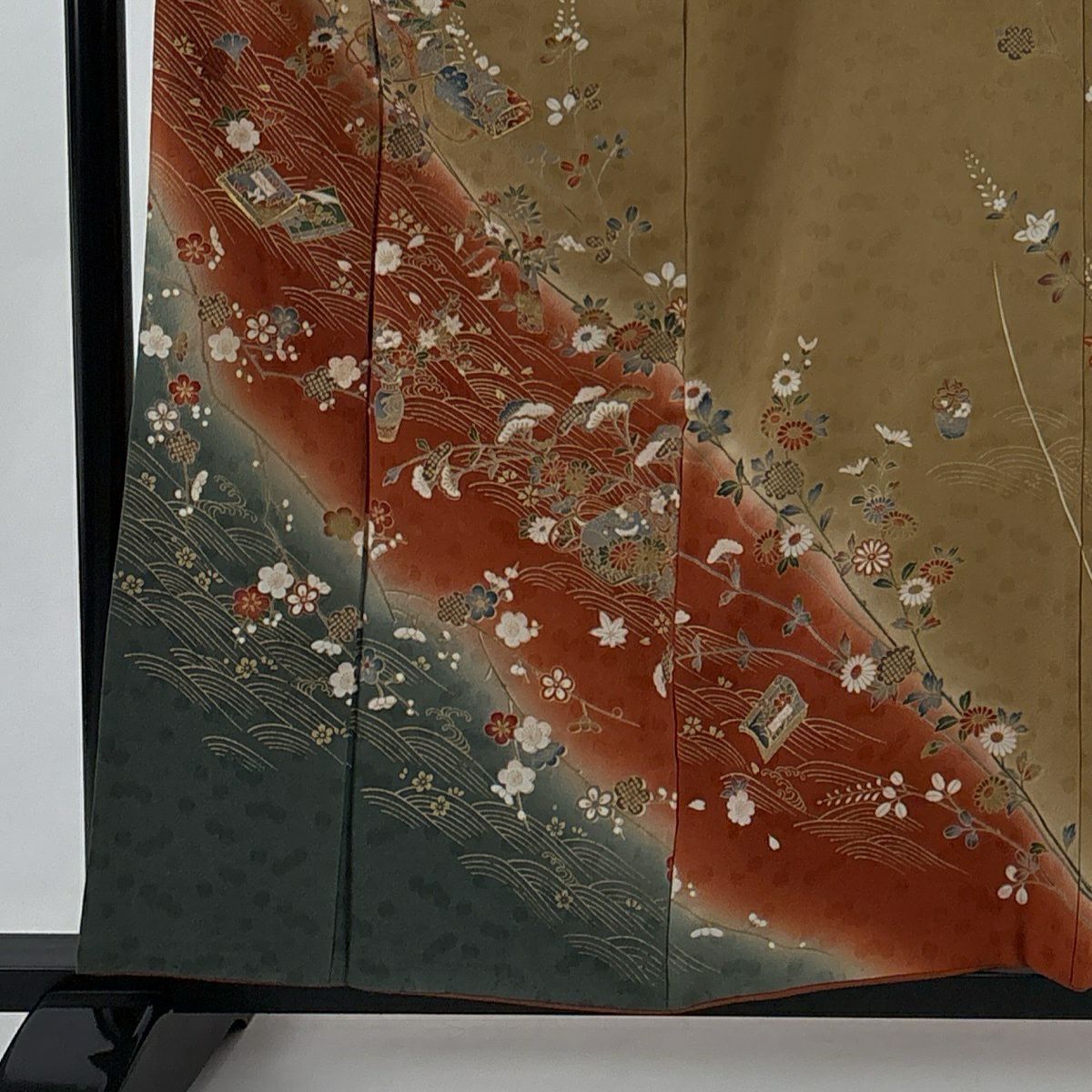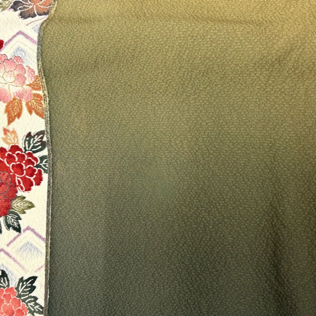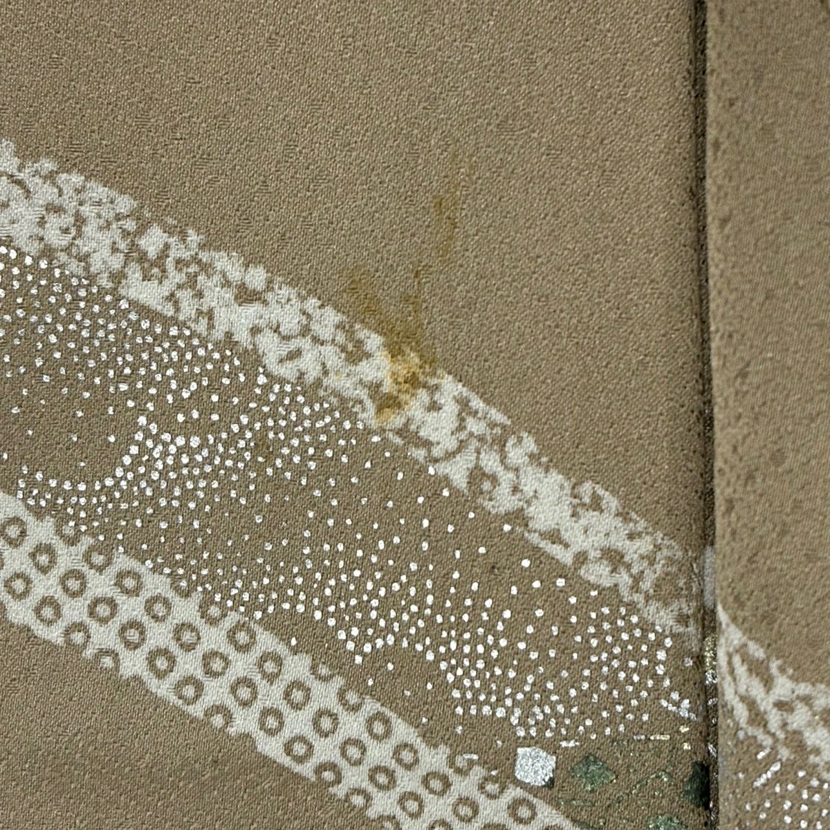 50%OFF 付下げ 身丈153.5cm 裄丈63cm S 袷 宝尽くし 刺繍 金彩 茶緑色 正絹 秀品 K50