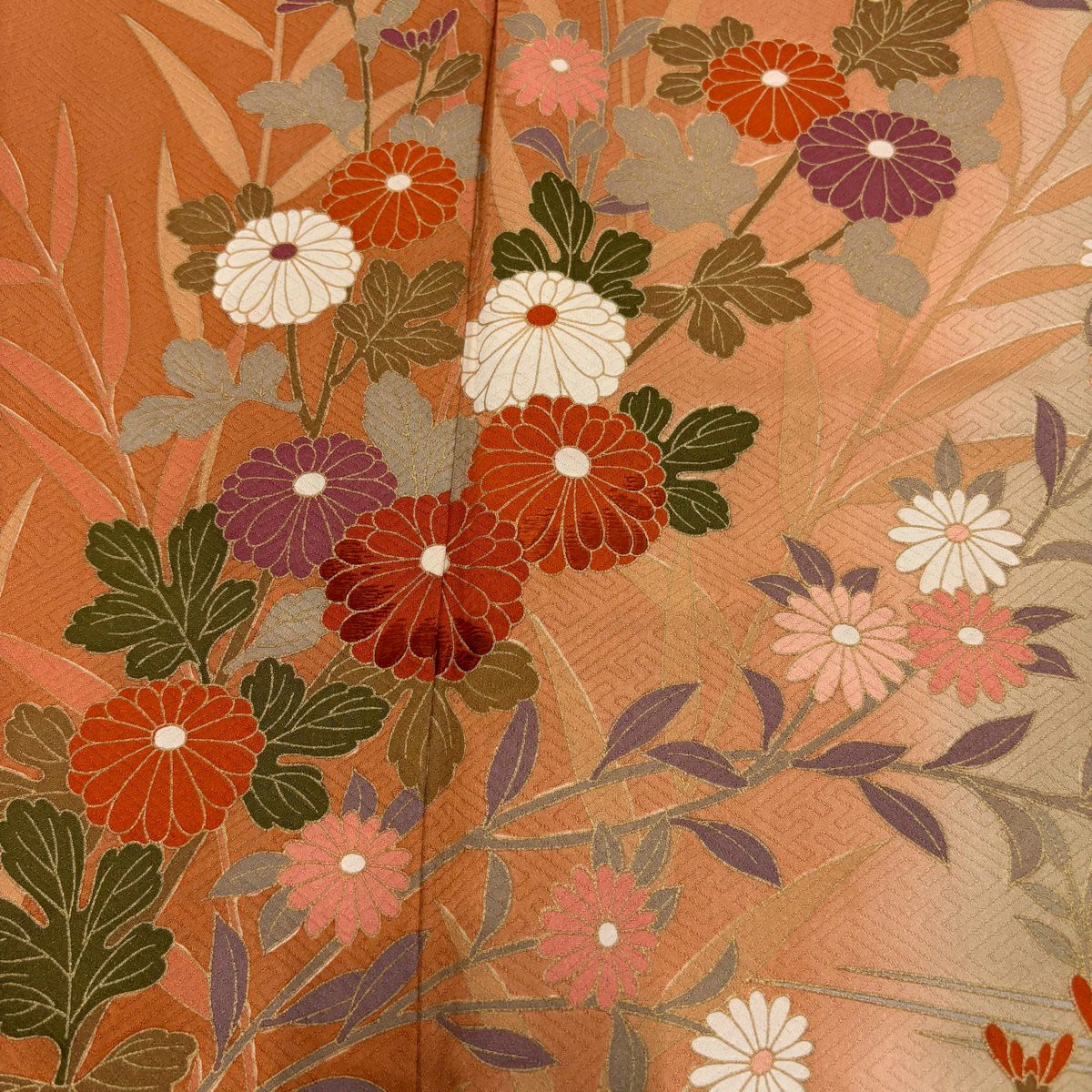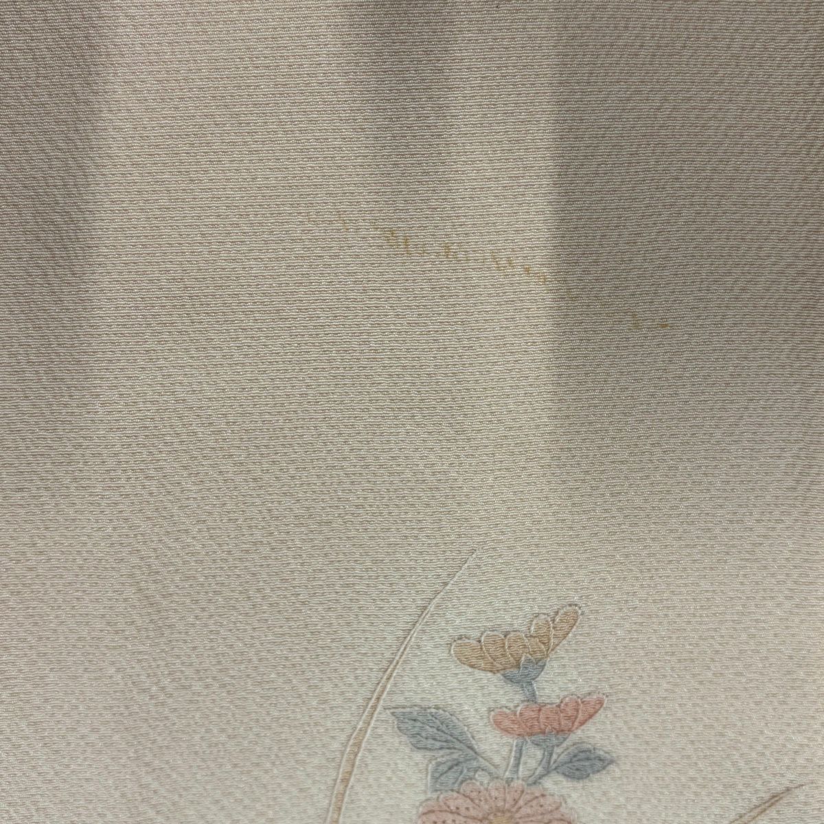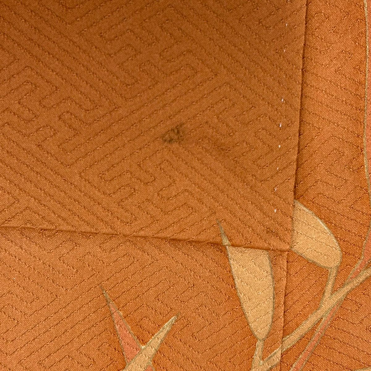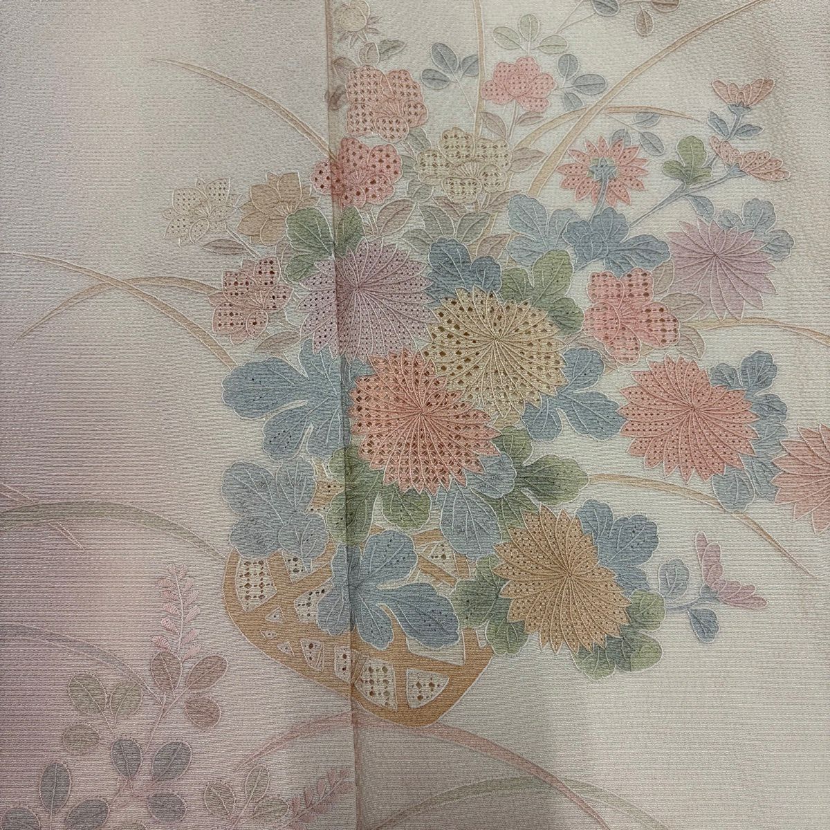 50%OFF 付下げ 身丈155cm 裄丈64cm M 袷 紬地 萩 菊 刺繍 薄オレンジ 正絹 秀品 K50