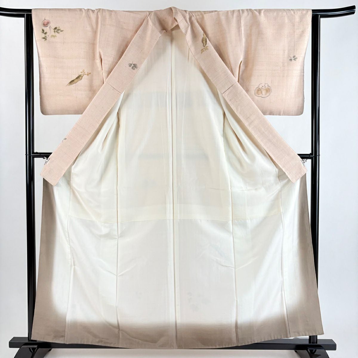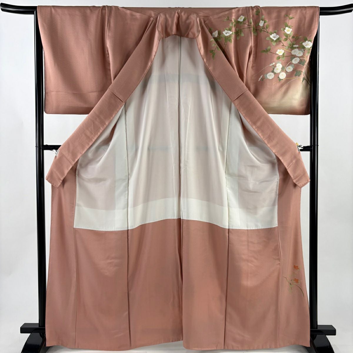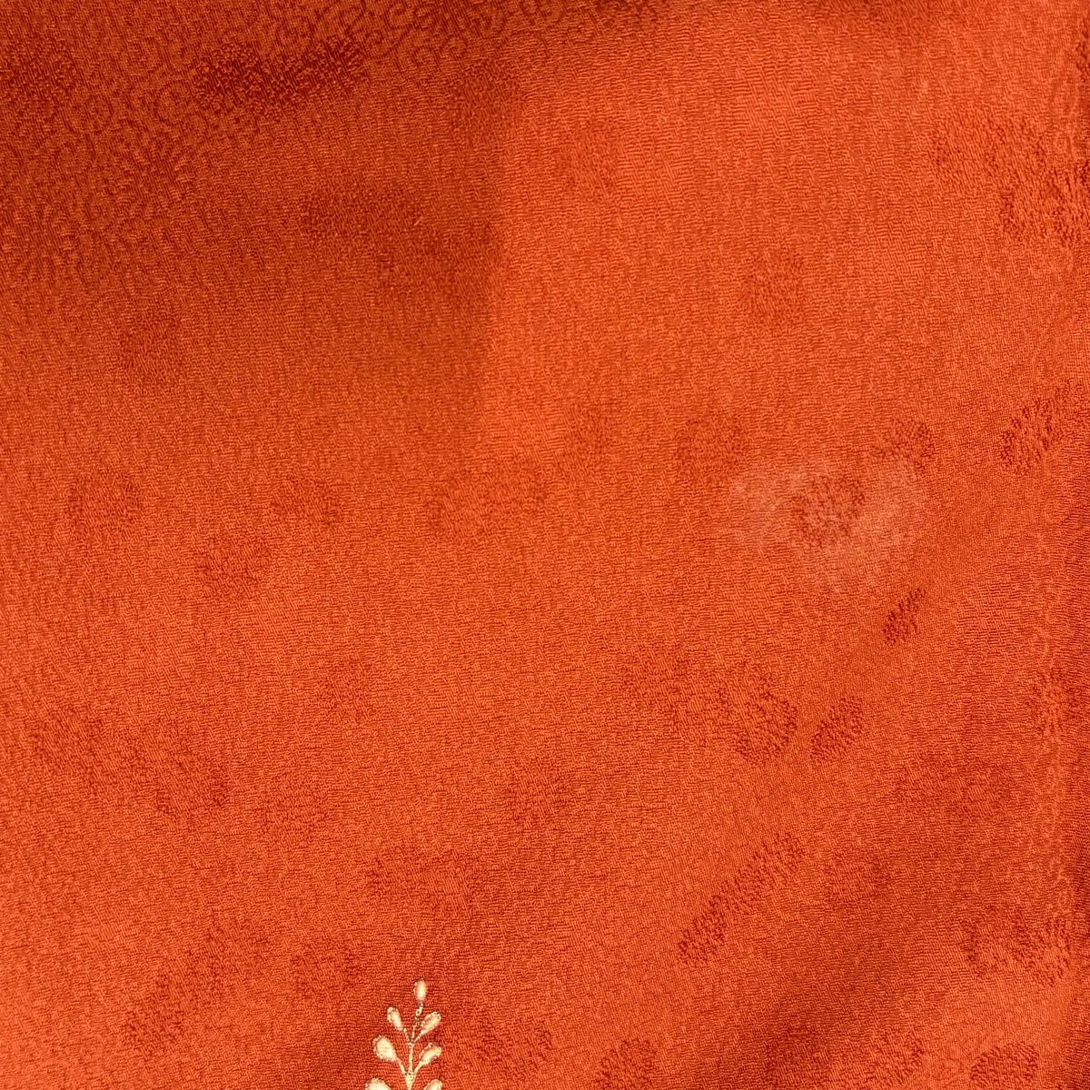 50%OFF 付下げ 身丈155cm 裄丈64cm M 袷 紬地 萩 菊 刺繍 薄オレンジ 正絹 秀品 K50