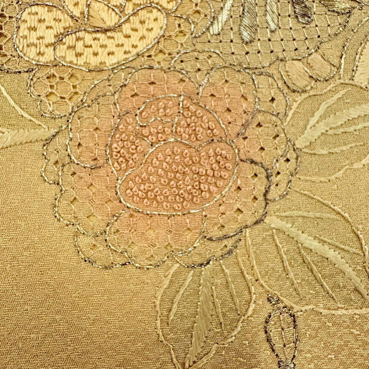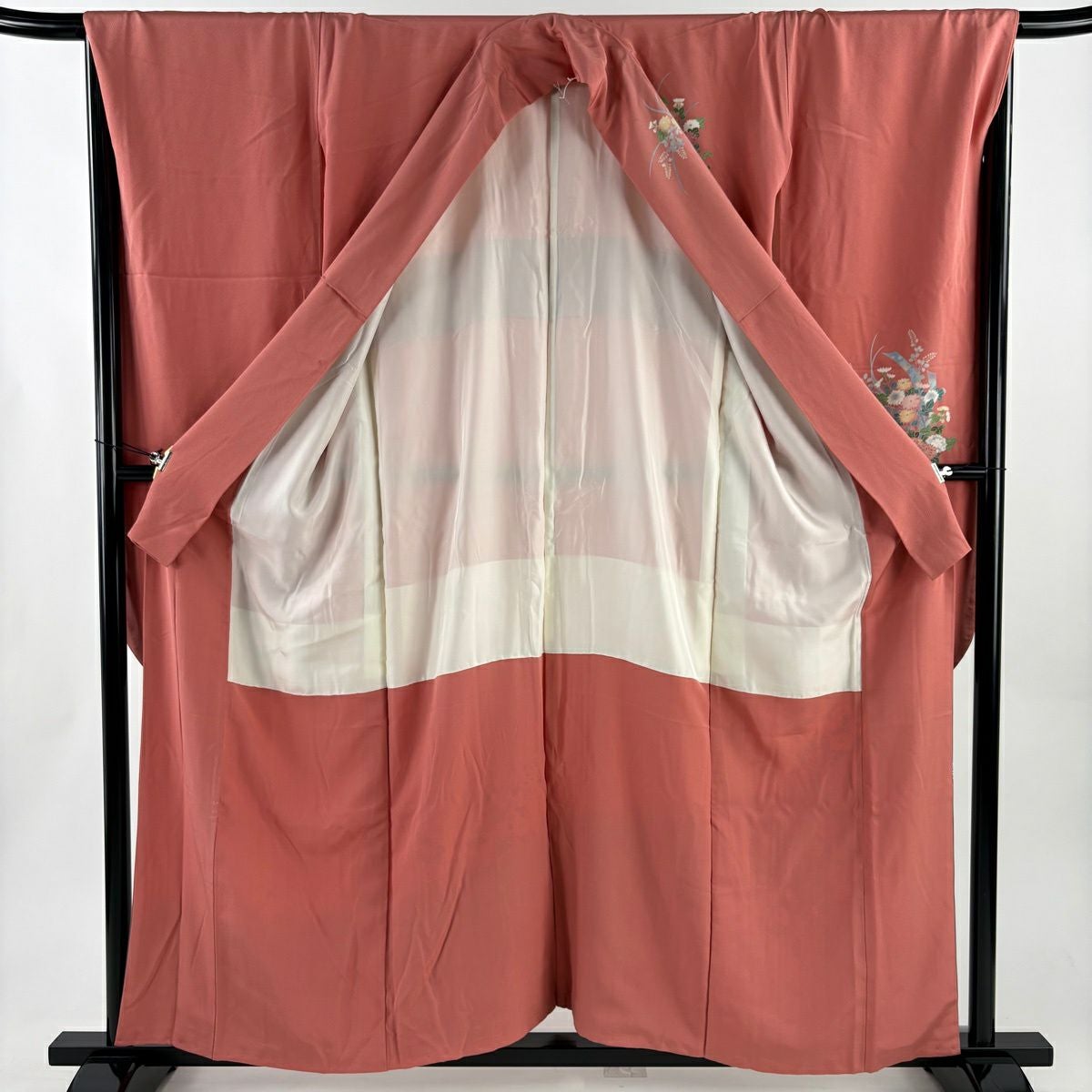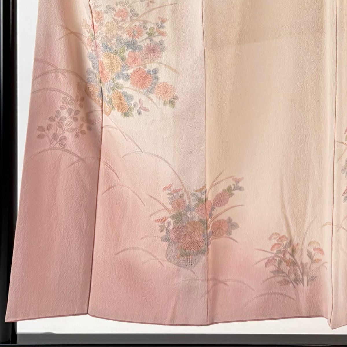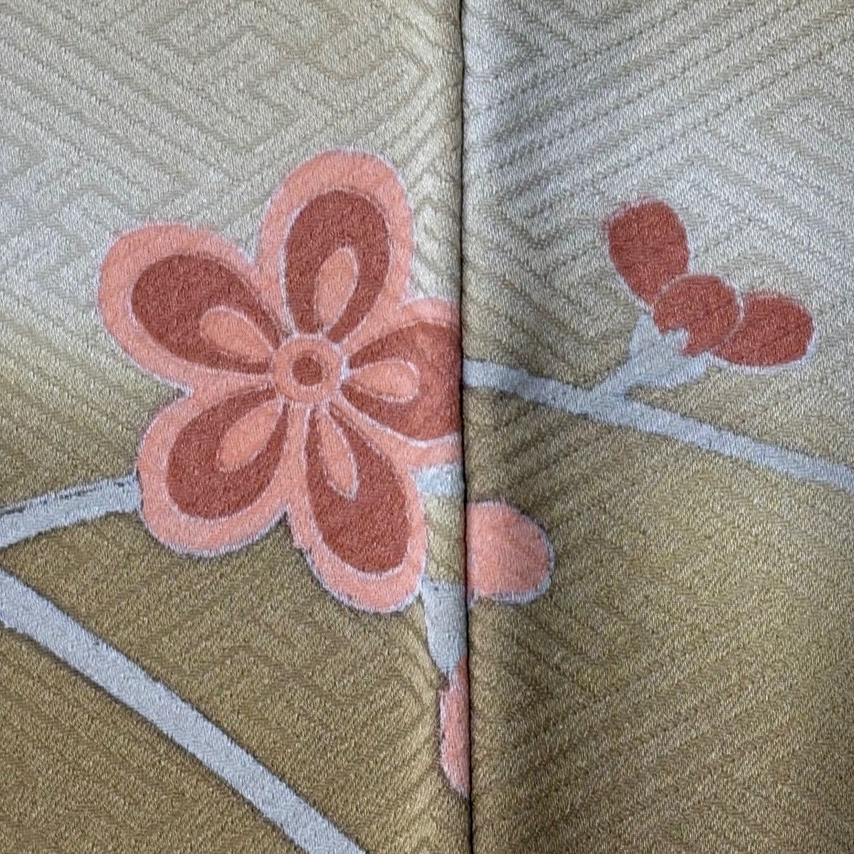 50%OFF 付下げ 身丈155cm 裄丈64cm M 袷 紬地 萩 菊 刺繍 薄オレンジ 正絹 秀品 K50