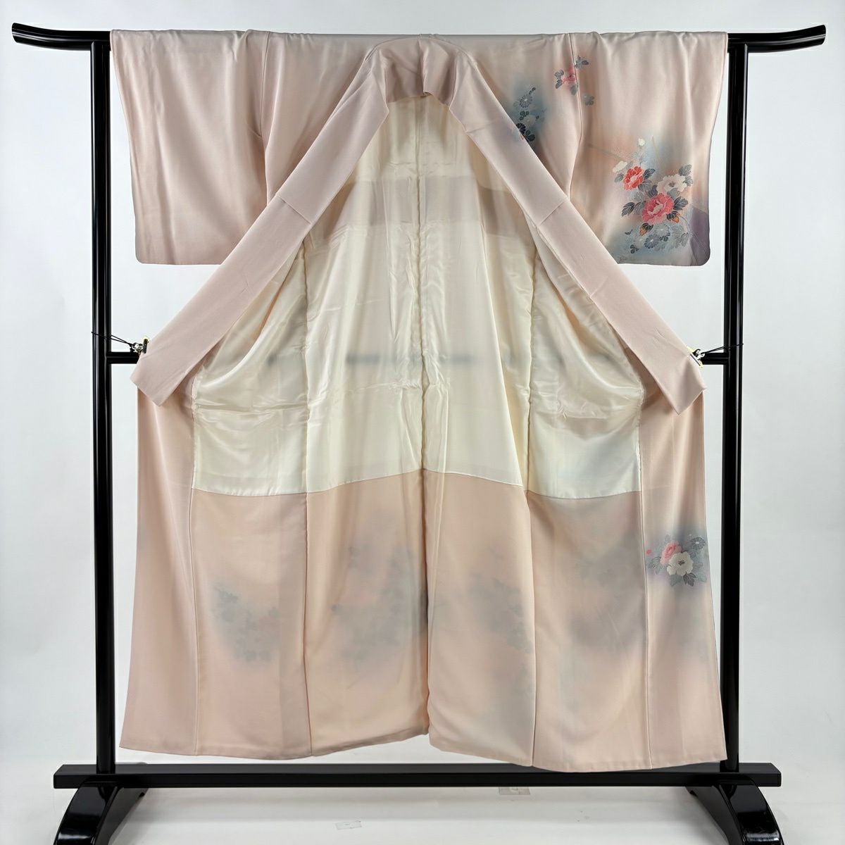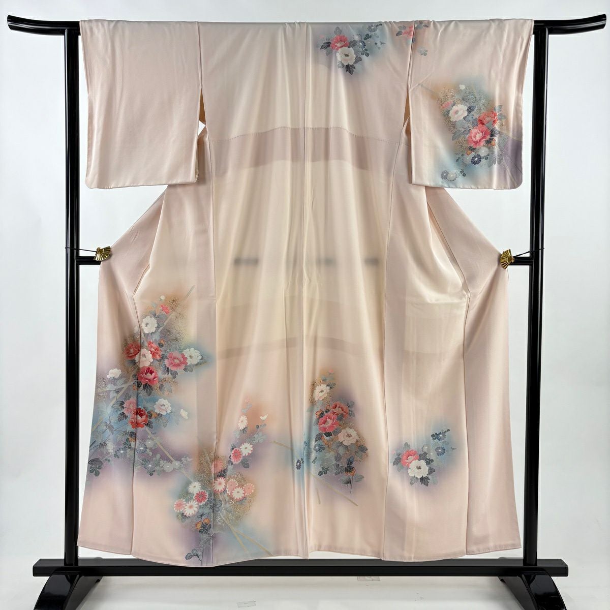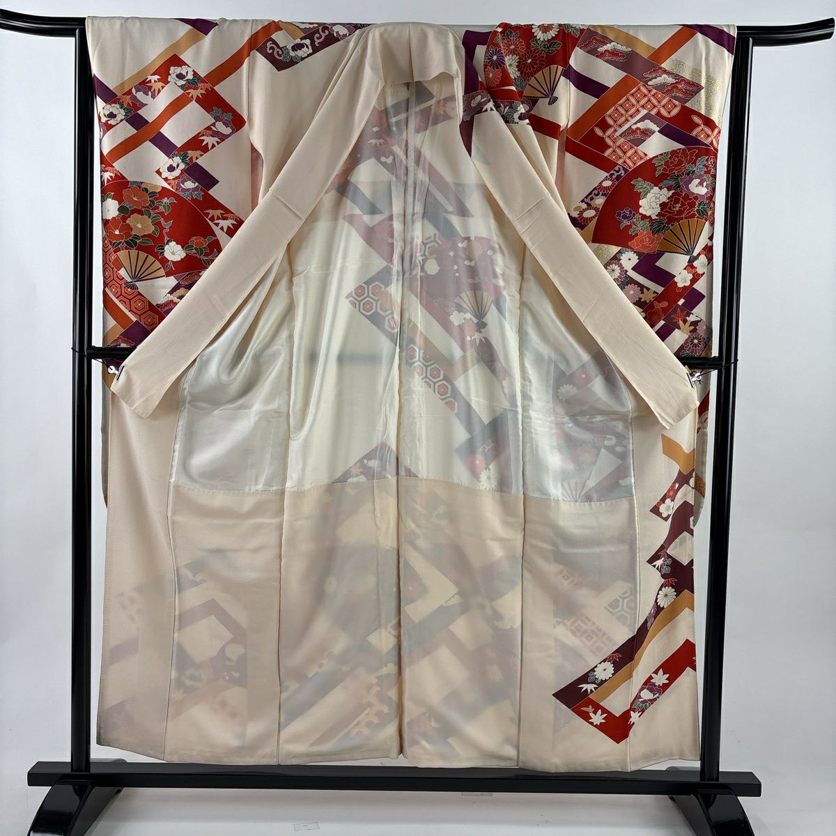 50%OFF 振袖 身丈159cm 裄丈63cm S 袷 扇 花鳥 金彩 ぼかし 薄ピンク 正絹 秀品 K50