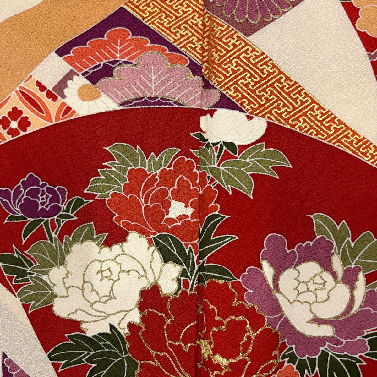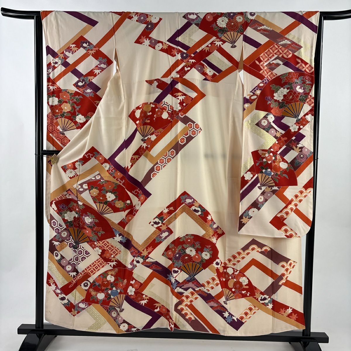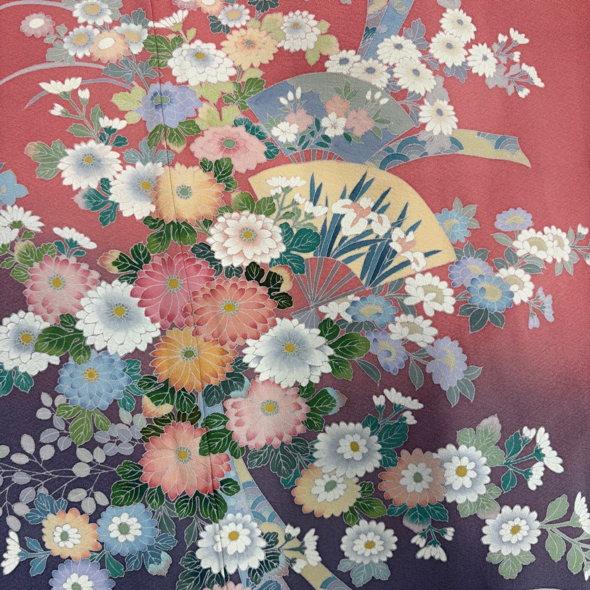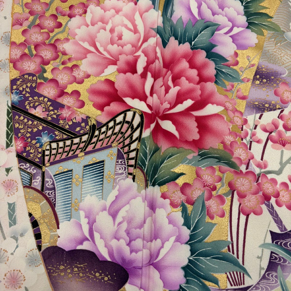 50%OFF 振袖 身丈159cm 裄丈63cm S 袷 扇 花鳥 金彩 ぼかし 薄ピンク 正絹 秀品 K50