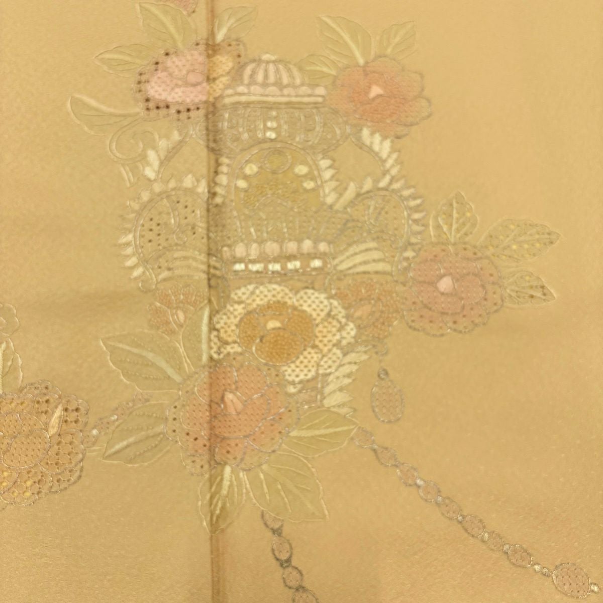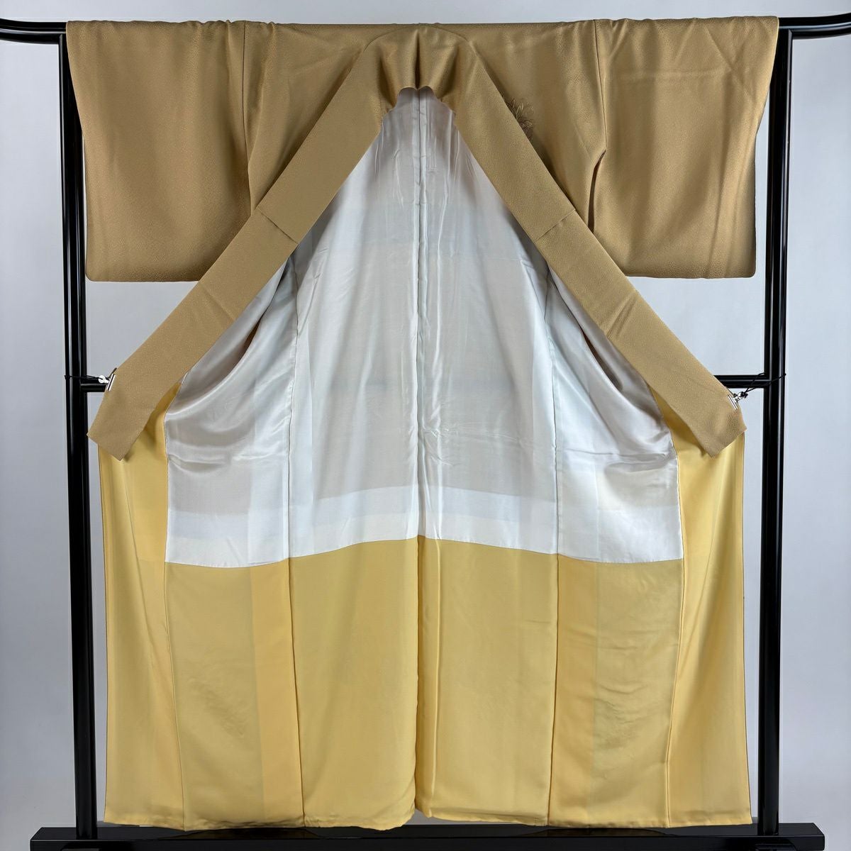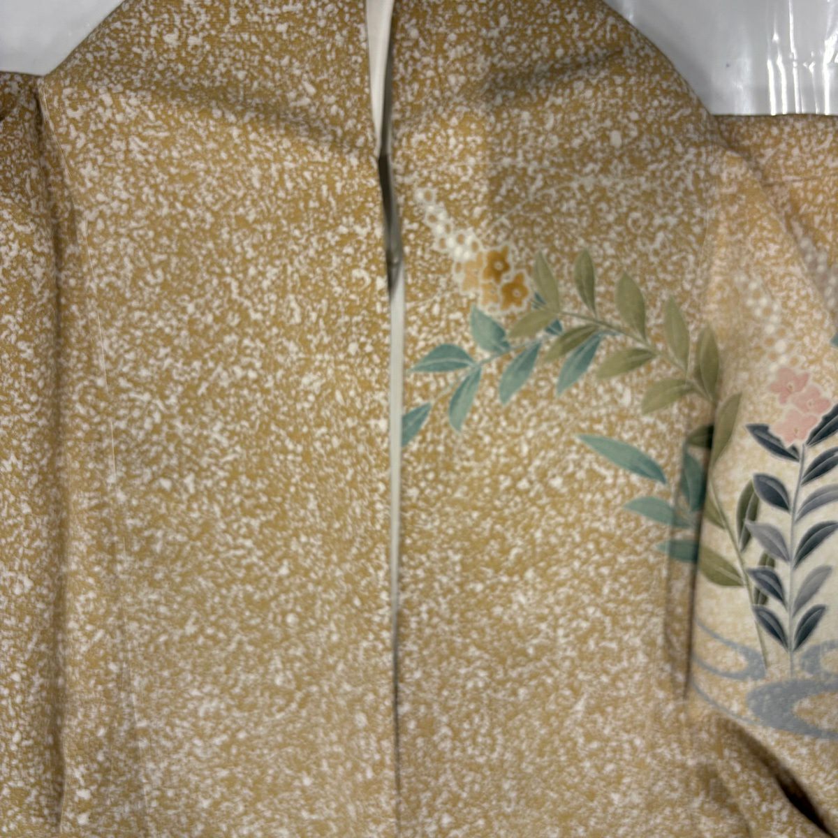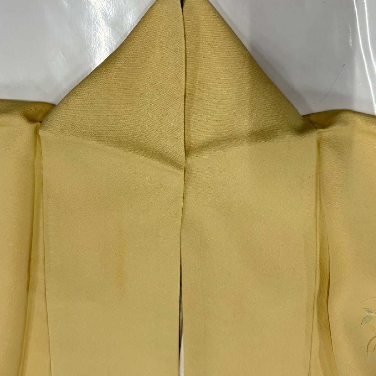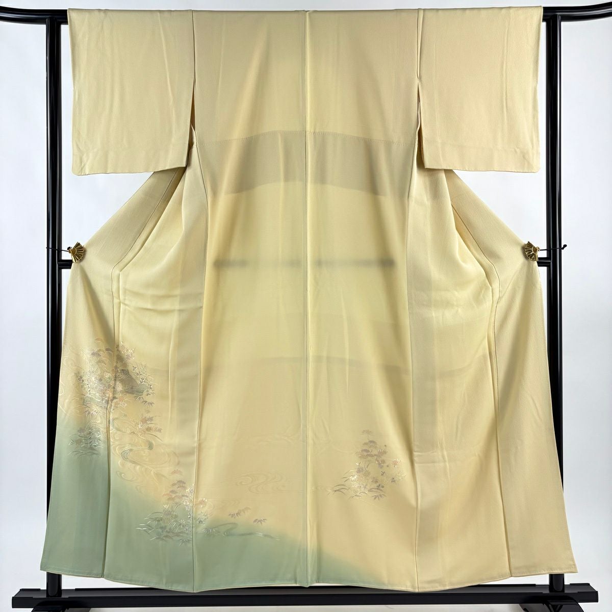 50%OFF 付下げ 身丈155.5cm 裄丈62cm S 袷 家屋 松竹梅 刺繍 箔 薄黄 正絹 秀品 K50