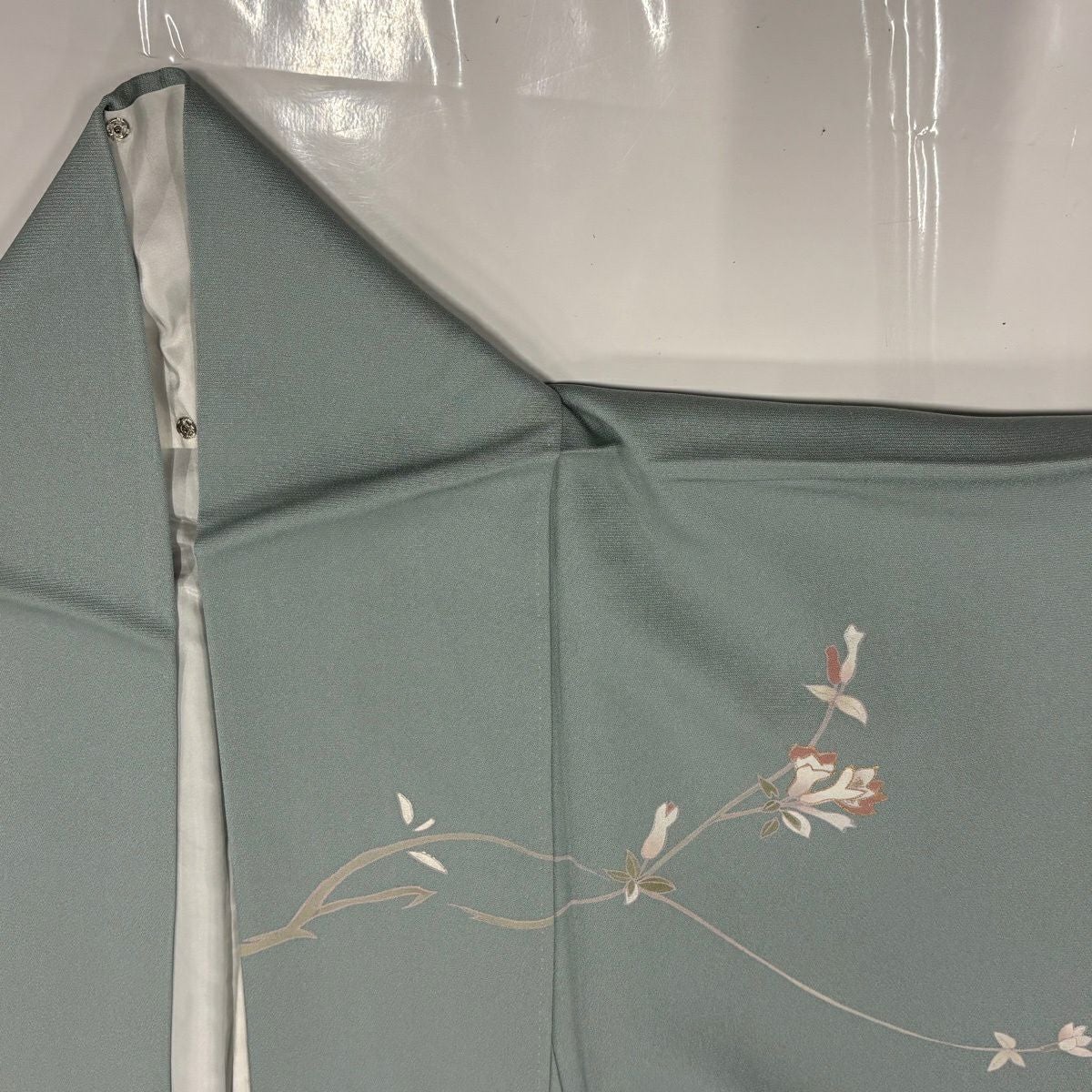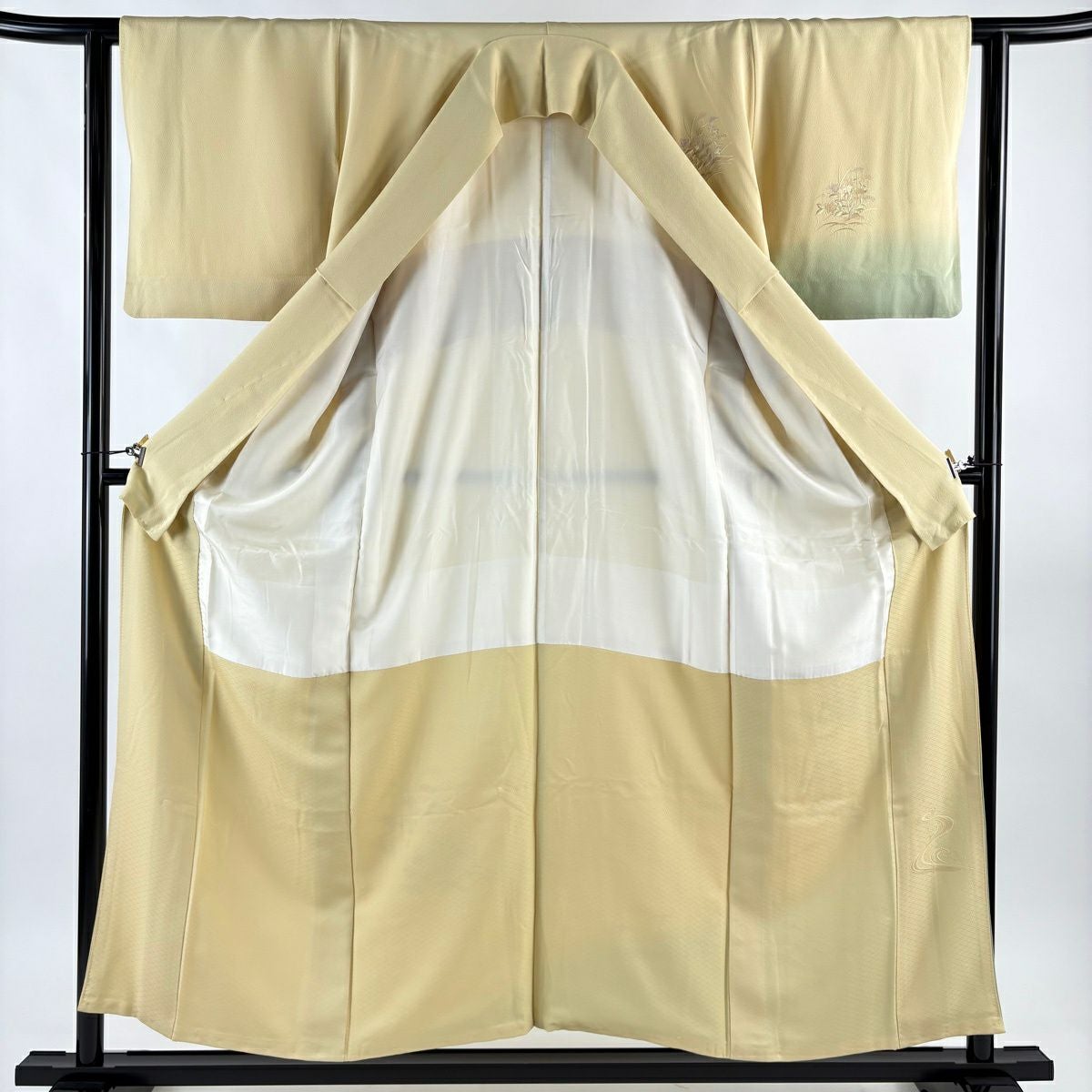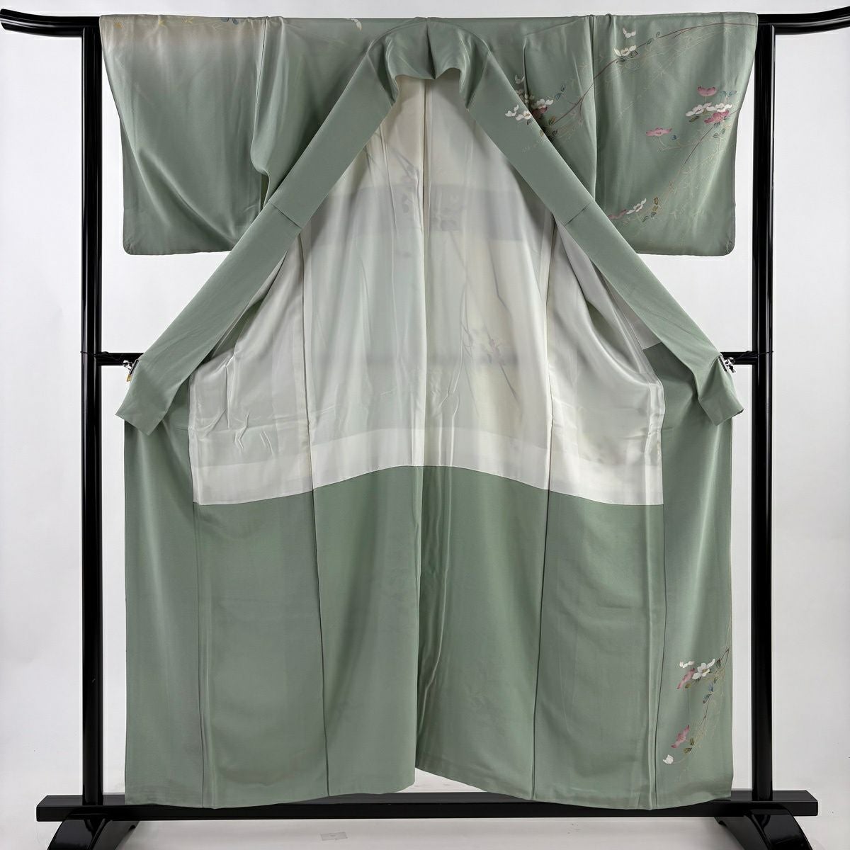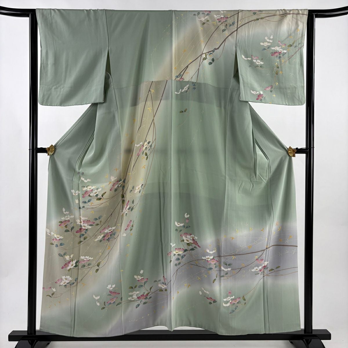 30%OFF 訪問着 身丈155.5cm 裄丈63.5cm S 袷 落款あり 枝花 ぼかし 薄緑 正絹 秀品 K30
