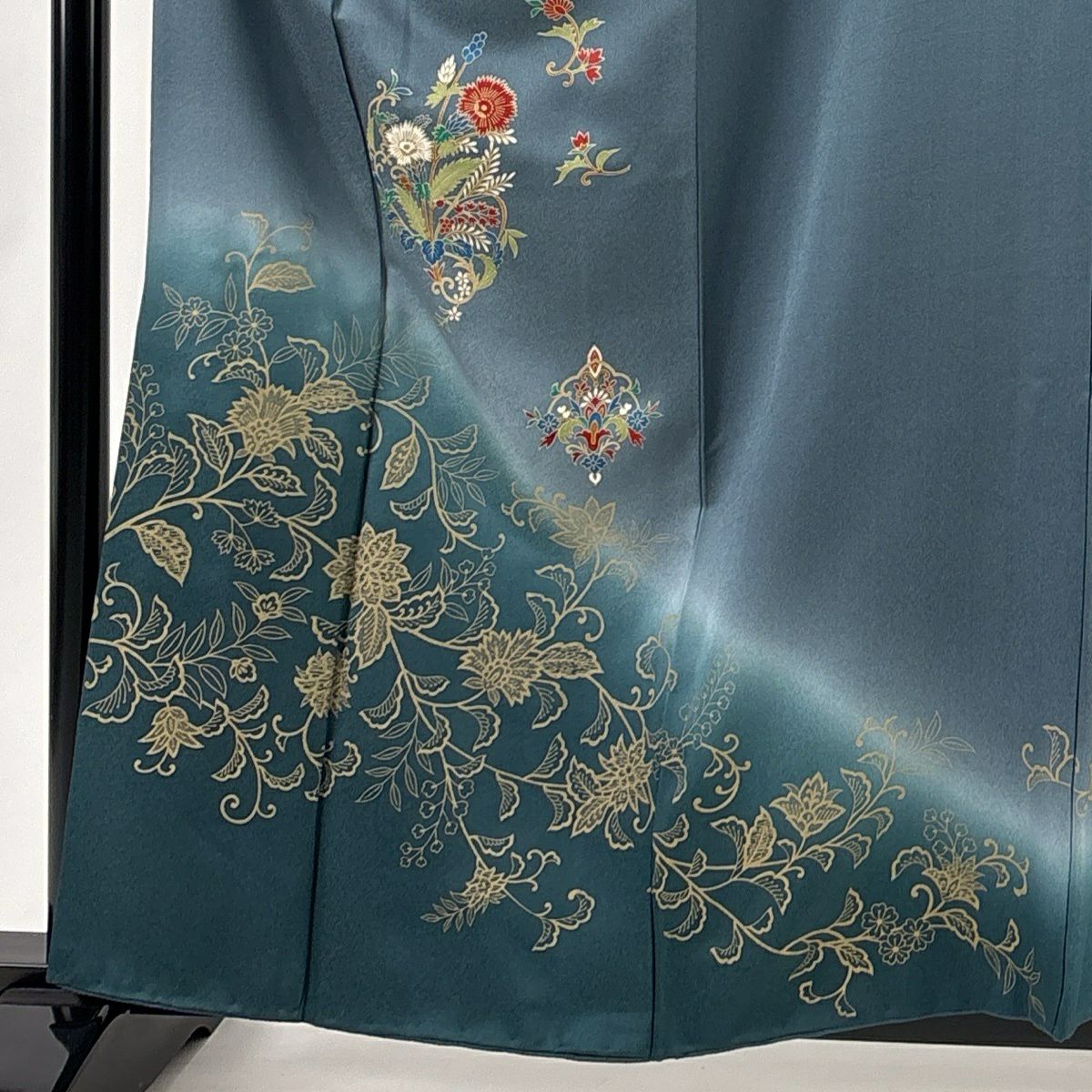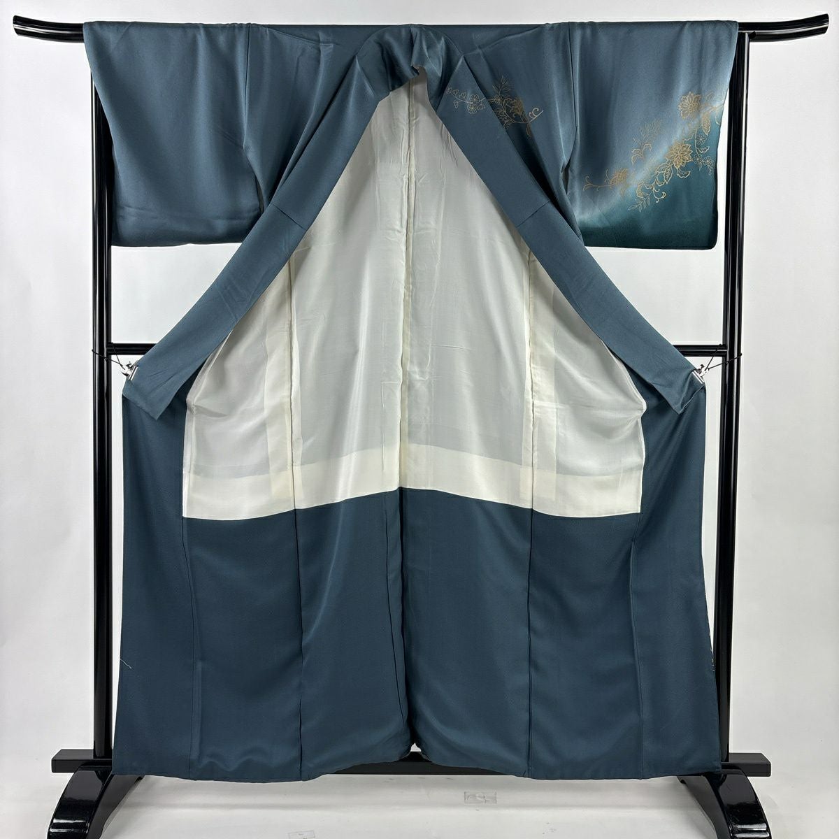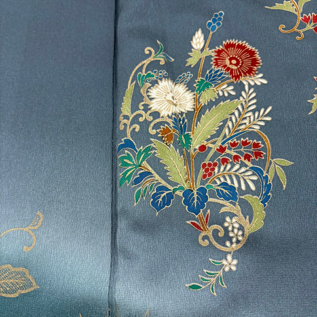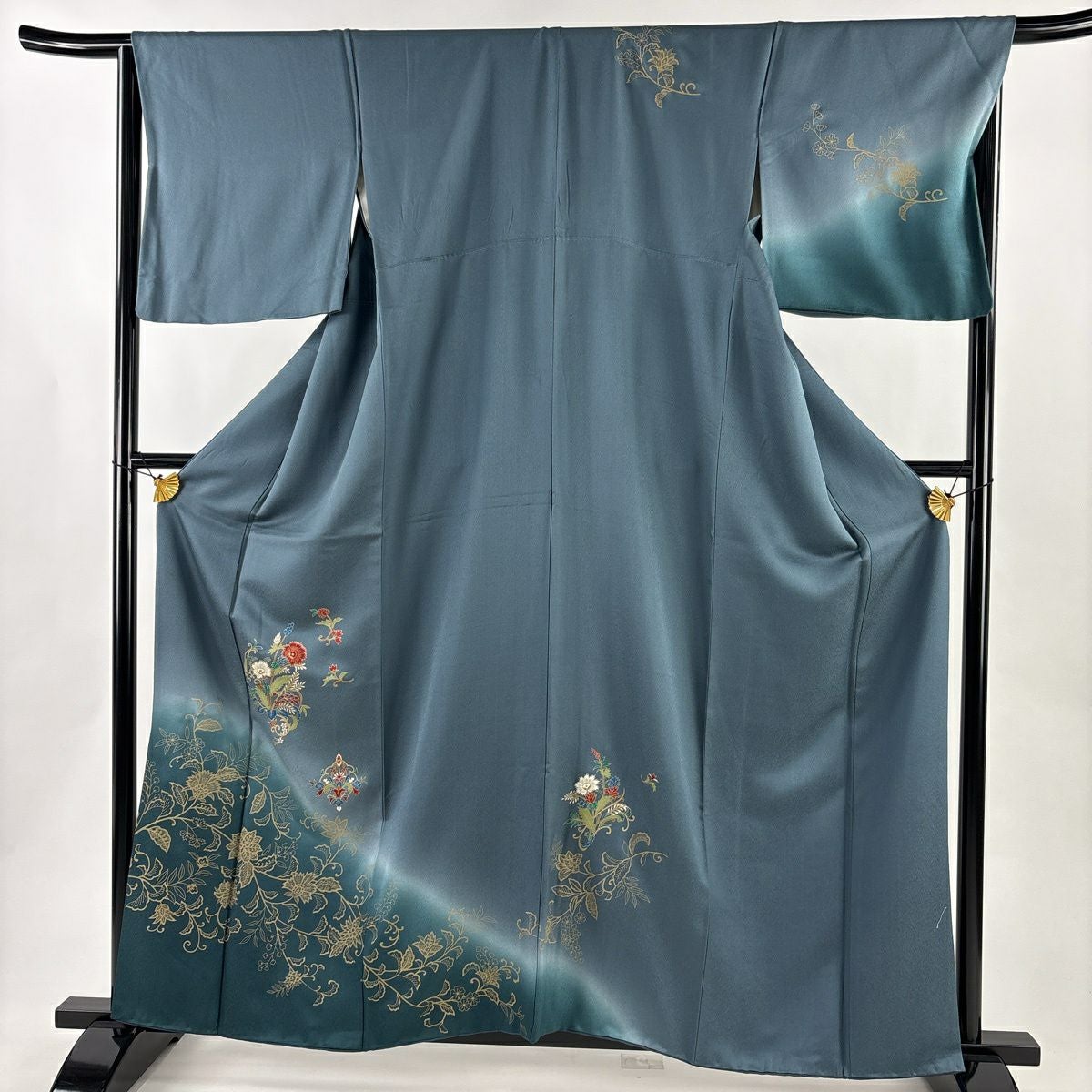 50%OFF 訪問着 身丈161cm 裄丈66.5cm M 袷 草花 花唐草 ぼかし 青灰色 正絹 秀品 K50