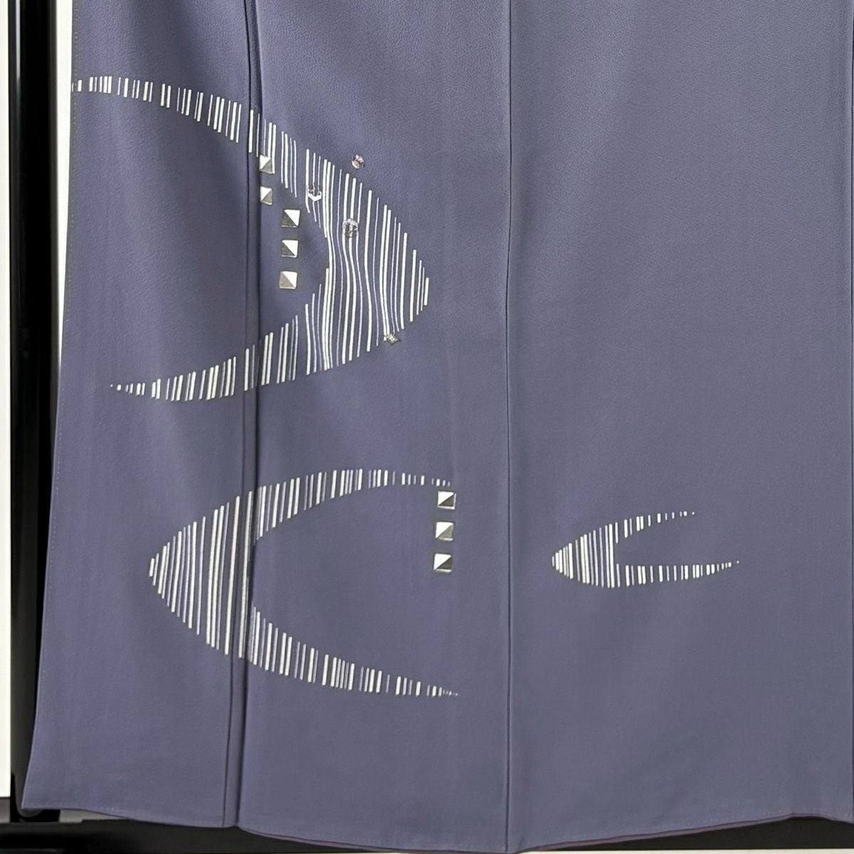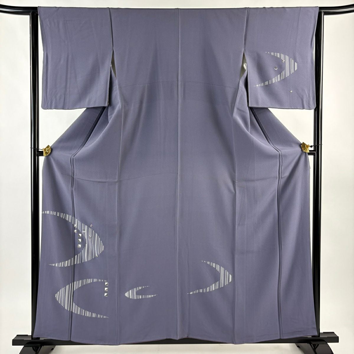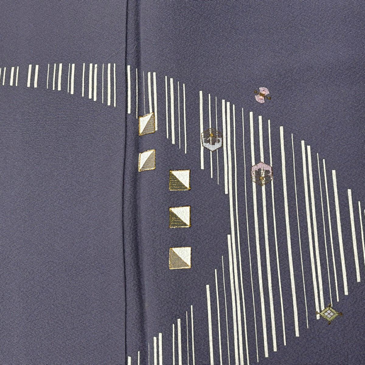50%OFF 付下げ 身丈157.5cm 裄丈65cm M 袷 幾何学 四角 刺繍 ラメ 灰紫 正絹 秀品 K50