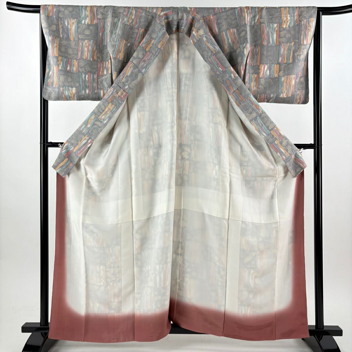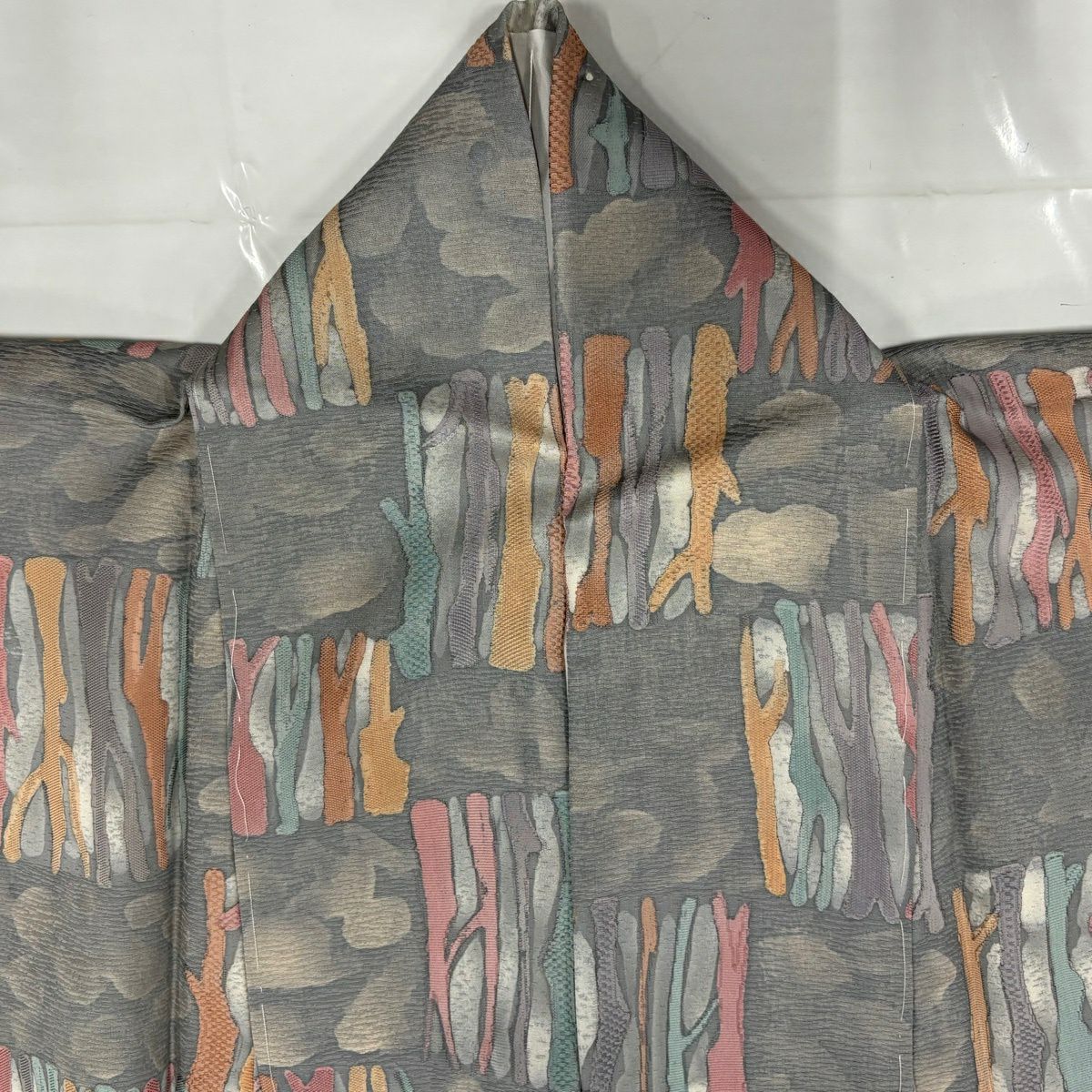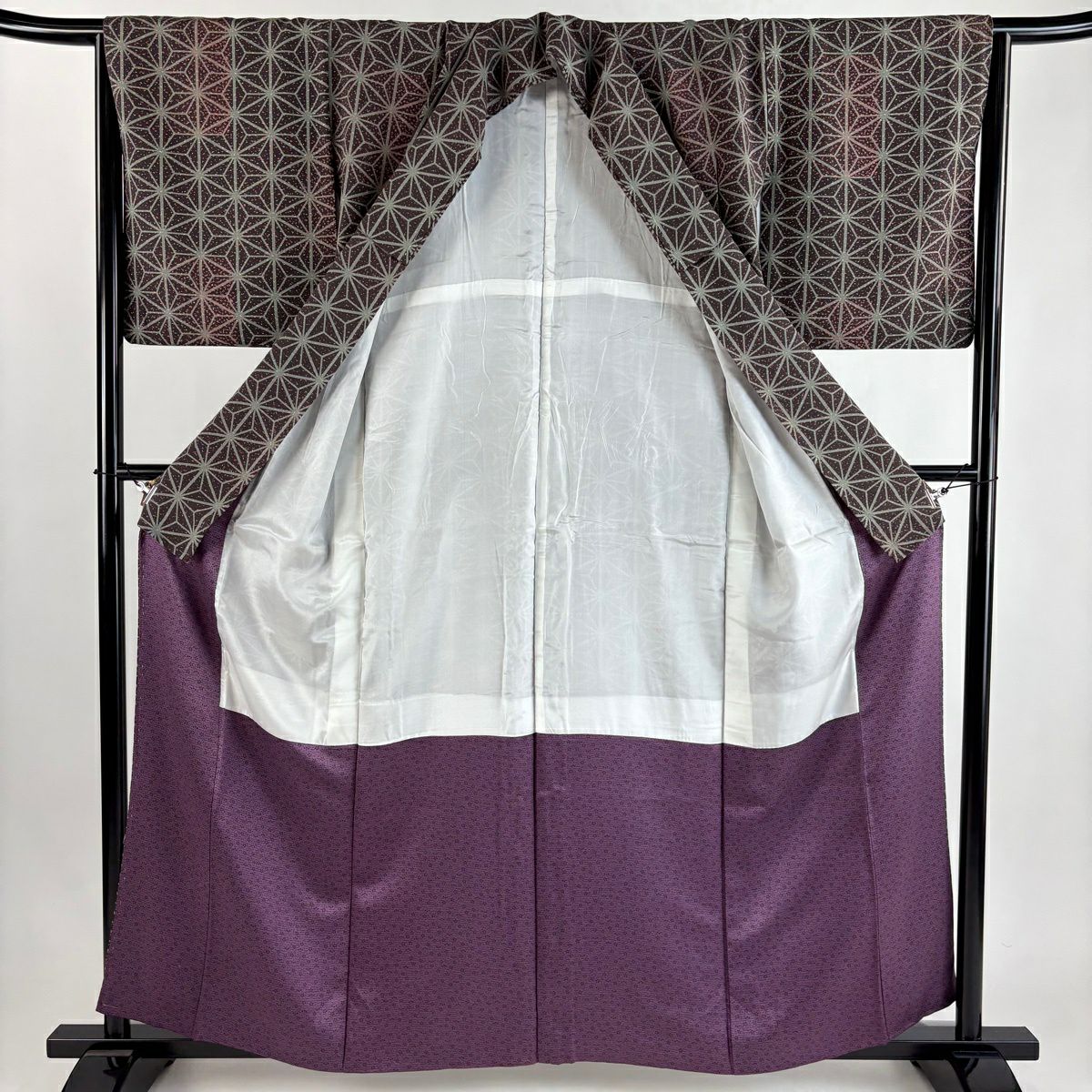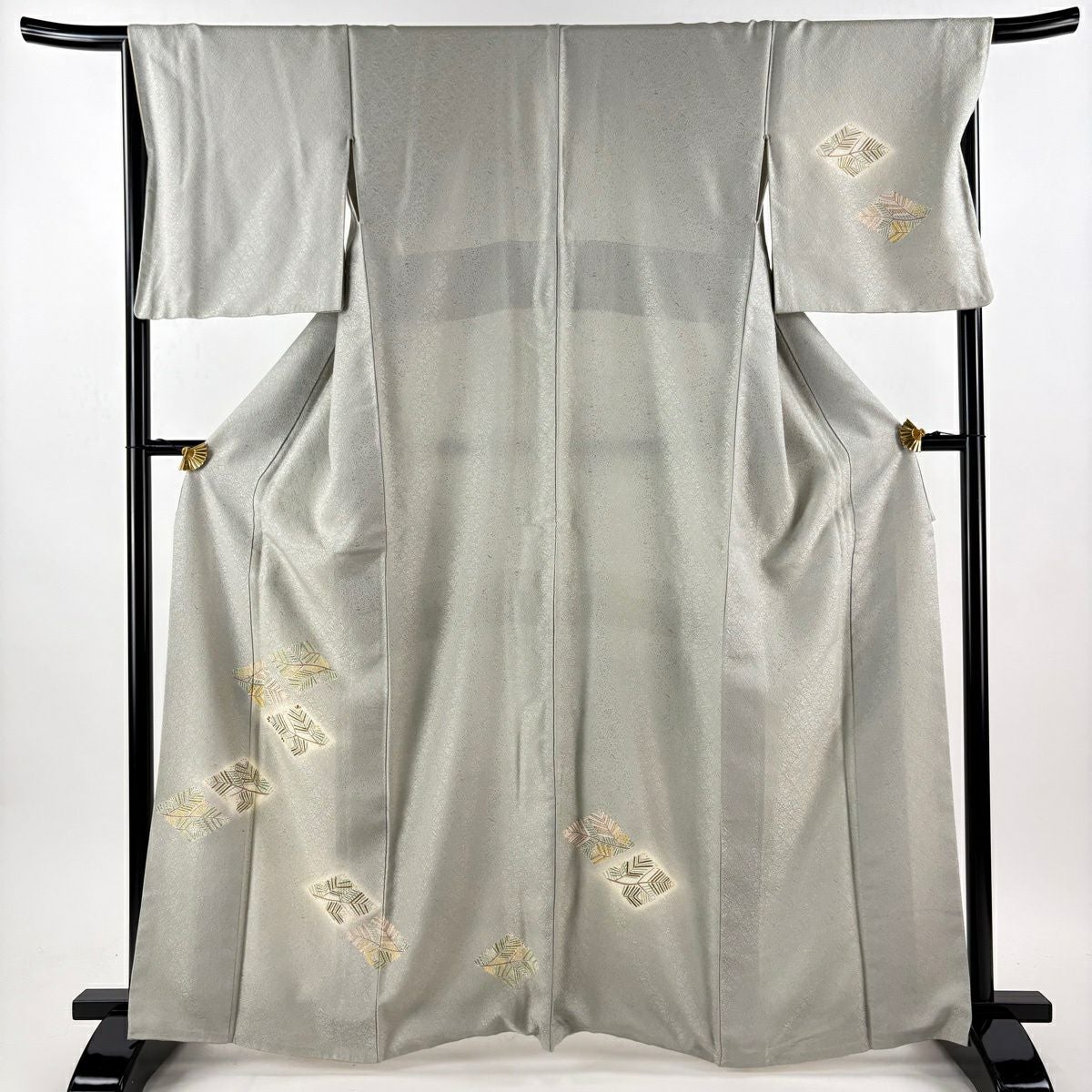 50%OFF 付下げ 身丈157.5cm 裄丈65cm M 袷 幾何学 四角 刺繍 ラメ 灰紫 正絹 秀品 K50