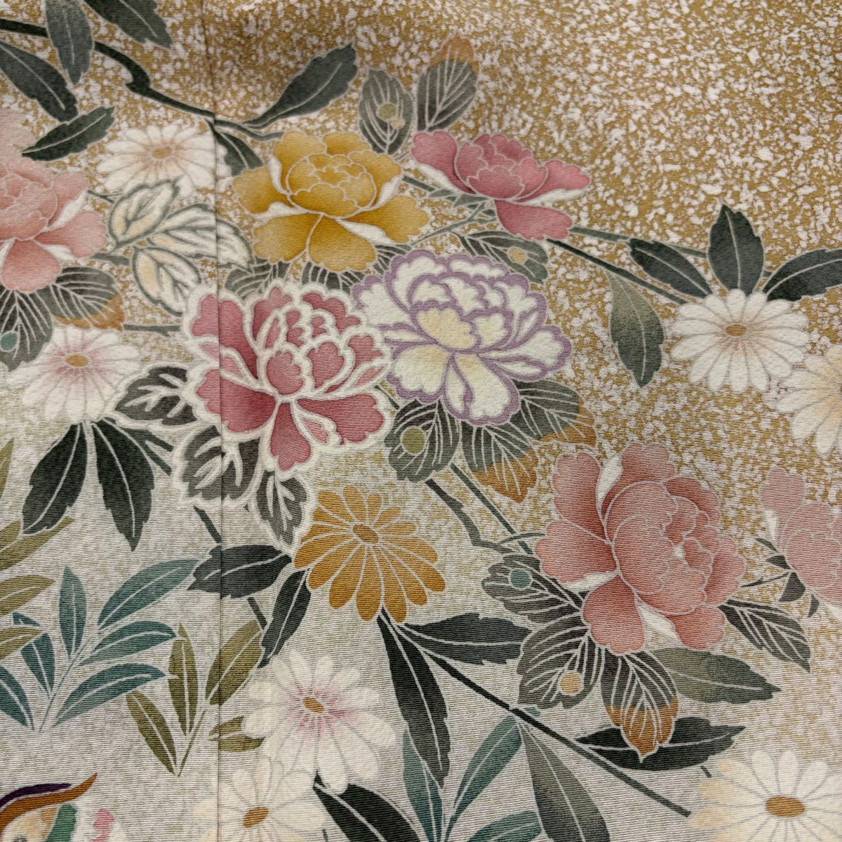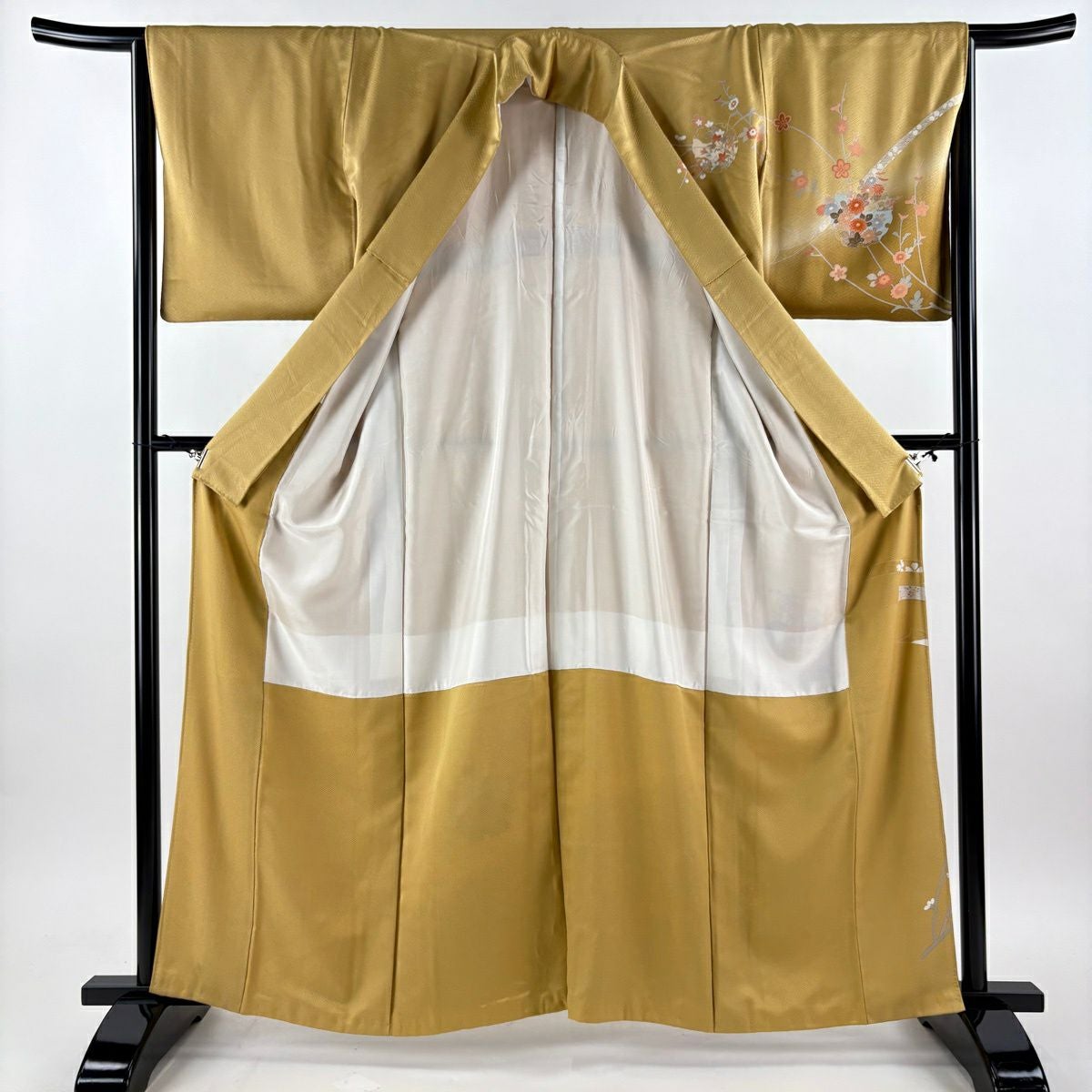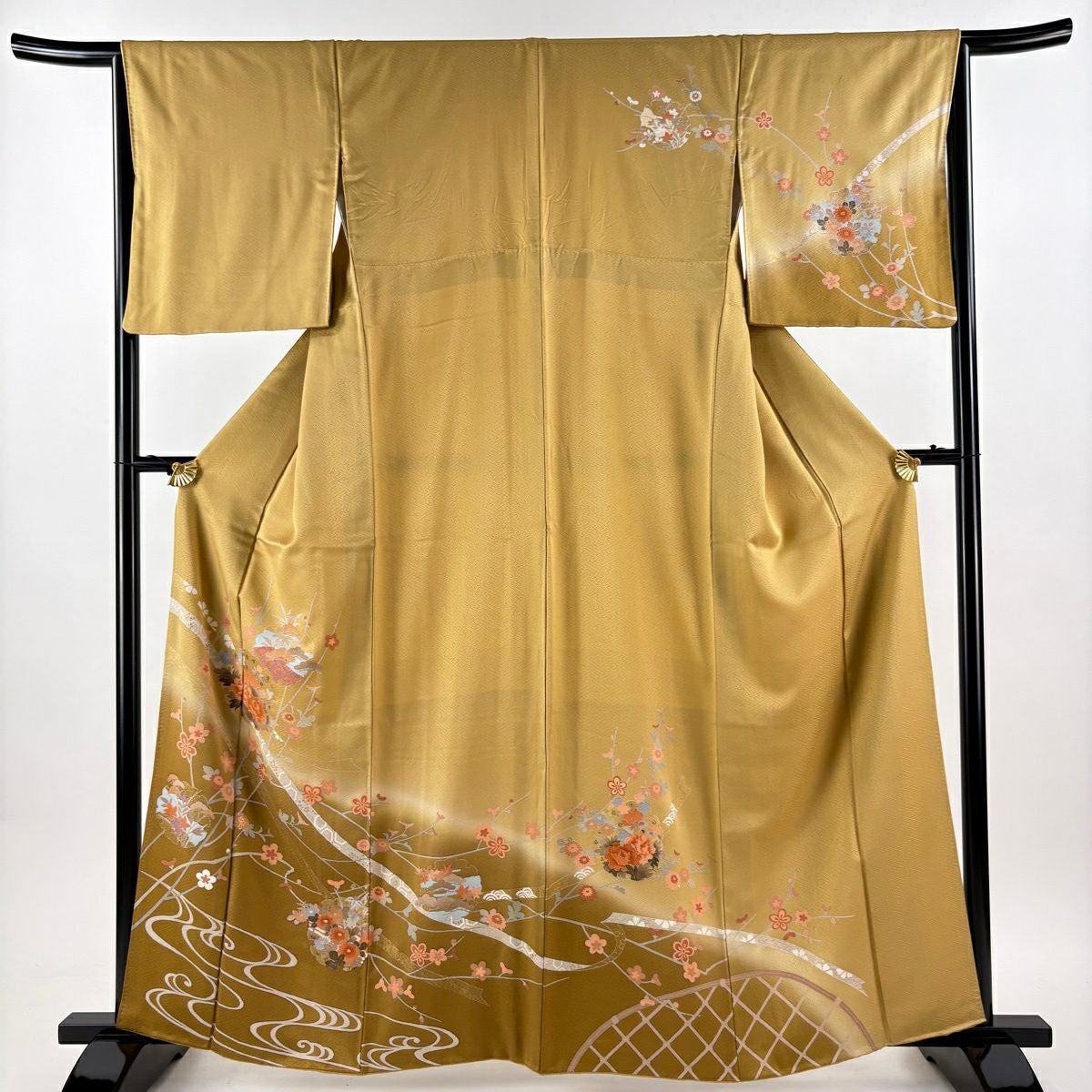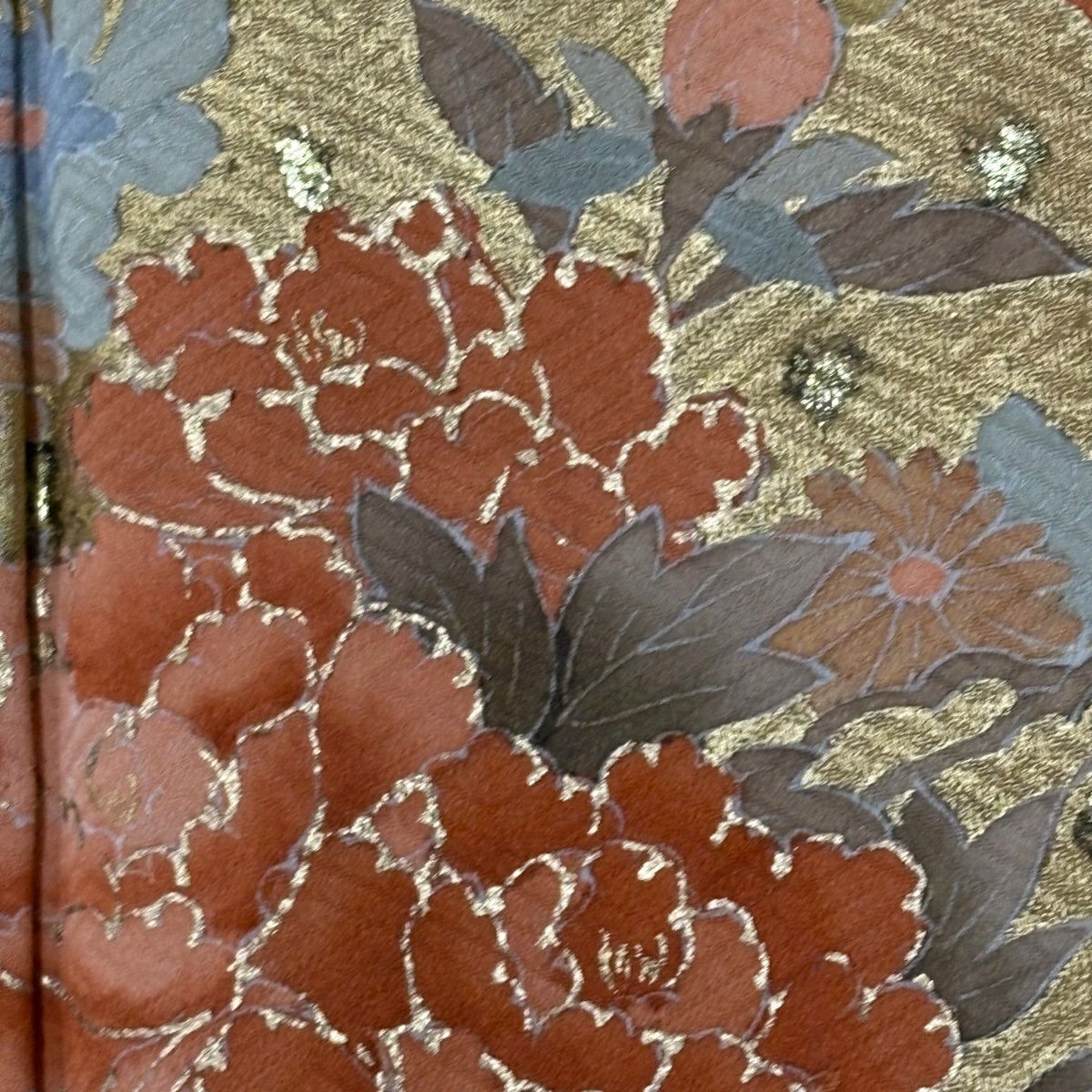 30%OFF 訪問着 身丈162cm 裄丈65cm M 袷 草花 雪輪 金彩 ぼかし 黄土色 正絹 秀品 K30