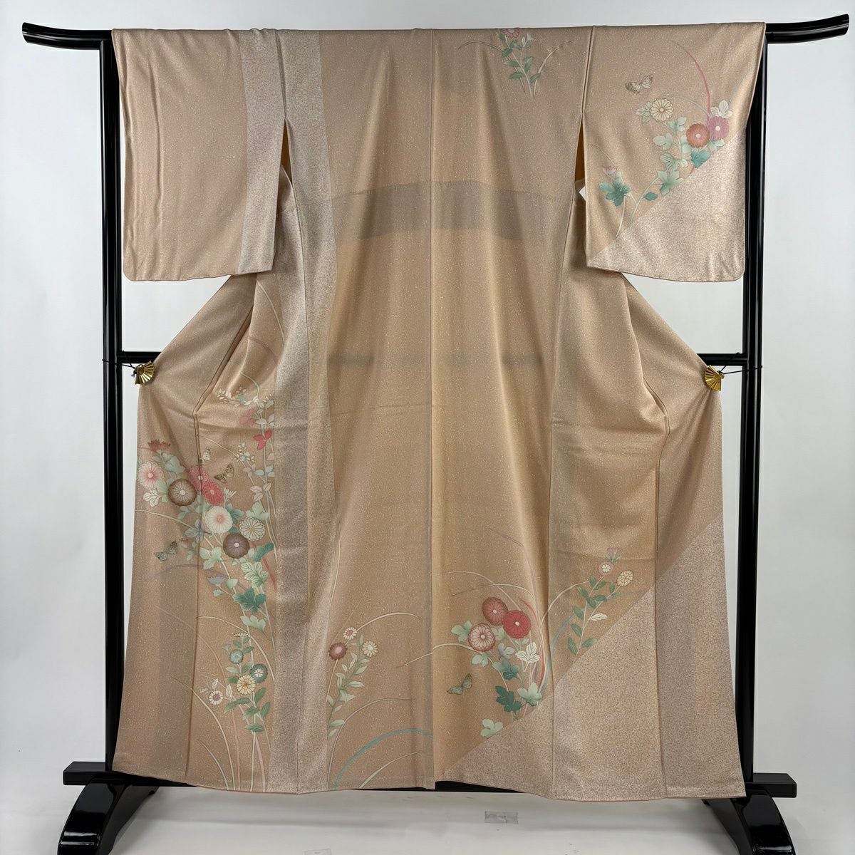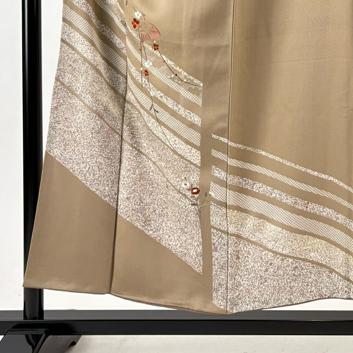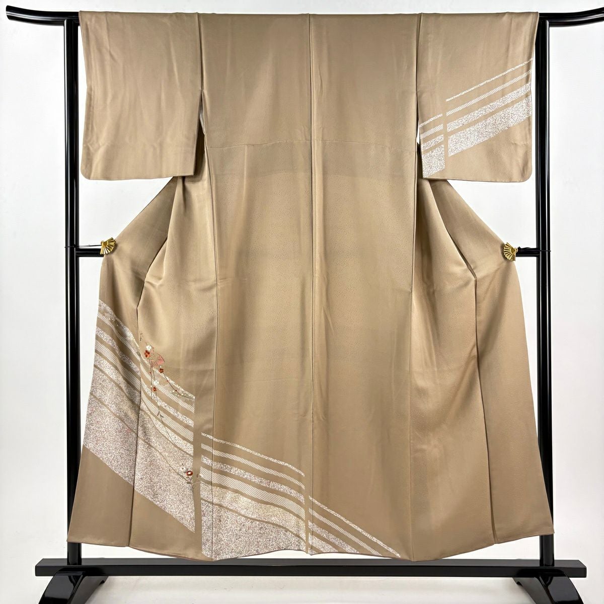 30%OFF 付下げ 身丈153.5cm 裄丈63cm S 袷 扇 草花 刺繍 銀彩 薄茶色 正絹 秀品 K30