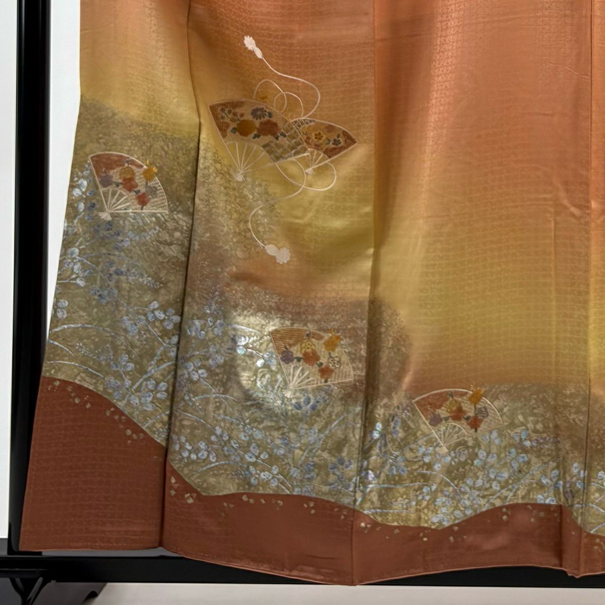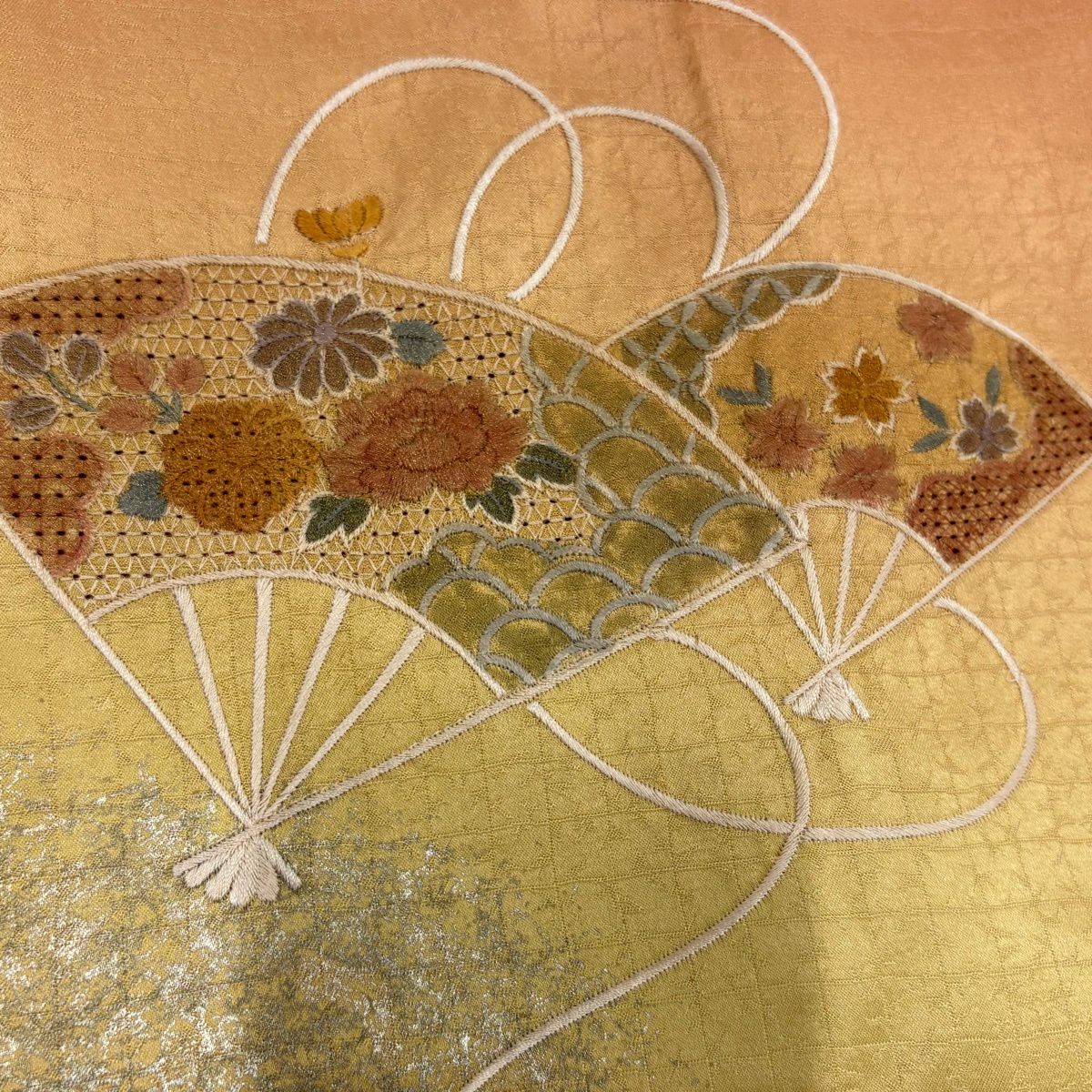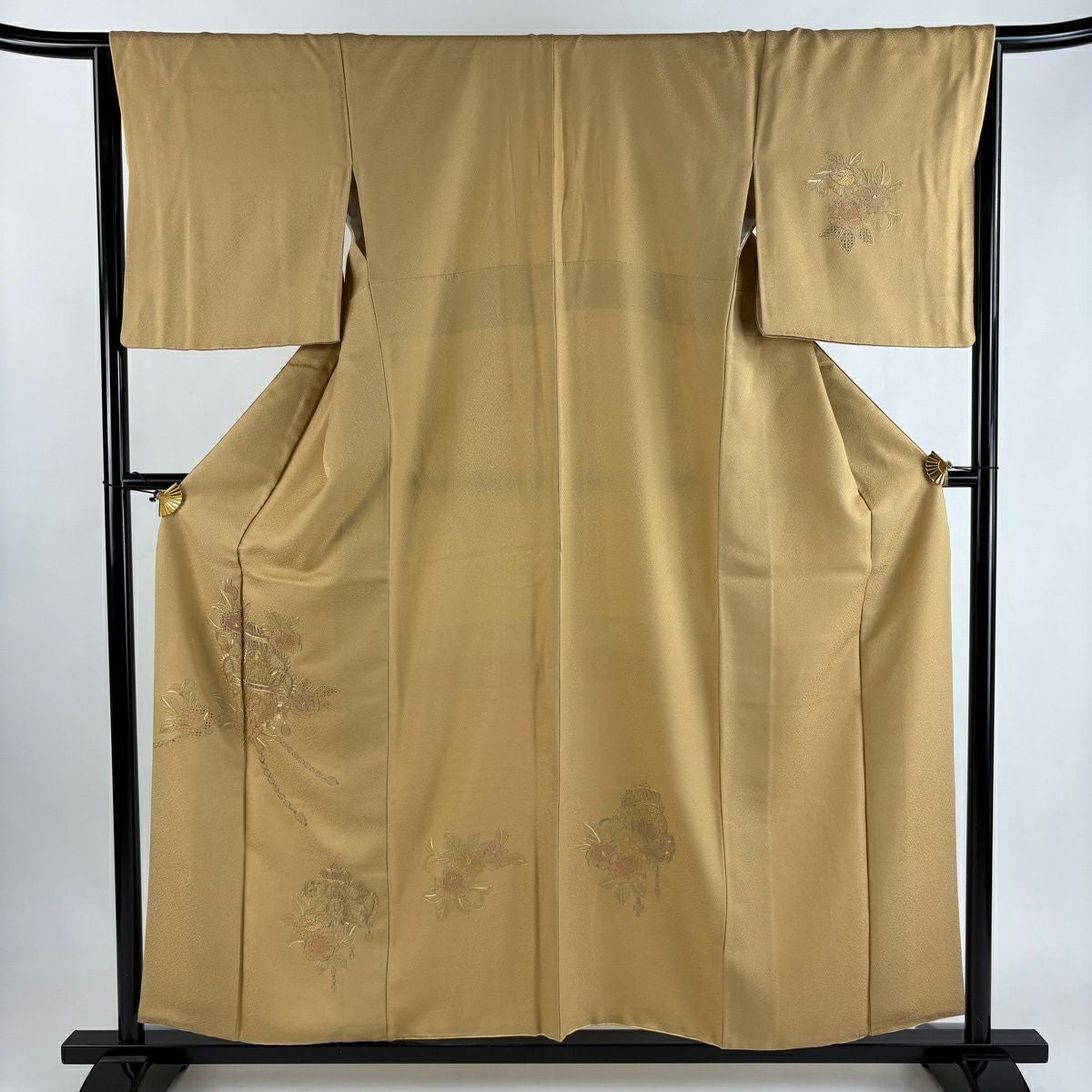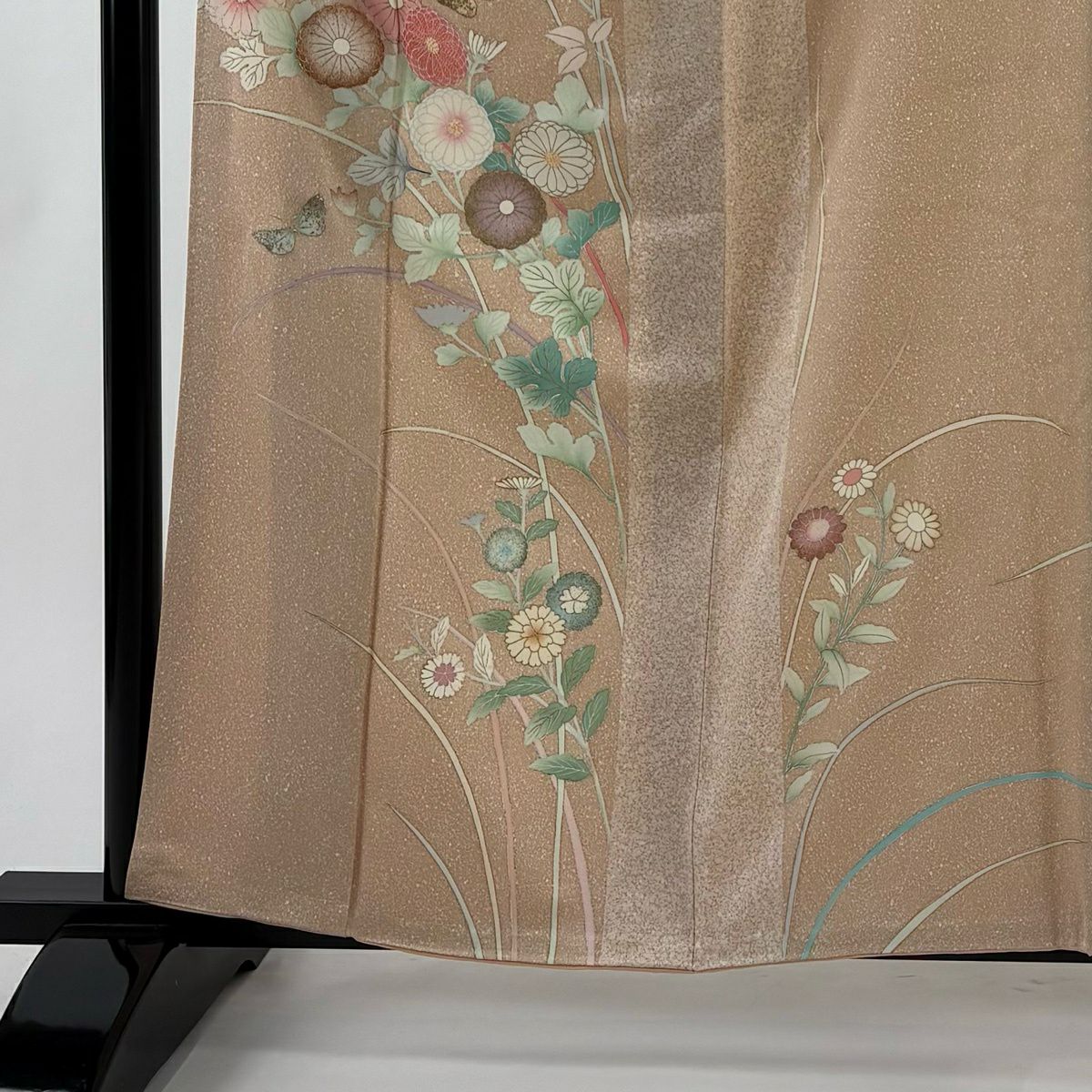 30%OFF 付下げ 身丈153.5cm 裄丈63cm S 袷 扇 草花 刺繍 銀彩 薄茶色 正絹 秀品 K30