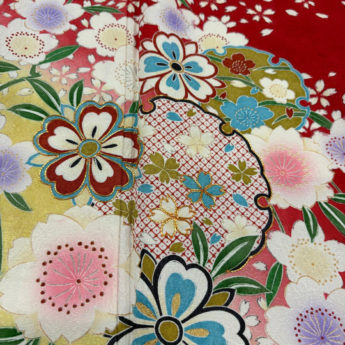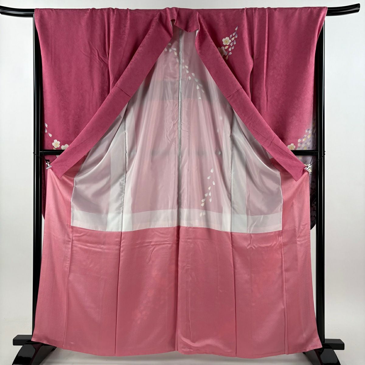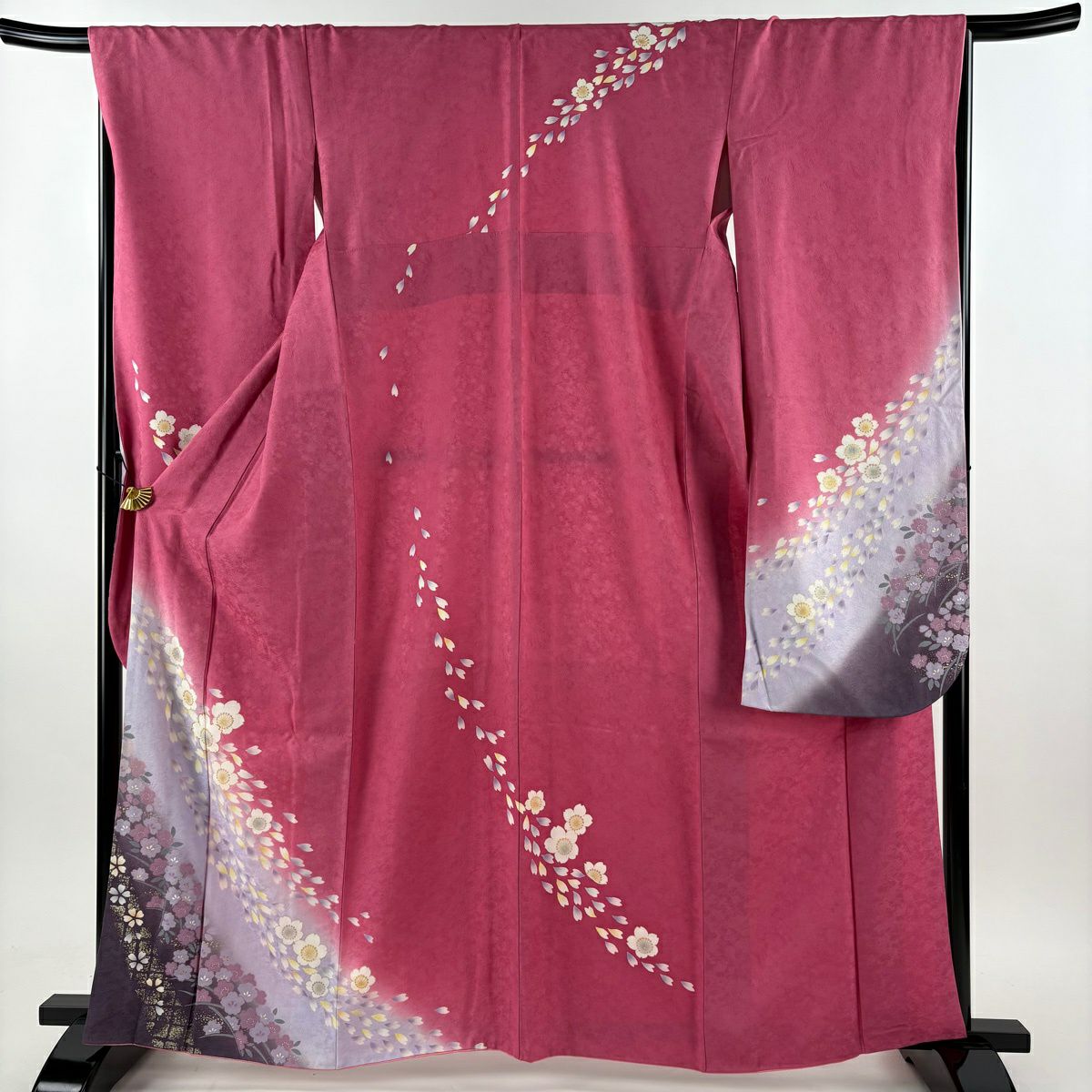 30%OFF 振袖 身丈163.5cm 裄丈68cm L 袷 桜 花びら 金糸 金彩 ピンク 正絹 秀品 K30