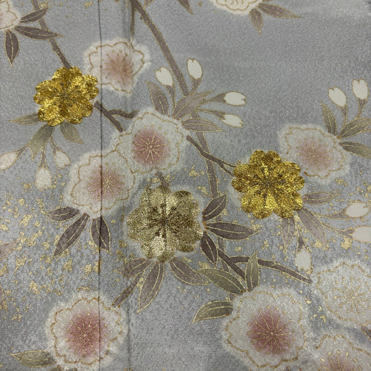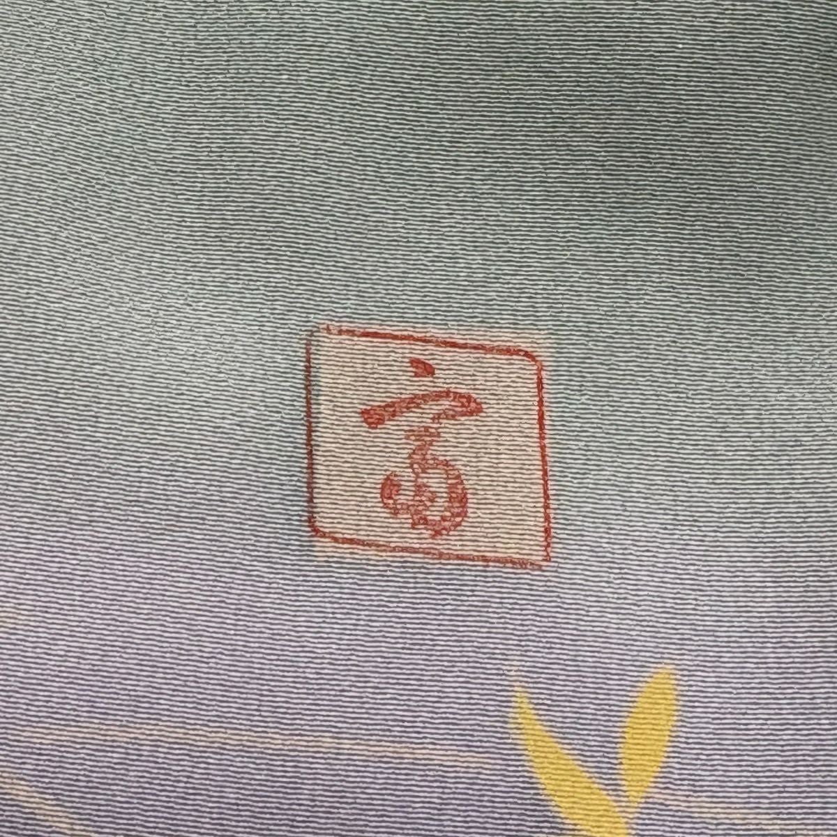 50%OFF 付下げ 身丈158cm 裄丈65.5cm M 袷 草花 流水 絞り 金彩 灰紫 正絹 秀品 K50