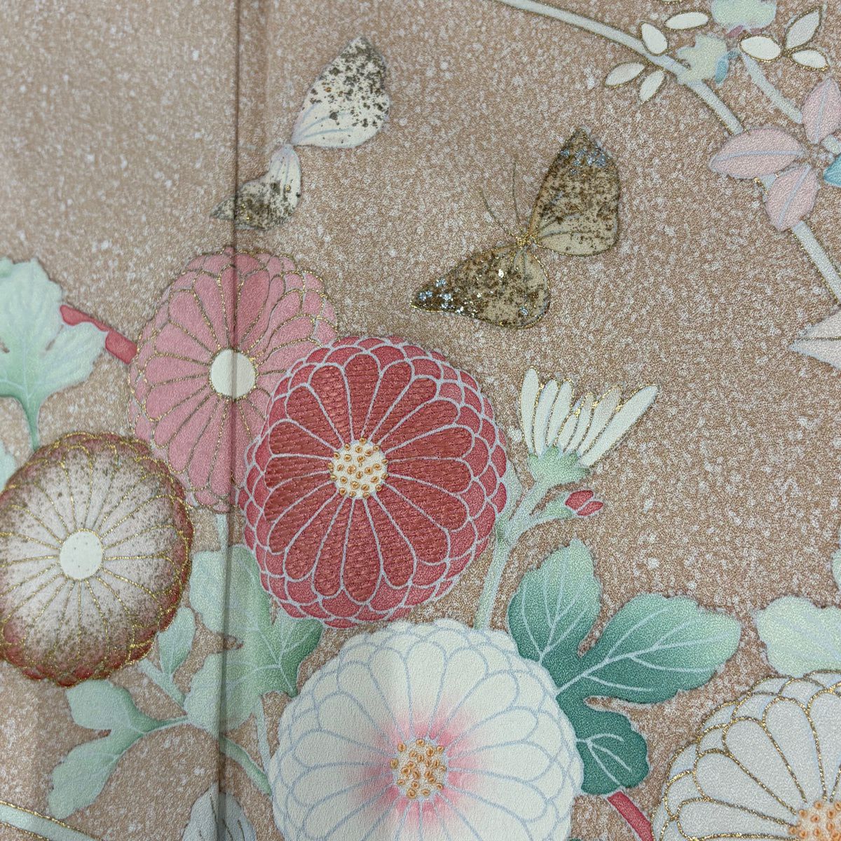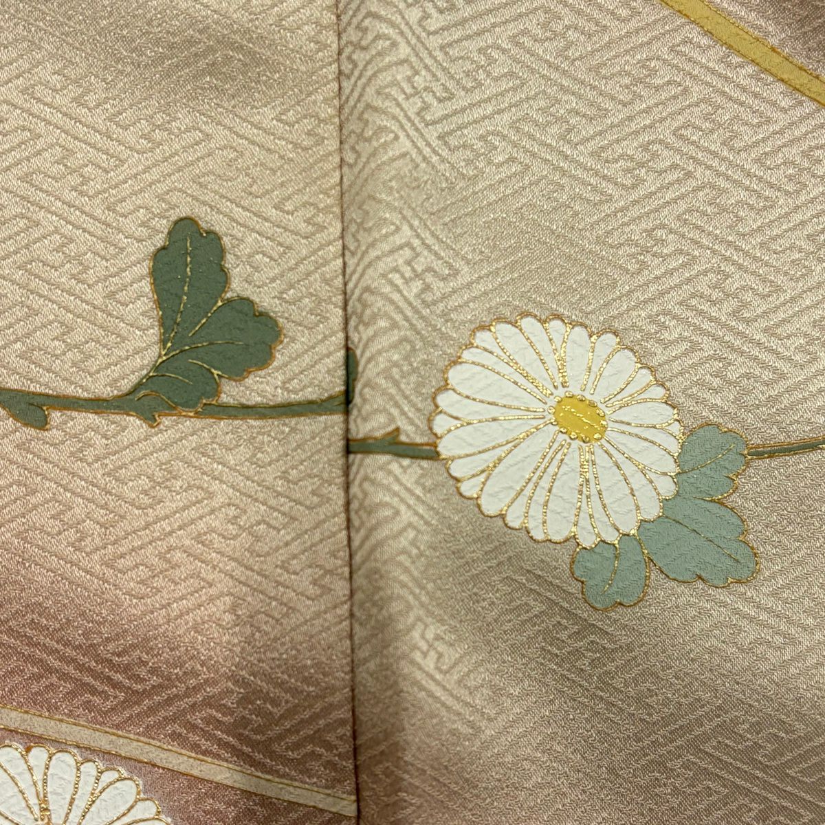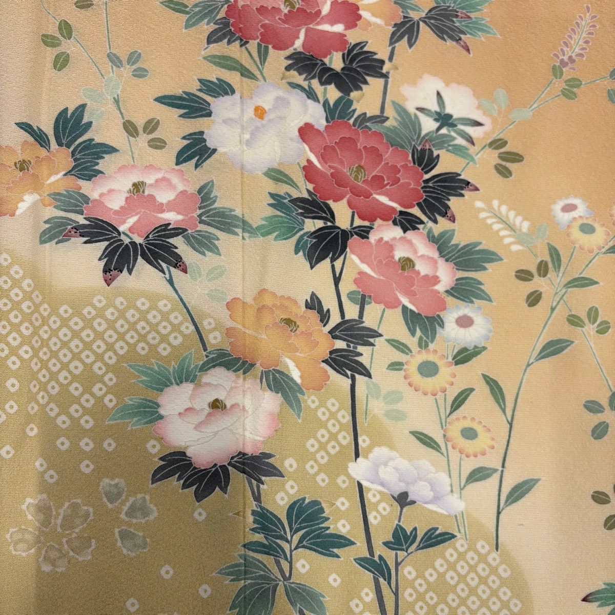 50%OFF 小紋 身丈155.5cm 裄丈60.5cm S 袷 菊 地紋 ぼかし ベージュ 正絹 秀品 K50