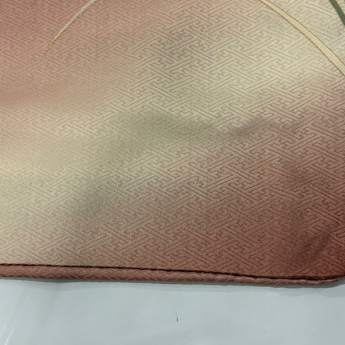 50%OFF 【美品】 名古屋帯 秀品 八寸名古屋帯 松葉仕立て トンネル仕立て 幾何学模様 金糸 薄茶色 正絹 K50