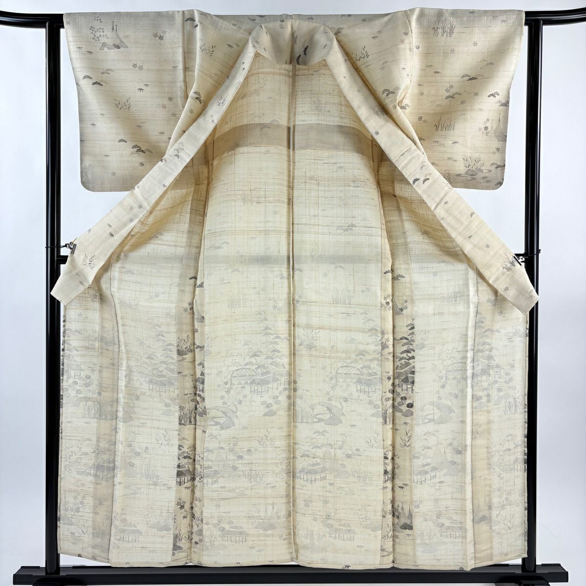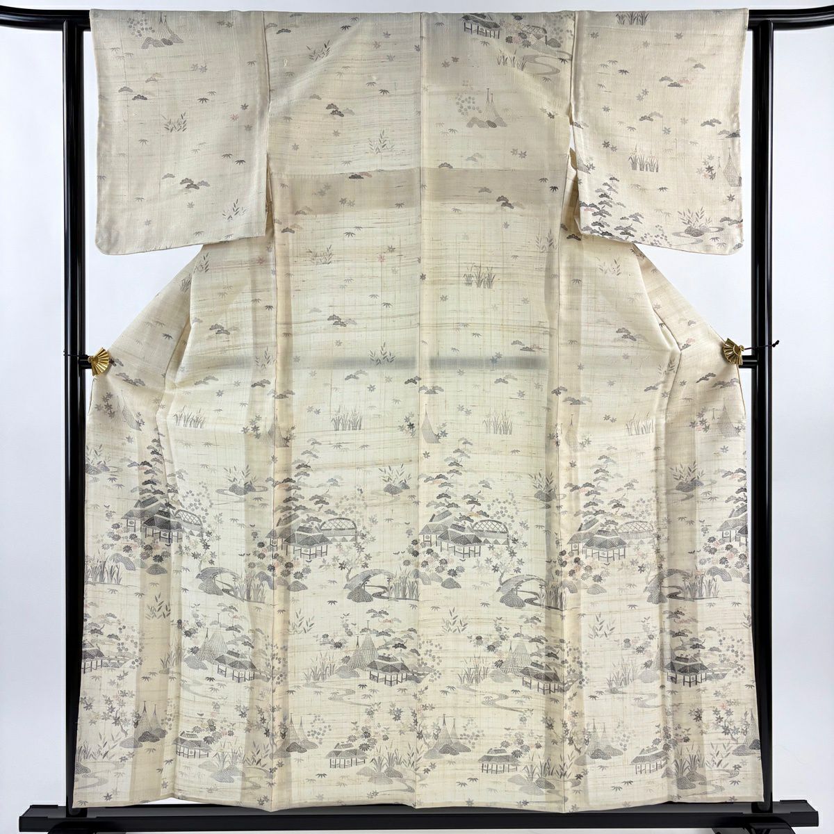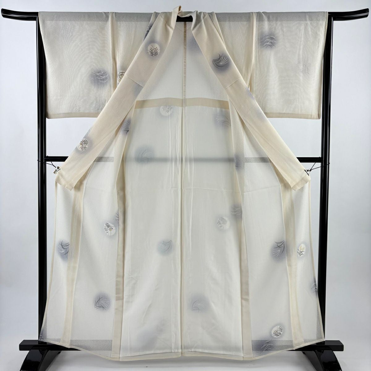 50%OFF 小紋 身丈160cm 裄丈65cm M 薄物 縦絽 秋草 芝 ぼかし クリーム 正絹 秀品 K50