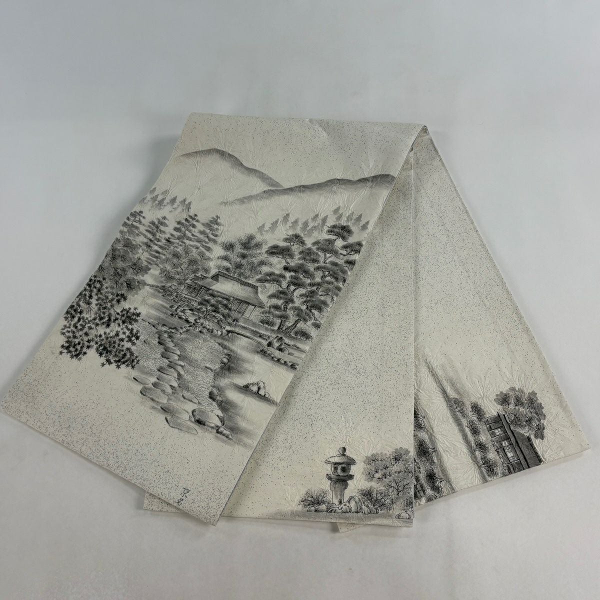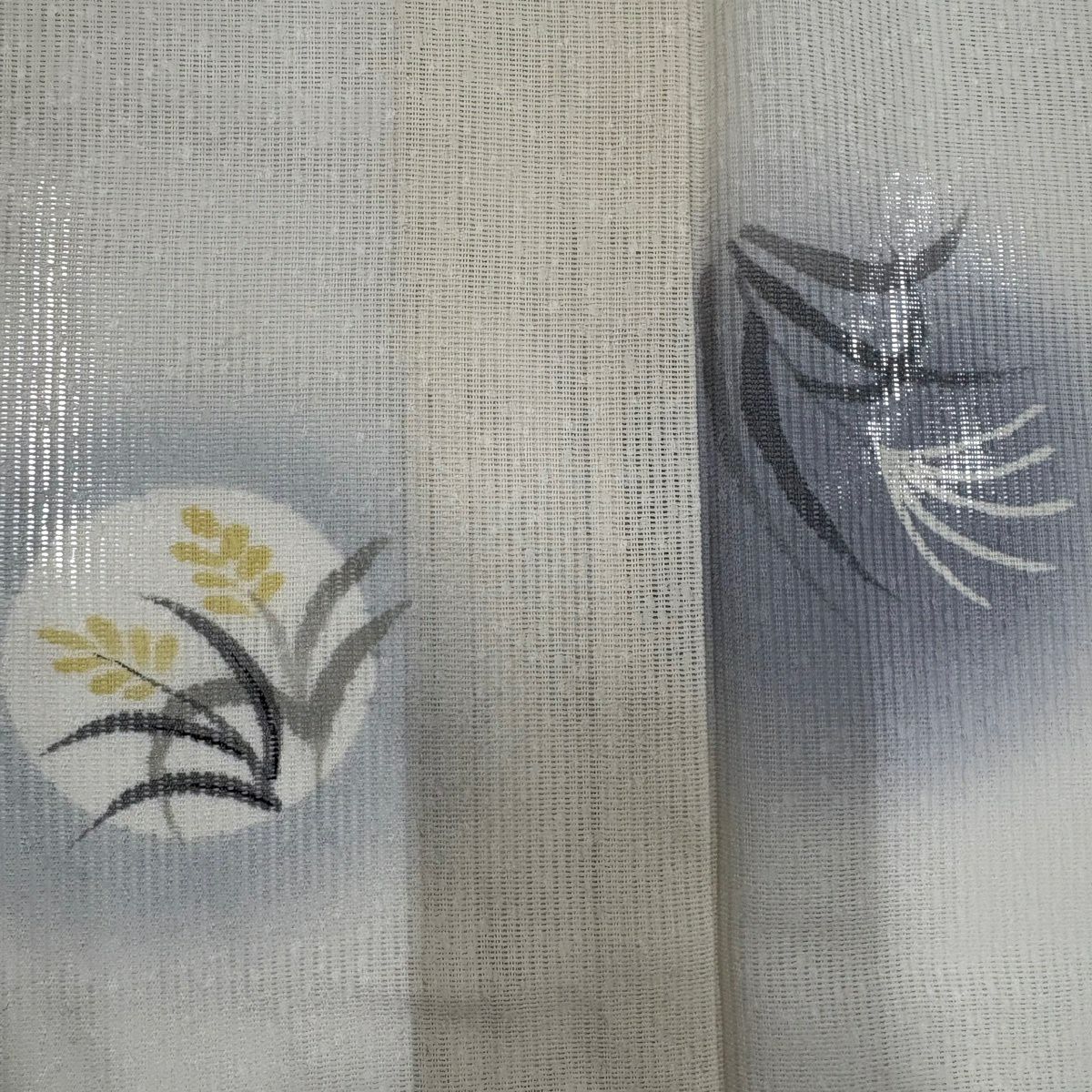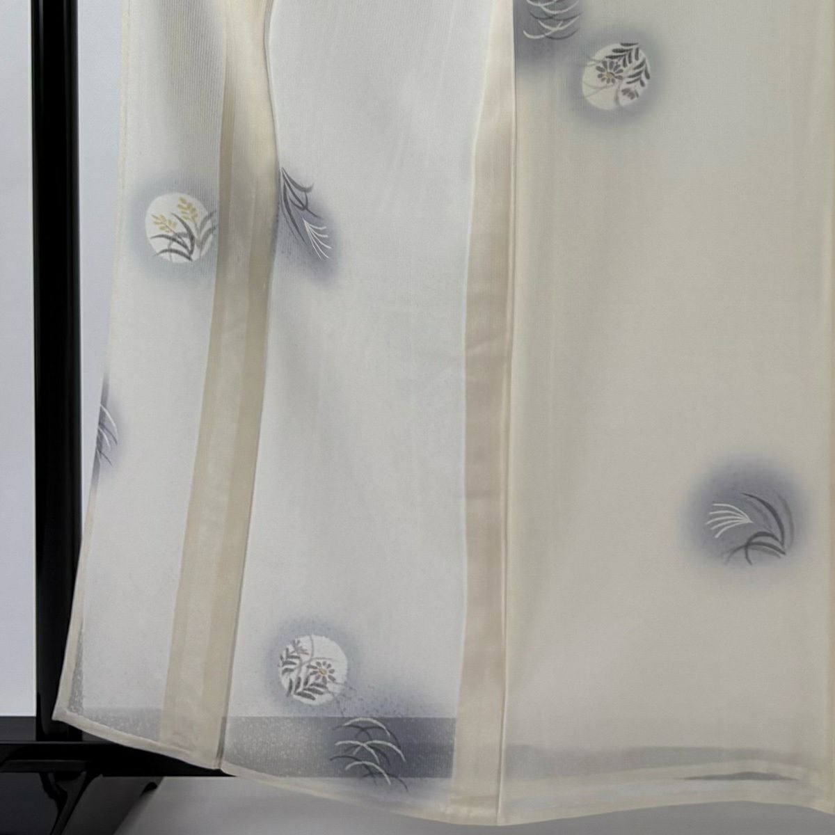 50%OFF 小紋 身丈160cm 裄丈65cm M 薄物 縦絽 秋草 芝 ぼかし クリーム 正絹 秀品 K50