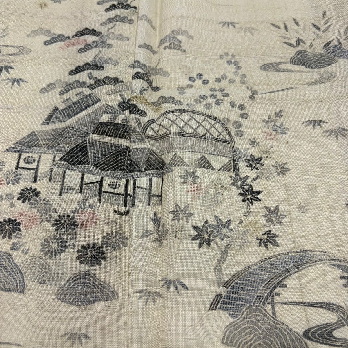 70%OFF 小紋 身丈157.5cm 裄丈61.5cm S 単衣 紬地 建物 松 ベージュ 正絹 秀品 K70