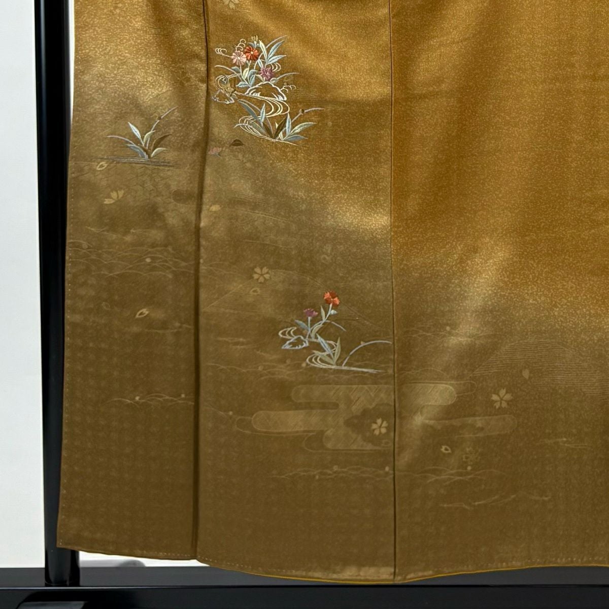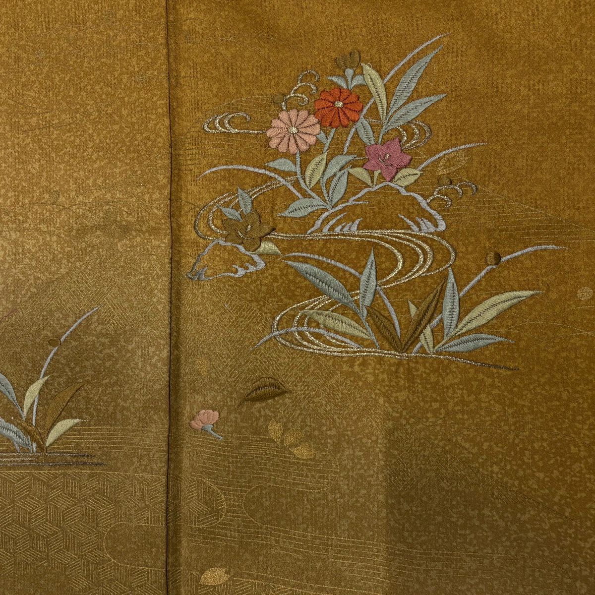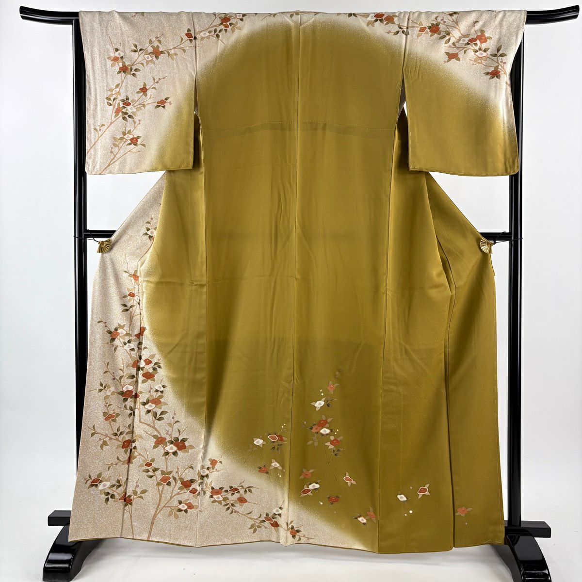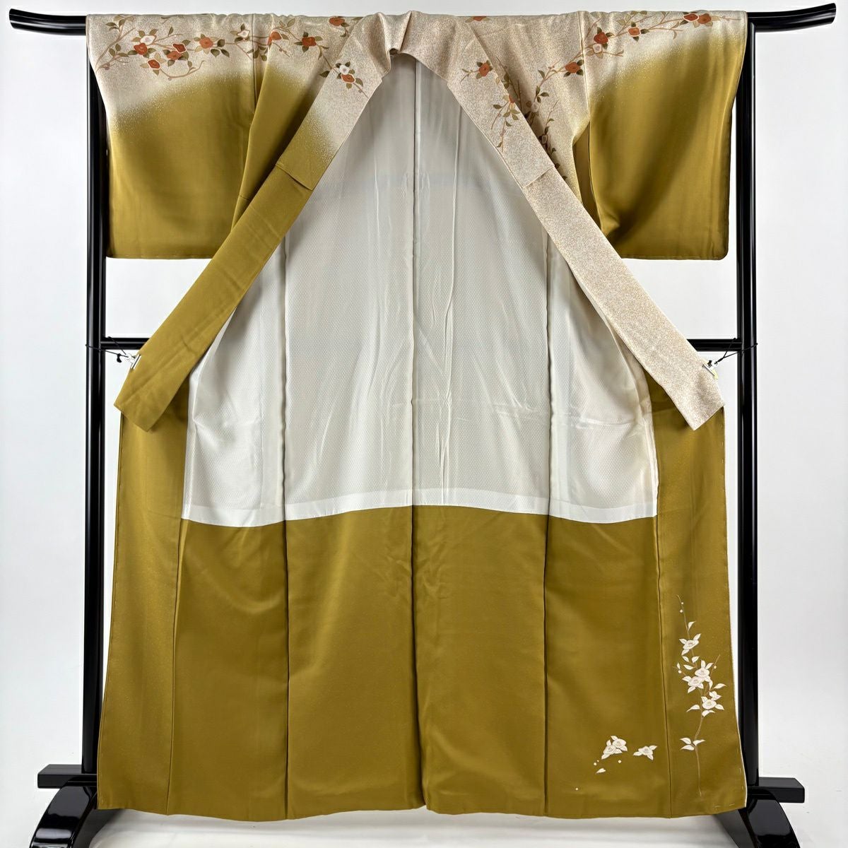 50%OFF 振袖 身丈168cm 裄丈66cm M 袷 御所車 草花 金彩 刺繍 からし色 正絹 秀品 K50