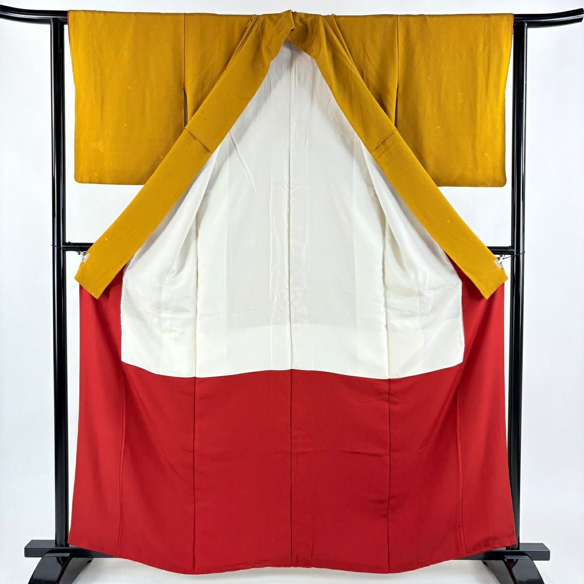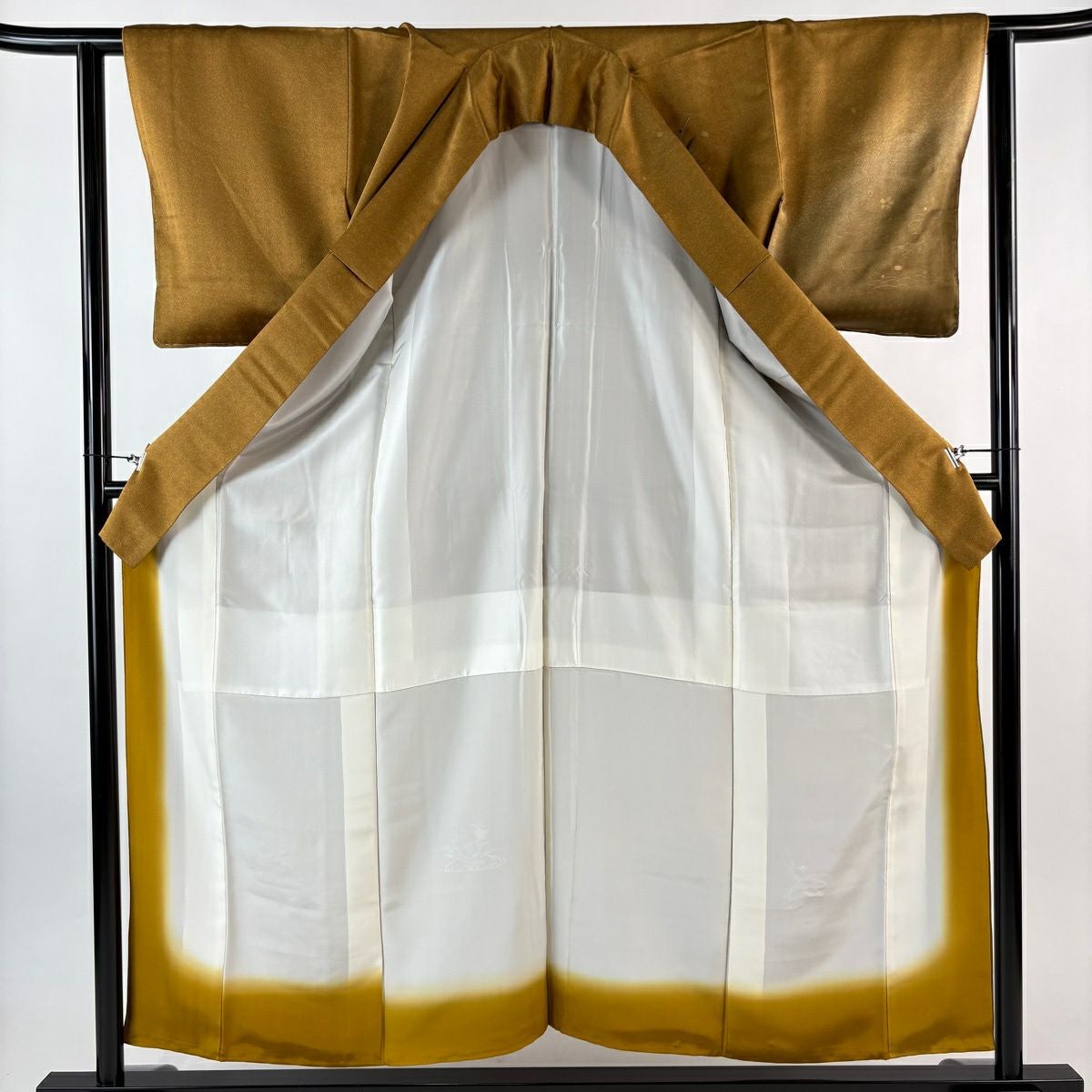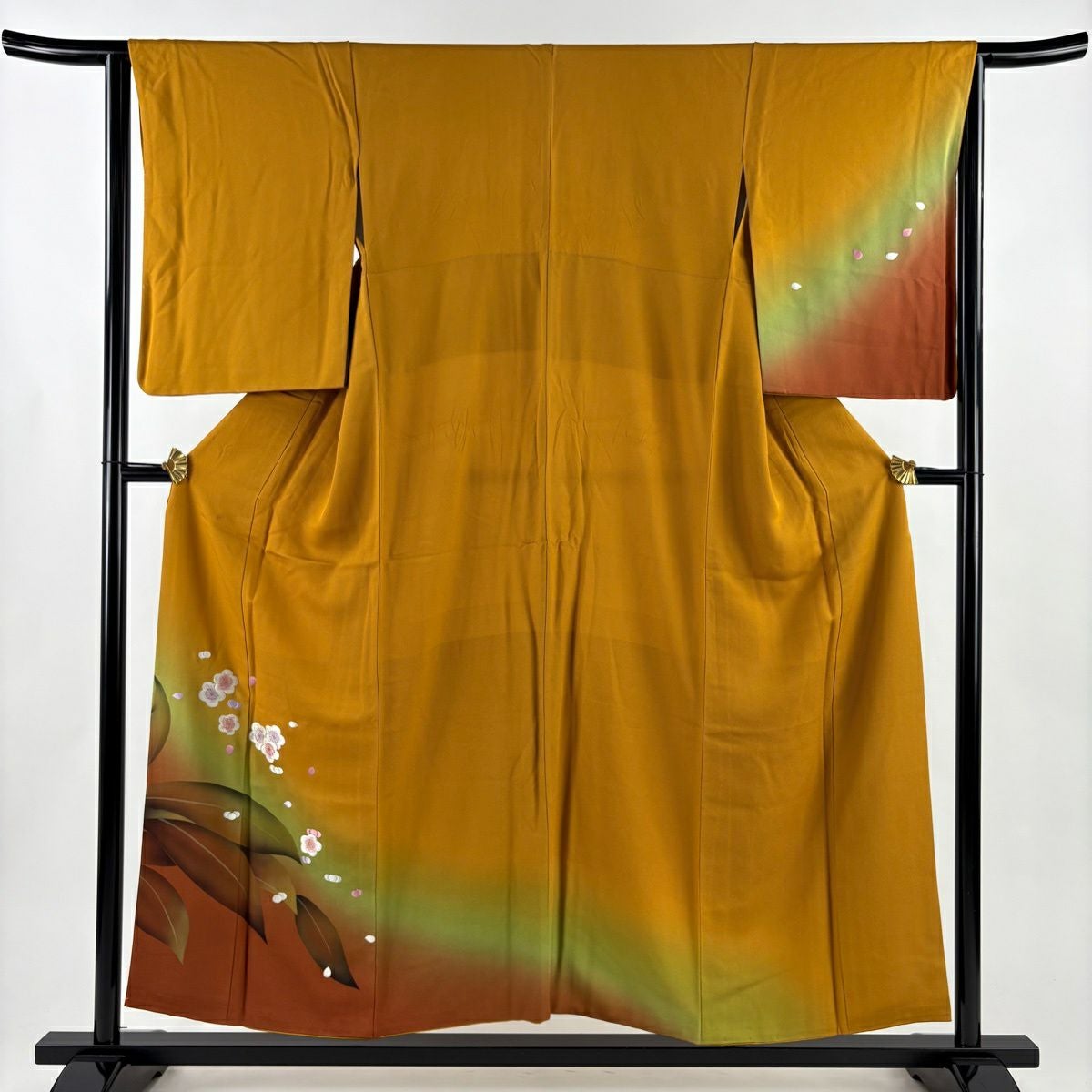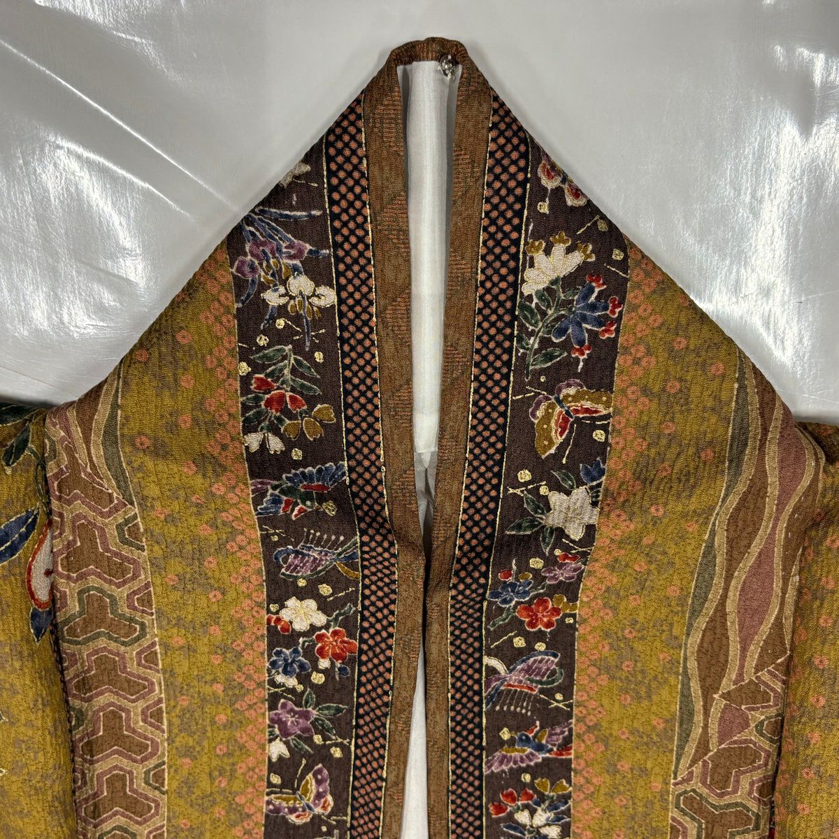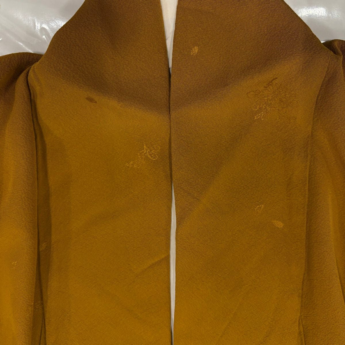 50%OFF 振袖 身丈168cm 裄丈66cm M 袷 御所車 草花 金彩 刺繍 からし色 正絹 秀品 K50