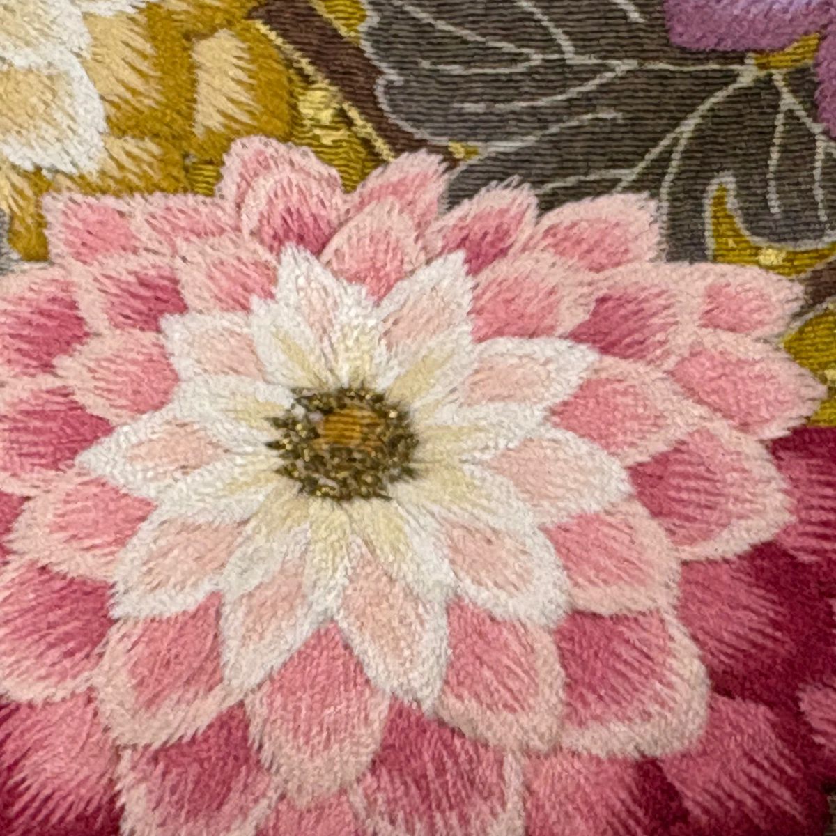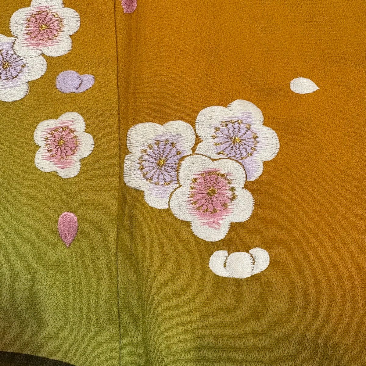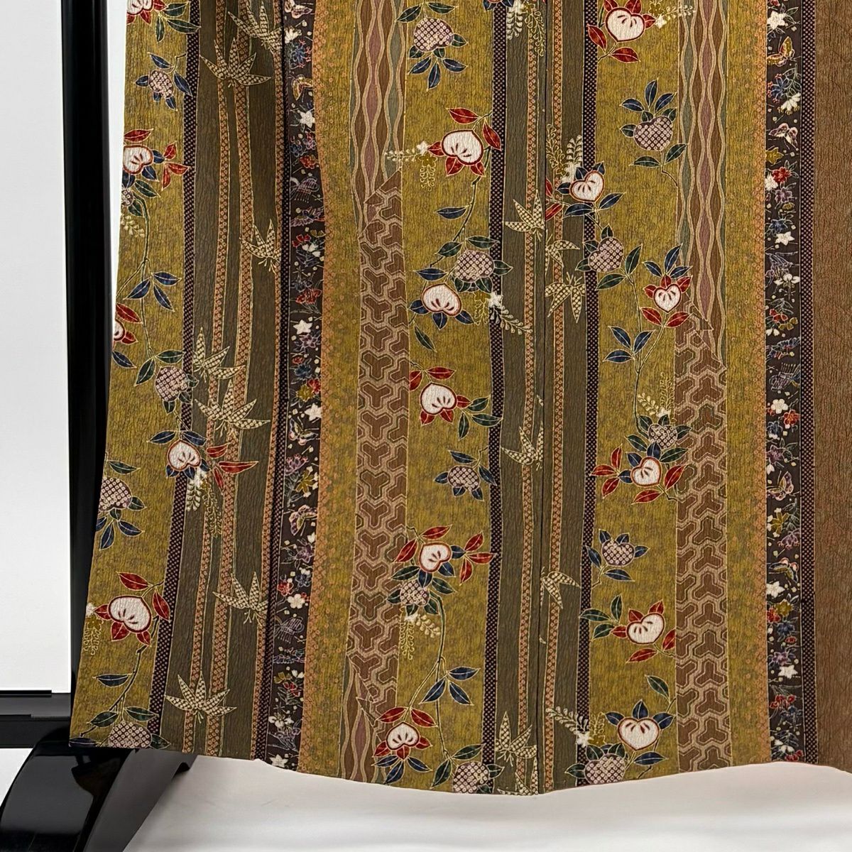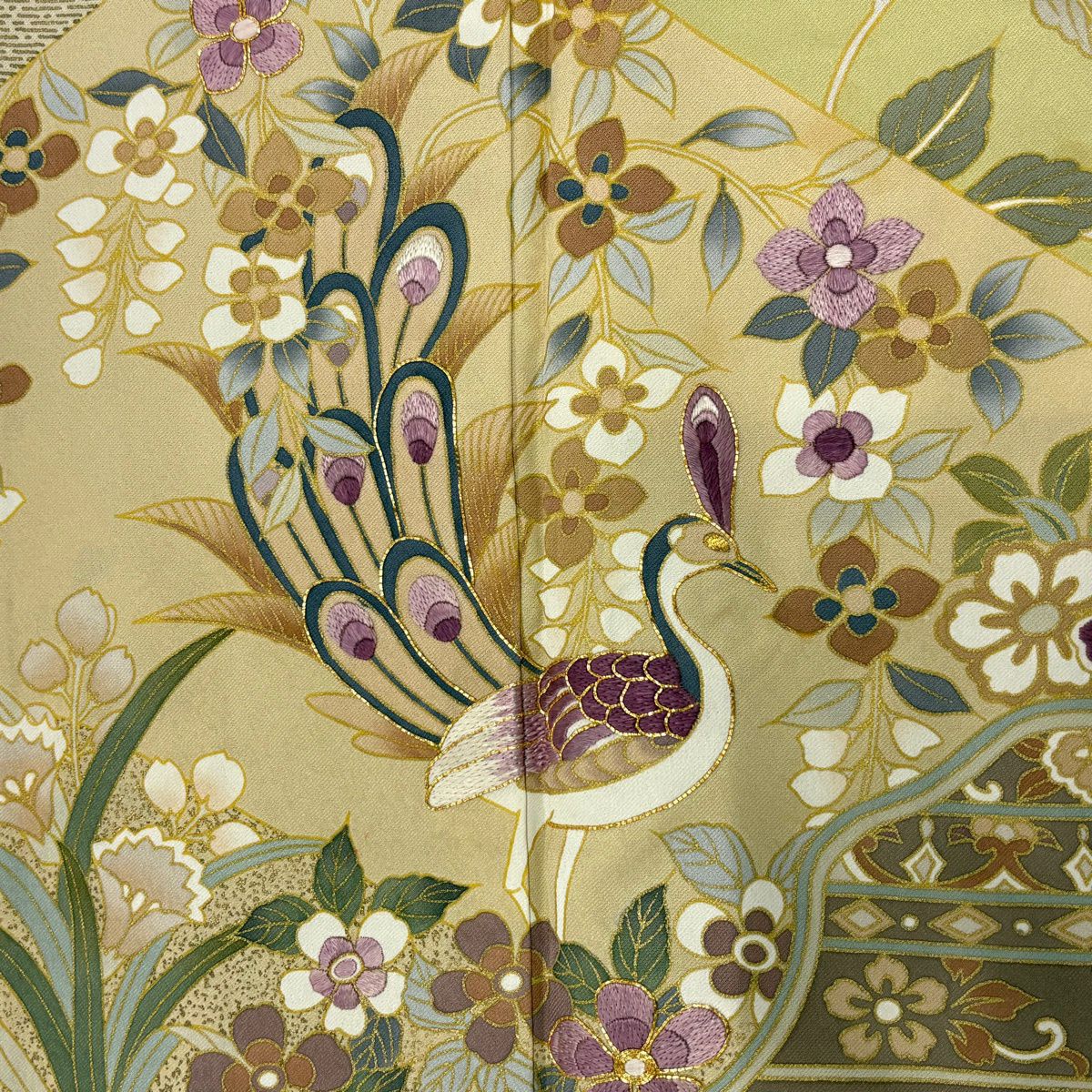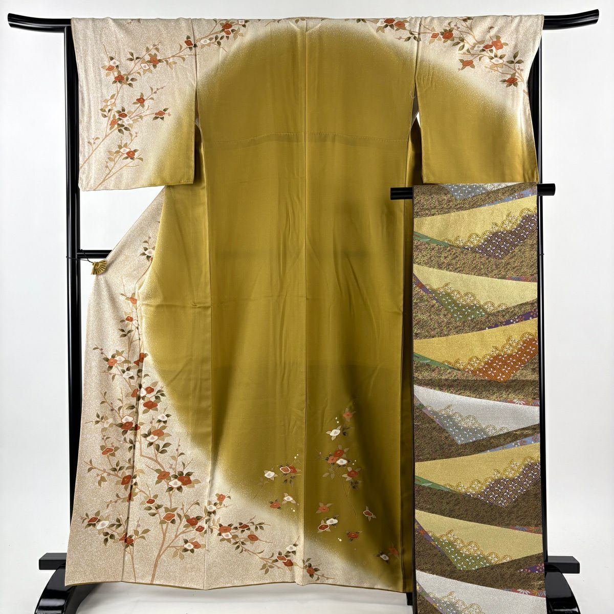 50%OFF 振袖 身丈168cm 裄丈66cm M 袷 御所車 草花 金彩 刺繍 からし色 正絹 秀品 K50