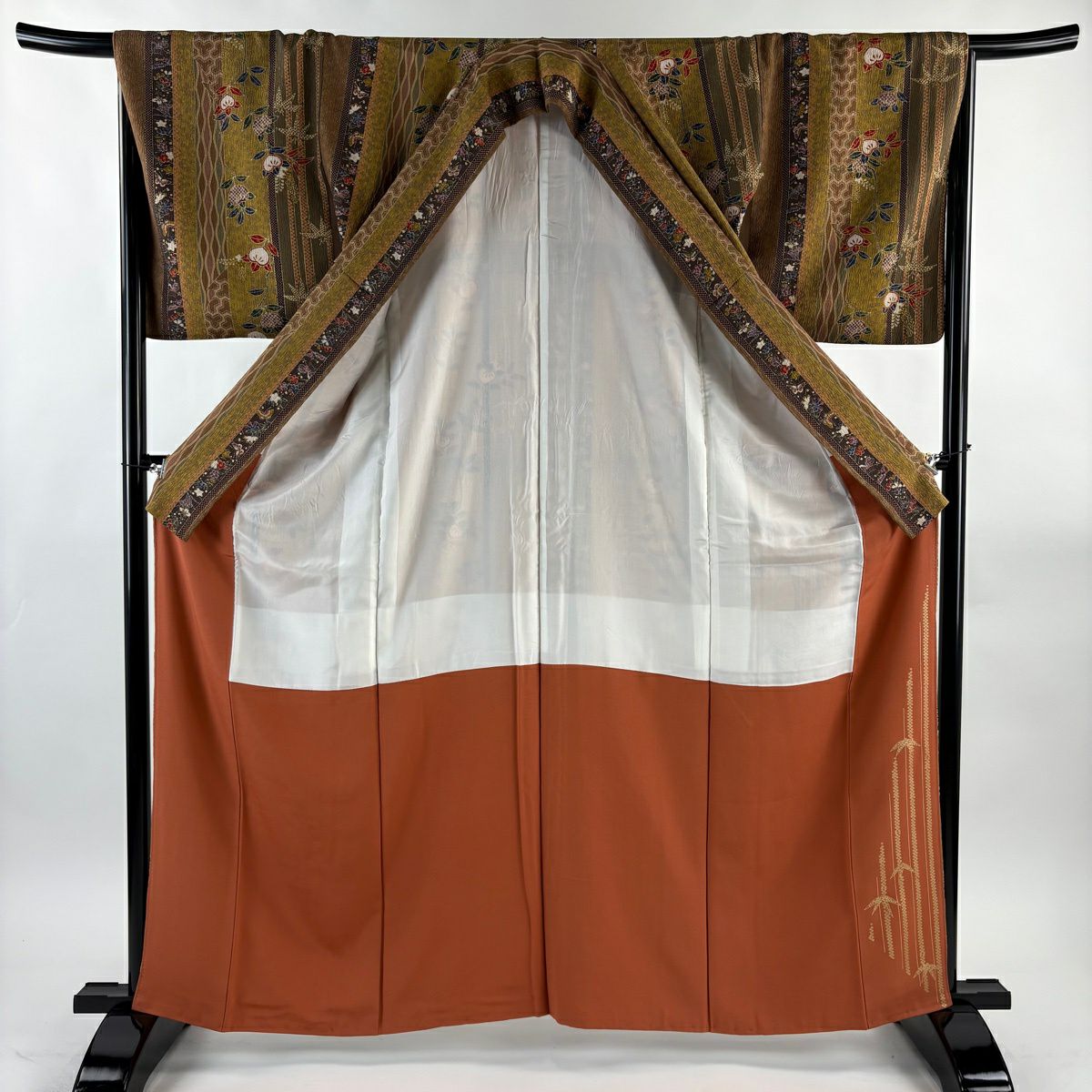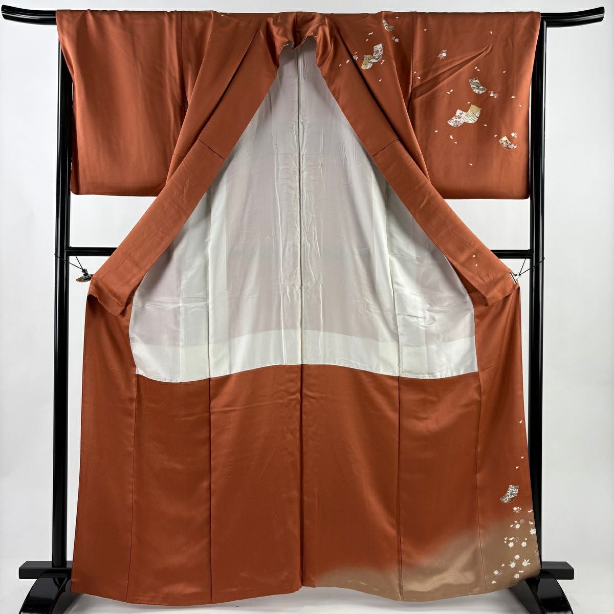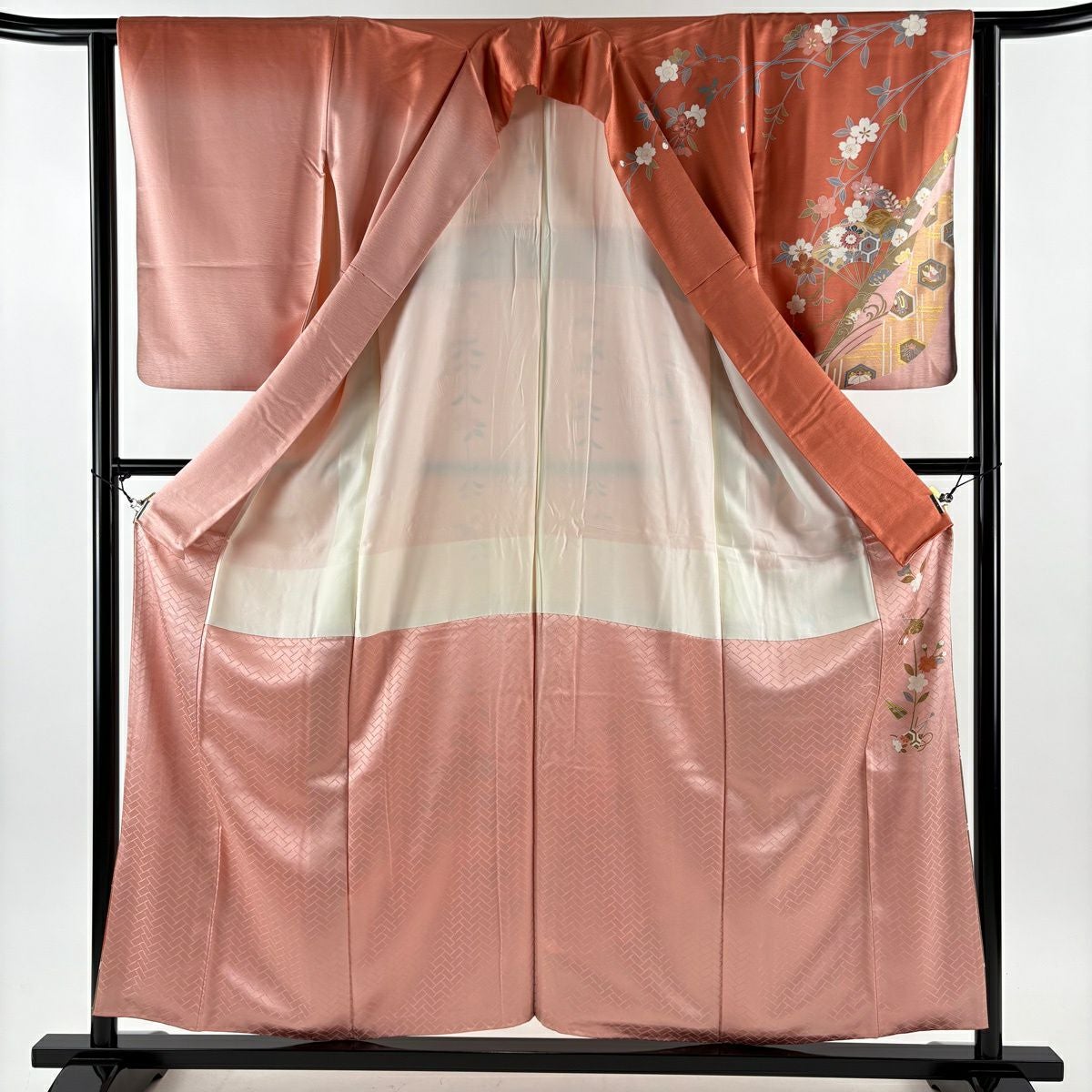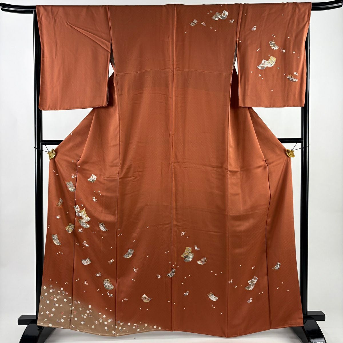 50%OFF 訪問着 身丈163.5cm 裄丈67.5cm L 袷 誰が袖 草花 金糸 金彩 赤茶 正絹 秀品 K50