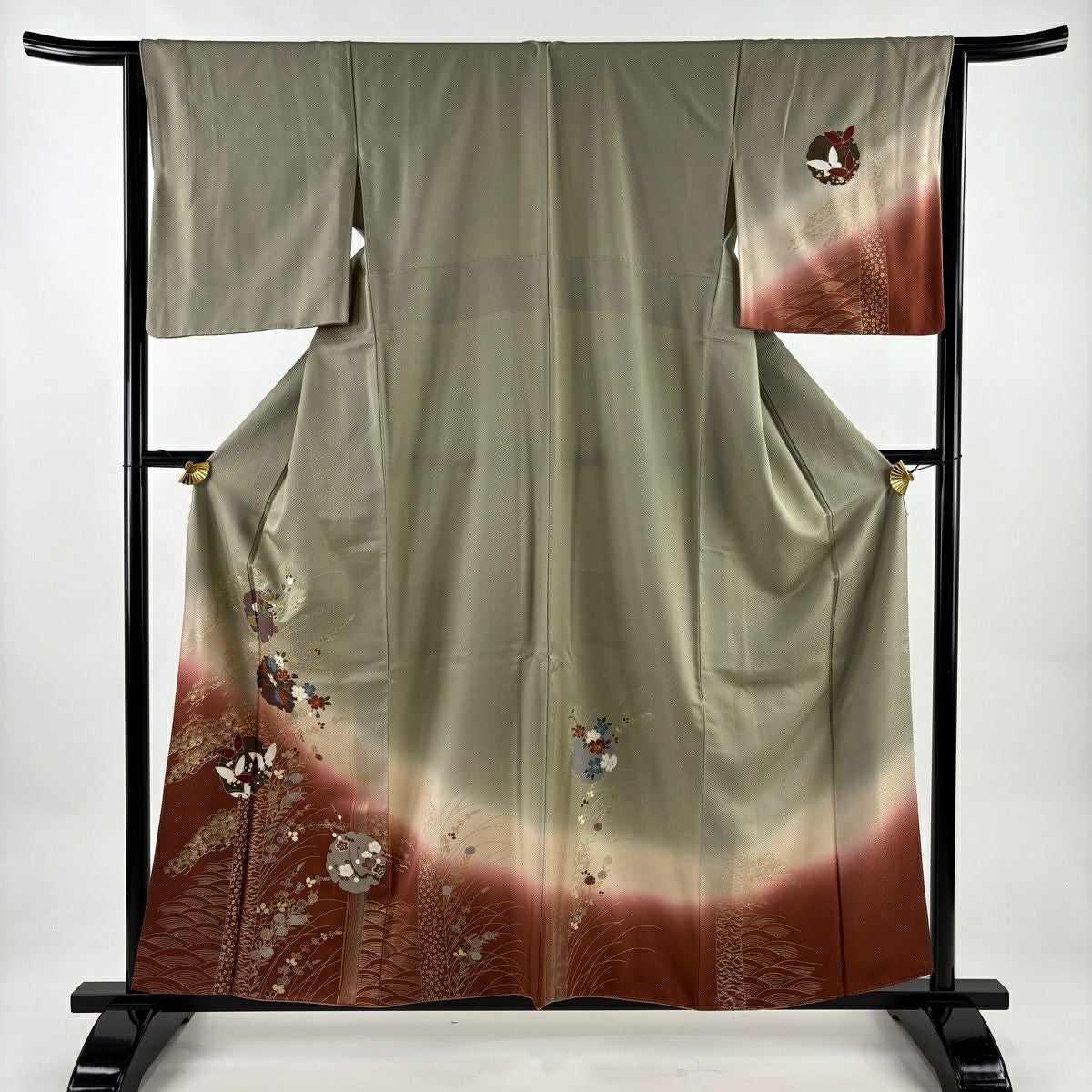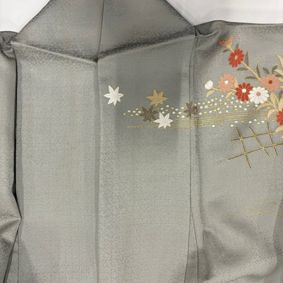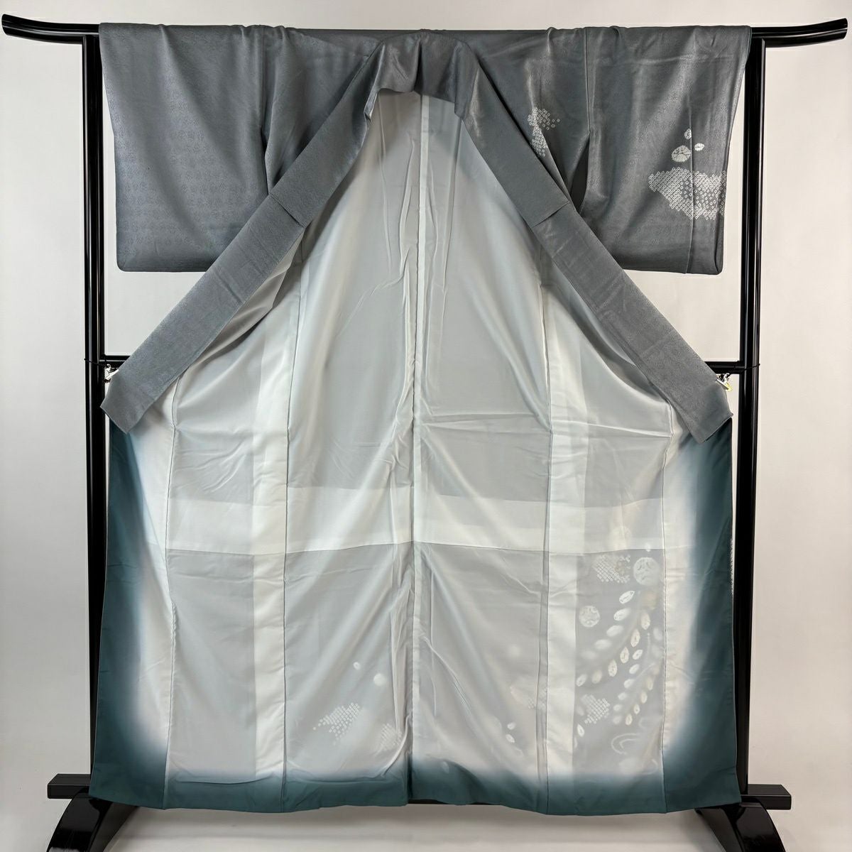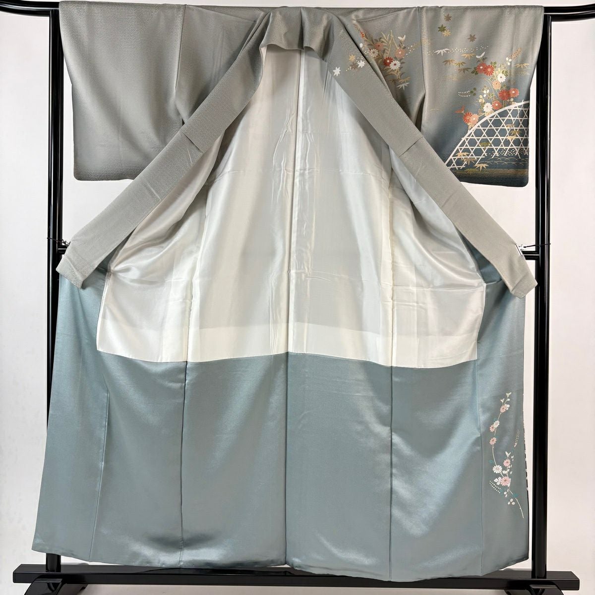 50%OFF 付下げ 身丈161.5cm 裄丈64.5cm M 袷 草花 雪輪 金糸 刺繍 灰色 正絹 秀品 K50