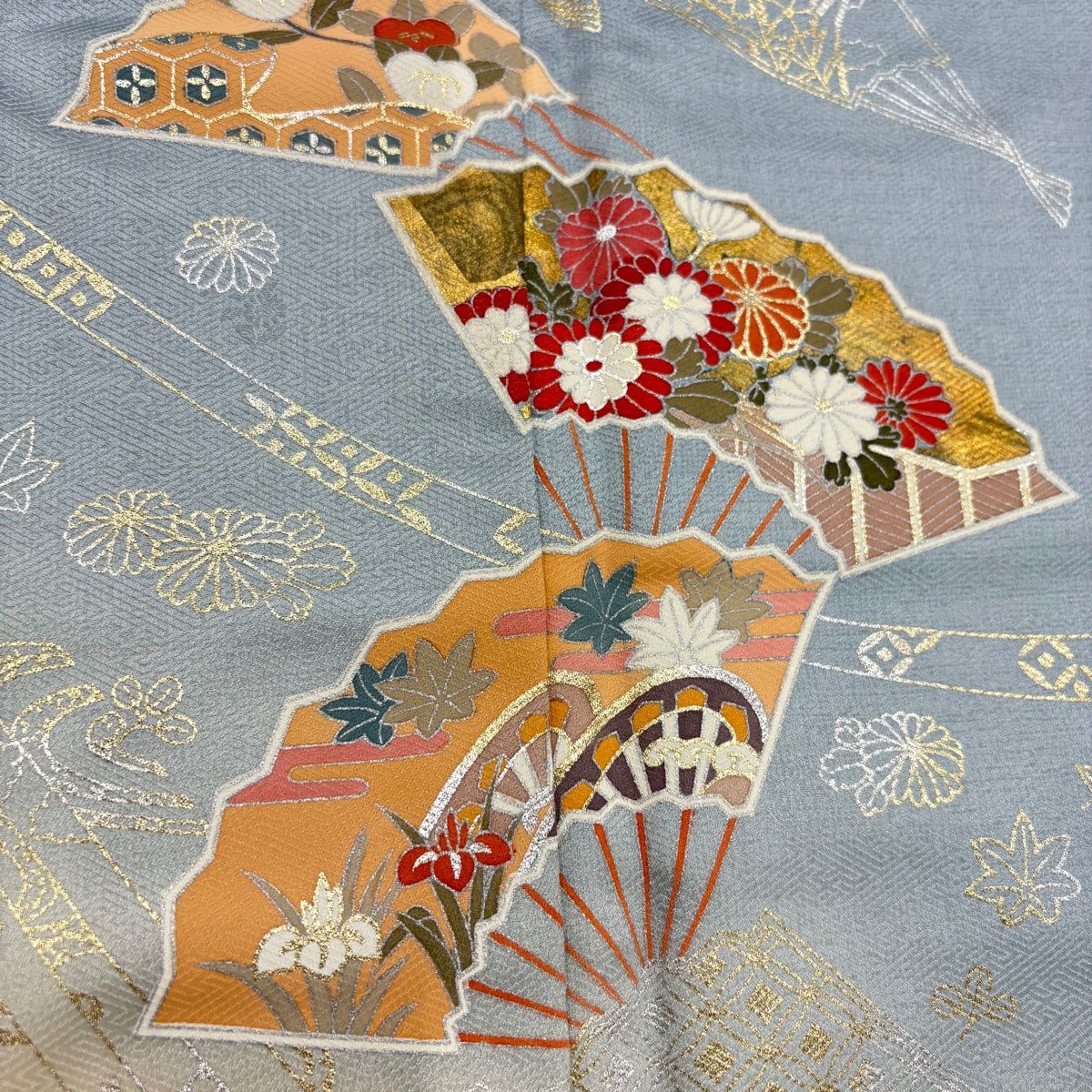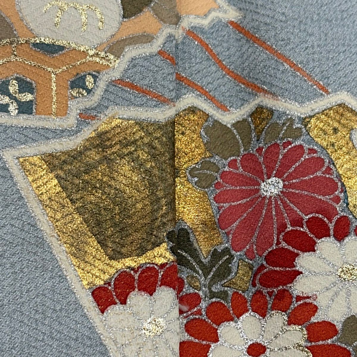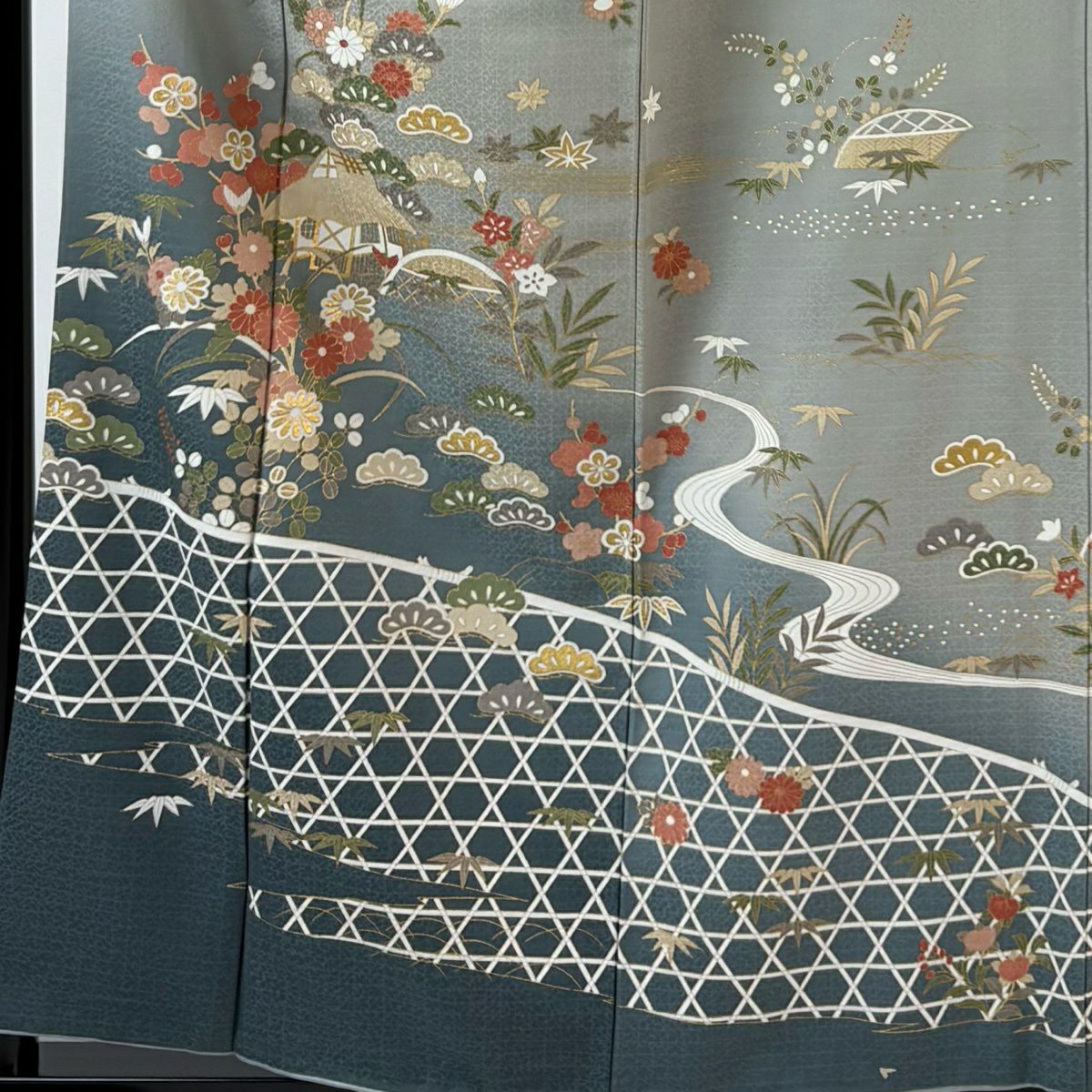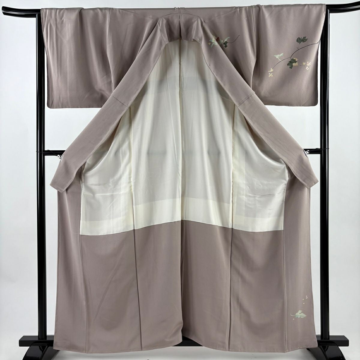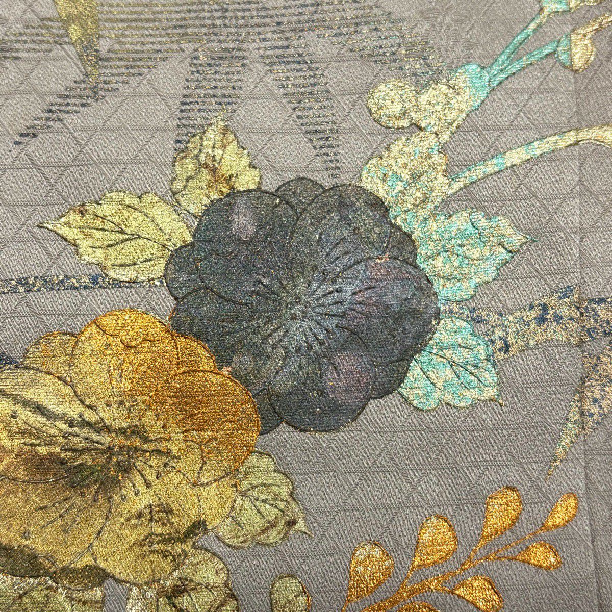 50%OFF 付下げ 身丈161.5cm 裄丈64.5cm M 袷 草花 雪輪 金糸 刺繍 灰色 正絹 秀品 K50