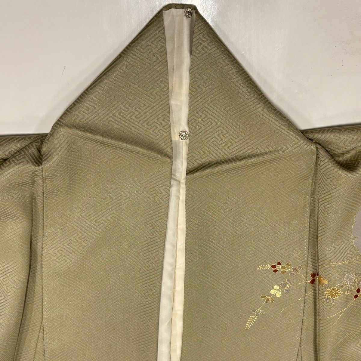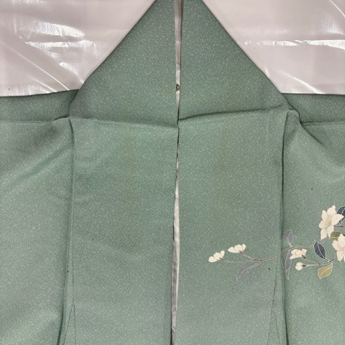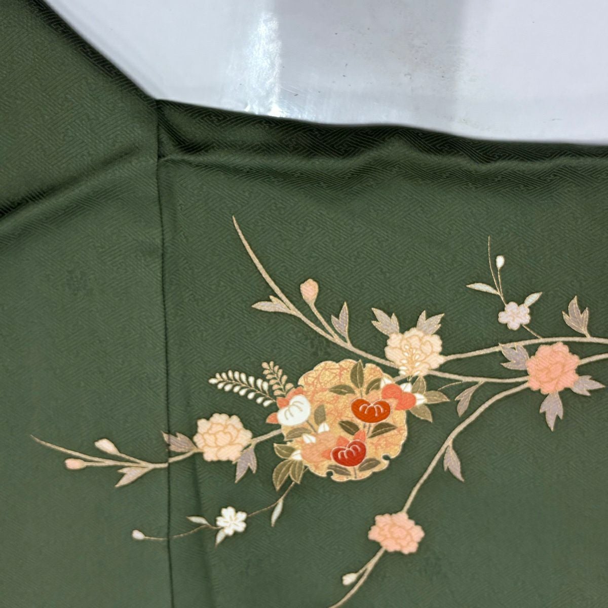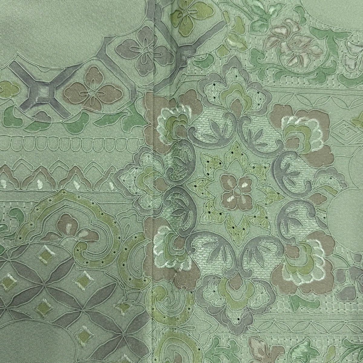 70%OFF 付下げ 身丈157cm 裄丈63.5cm S 袷 草花 地紋 金彩 螺鈿 灰緑 正絹 秀品 K70