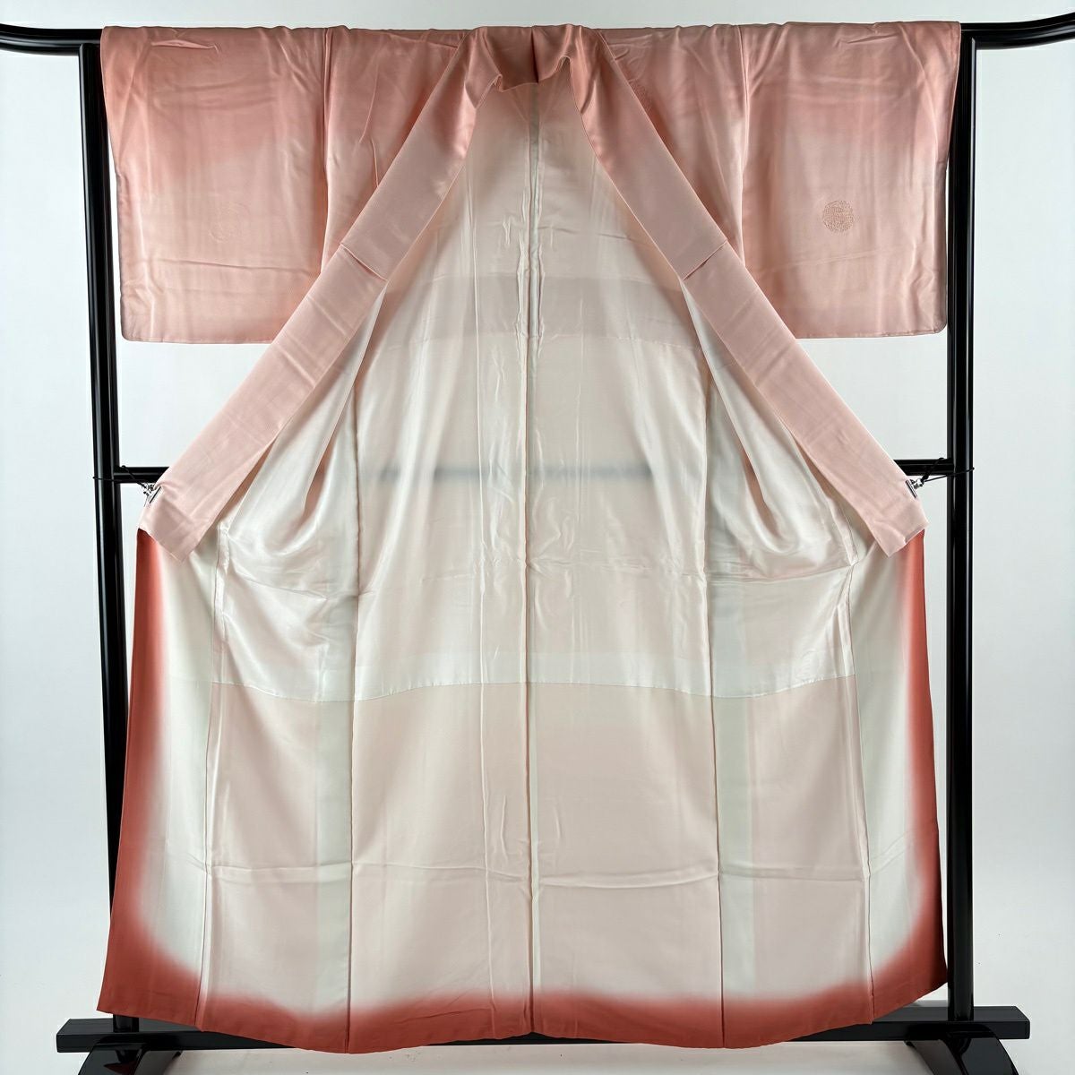 70%OFF 付下げ 身丈158cm 裄丈63cm S 袷 雪輪 霞 刺繍 ぼかし ピンク 正絹 秀品 K70