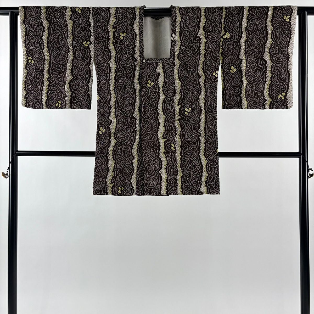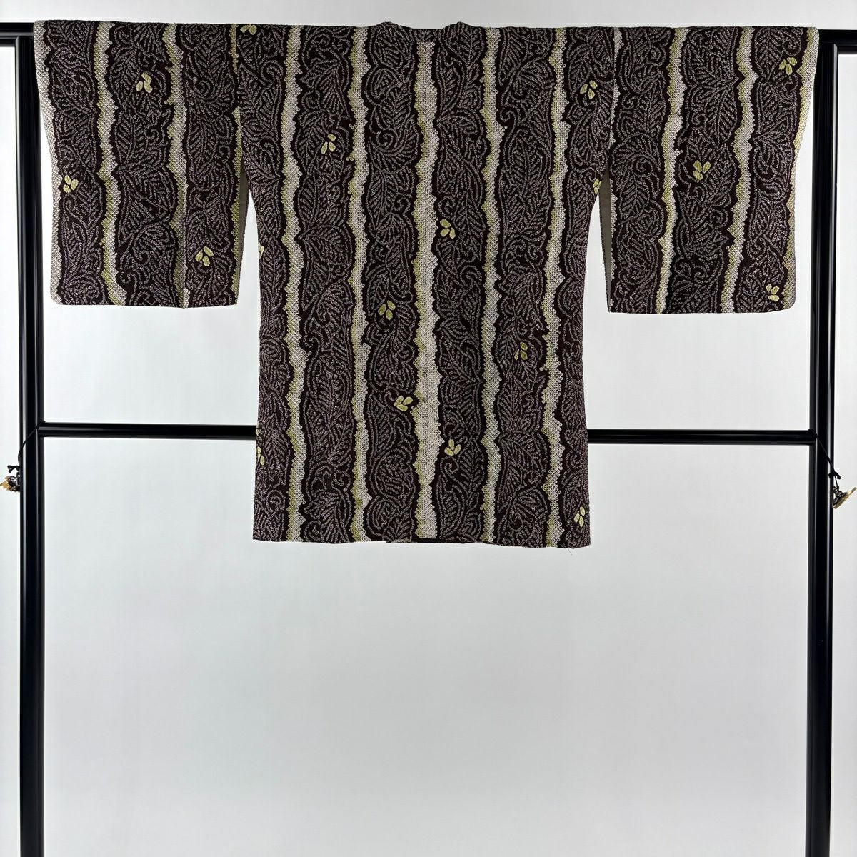 70%OFF 道行 身丈84cm 裄丈63.5cm S 和装コート 角衿 草花 絞り 焦茶色 正絹 秀品 K70