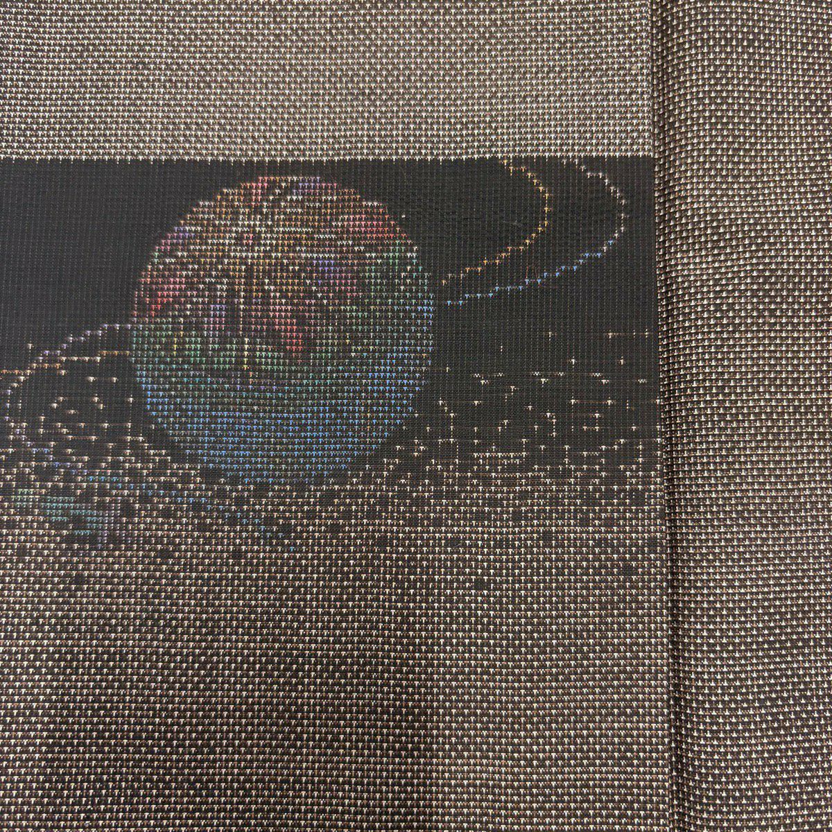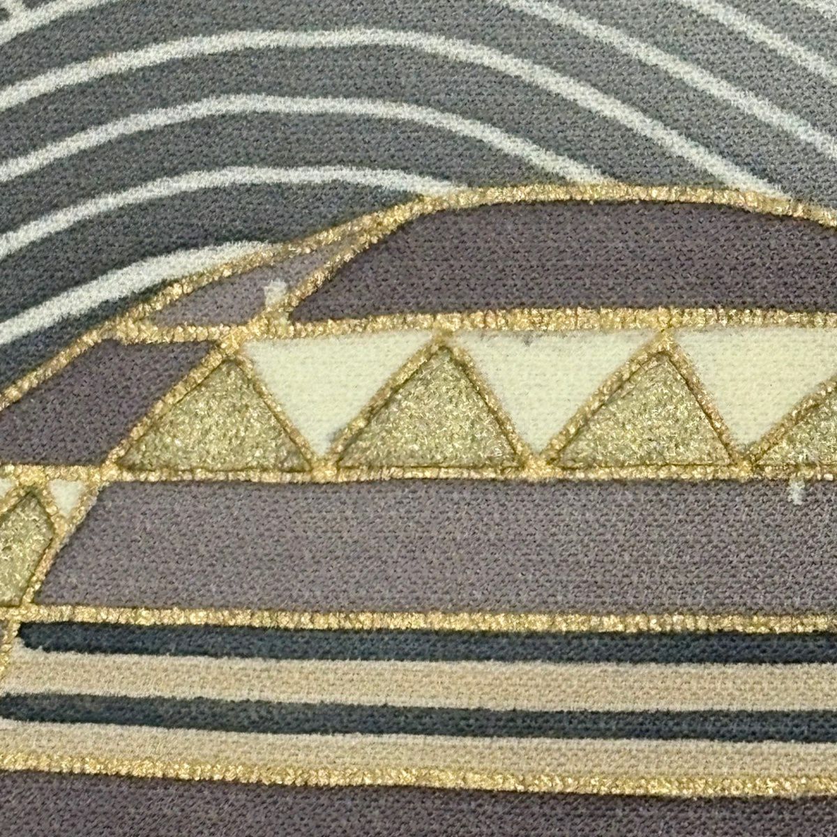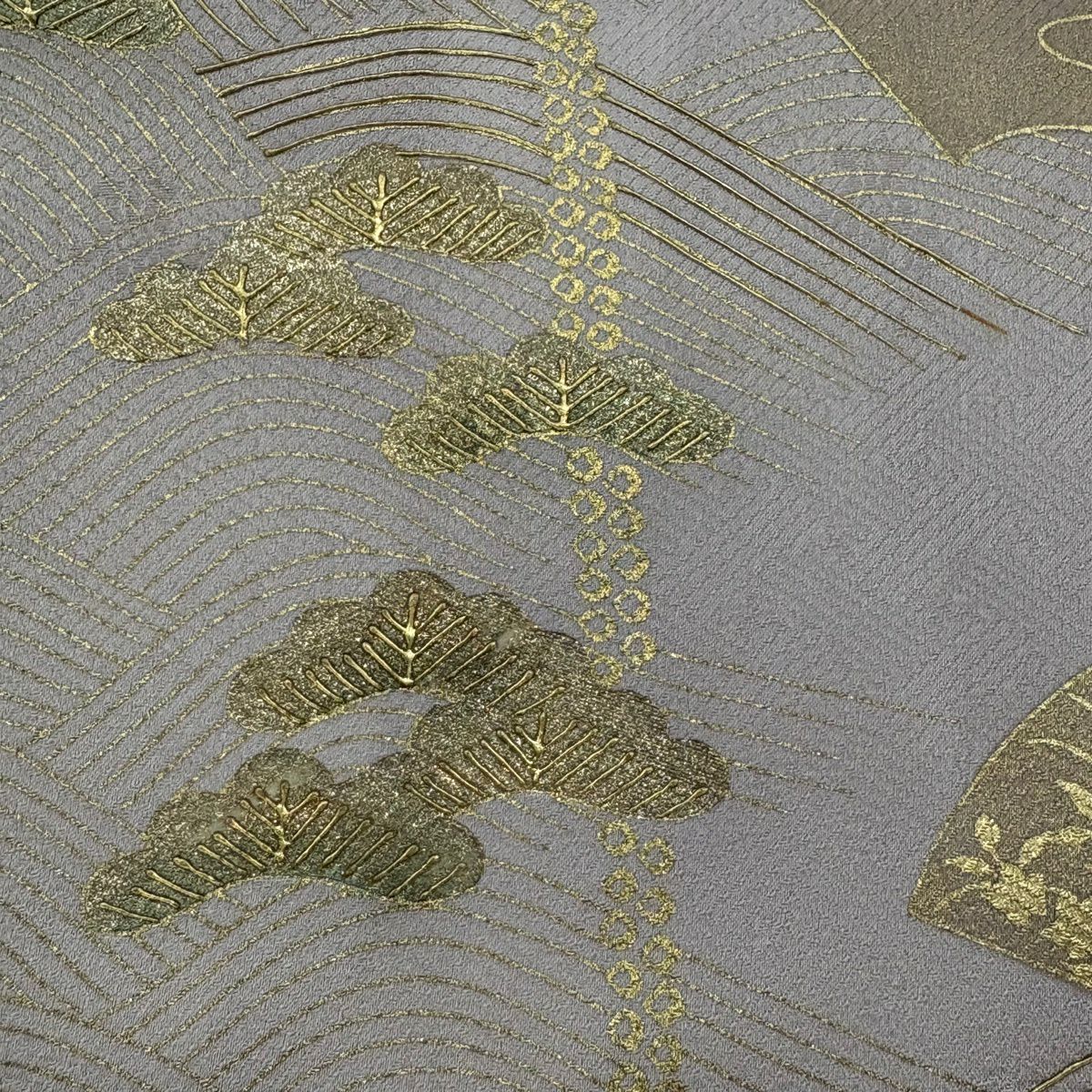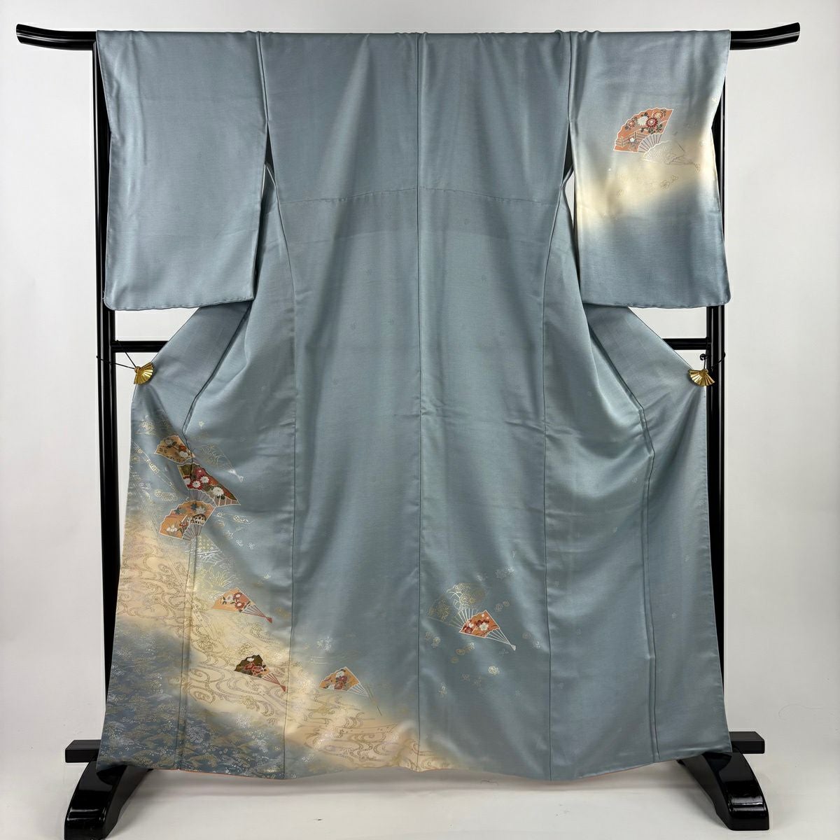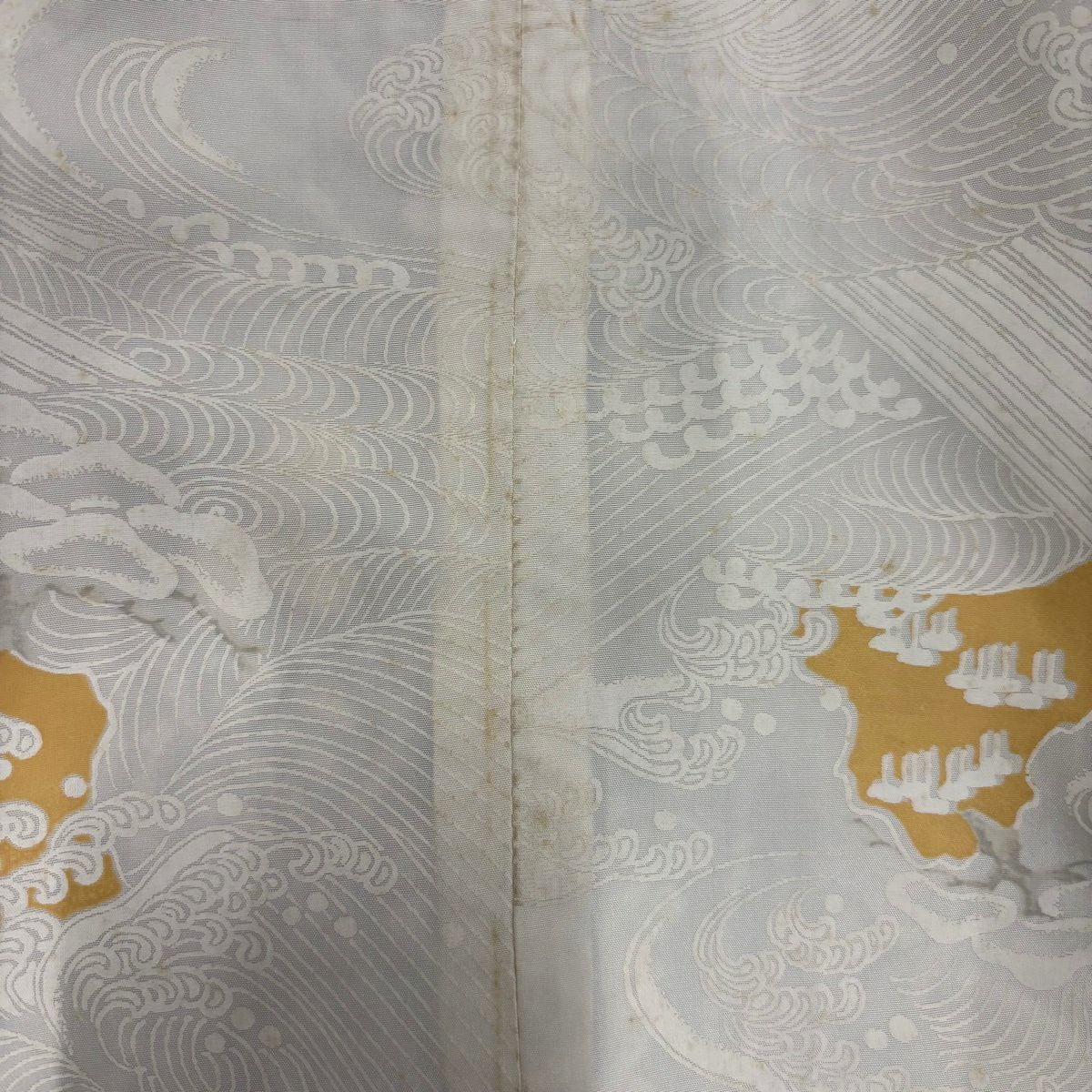 70%OFF 付下げ 身丈150cm 裄丈63cm S 袷 丸文 波 金糸 金彩 灰色 正絹 秀品 一つ紋 K70