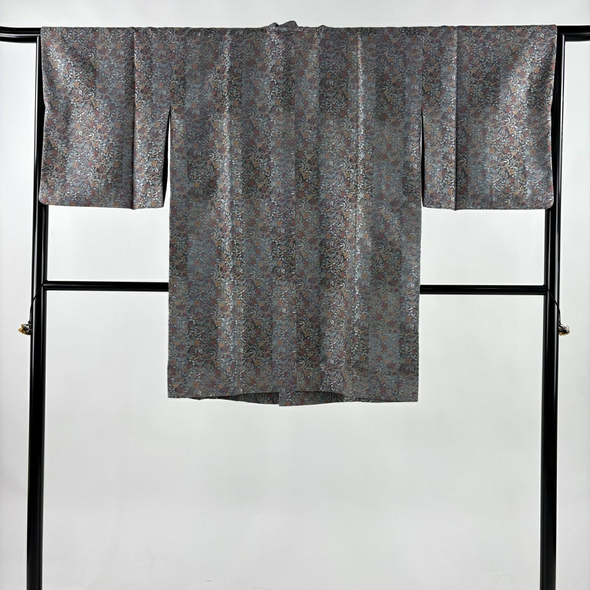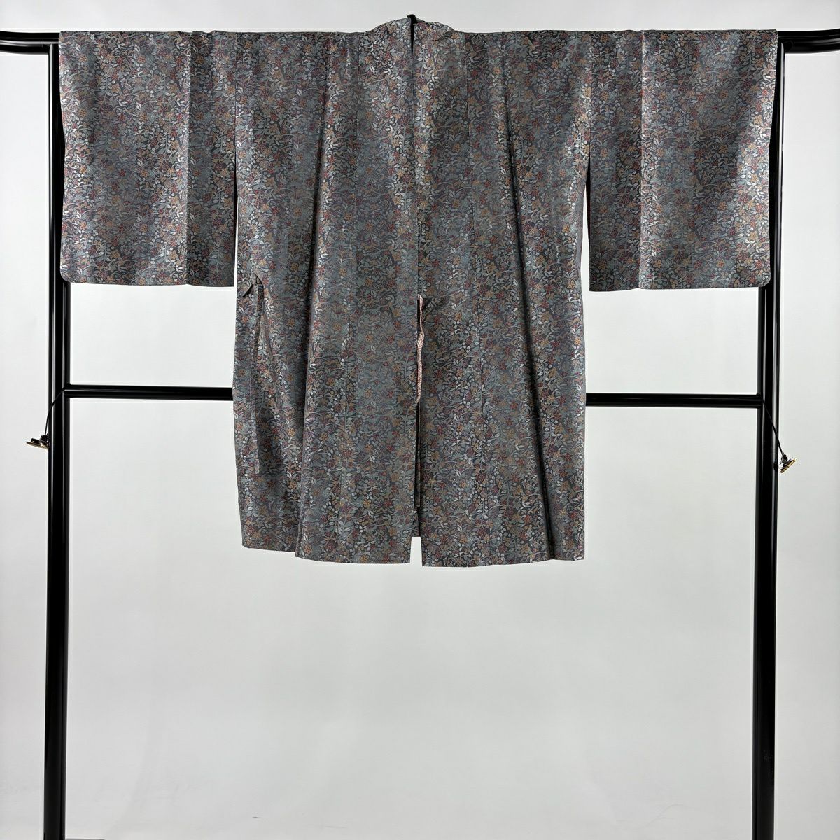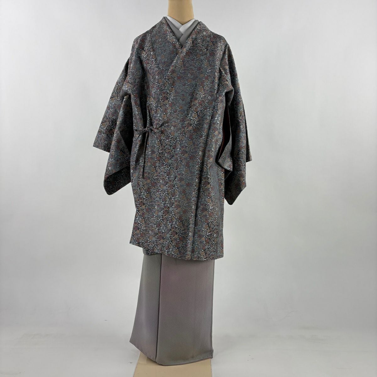 70%OFF 【美品】 道中着 身丈94cm 裄丈65cm M 和装コート 萩 草花 青灰色 正絹 秀品 K70