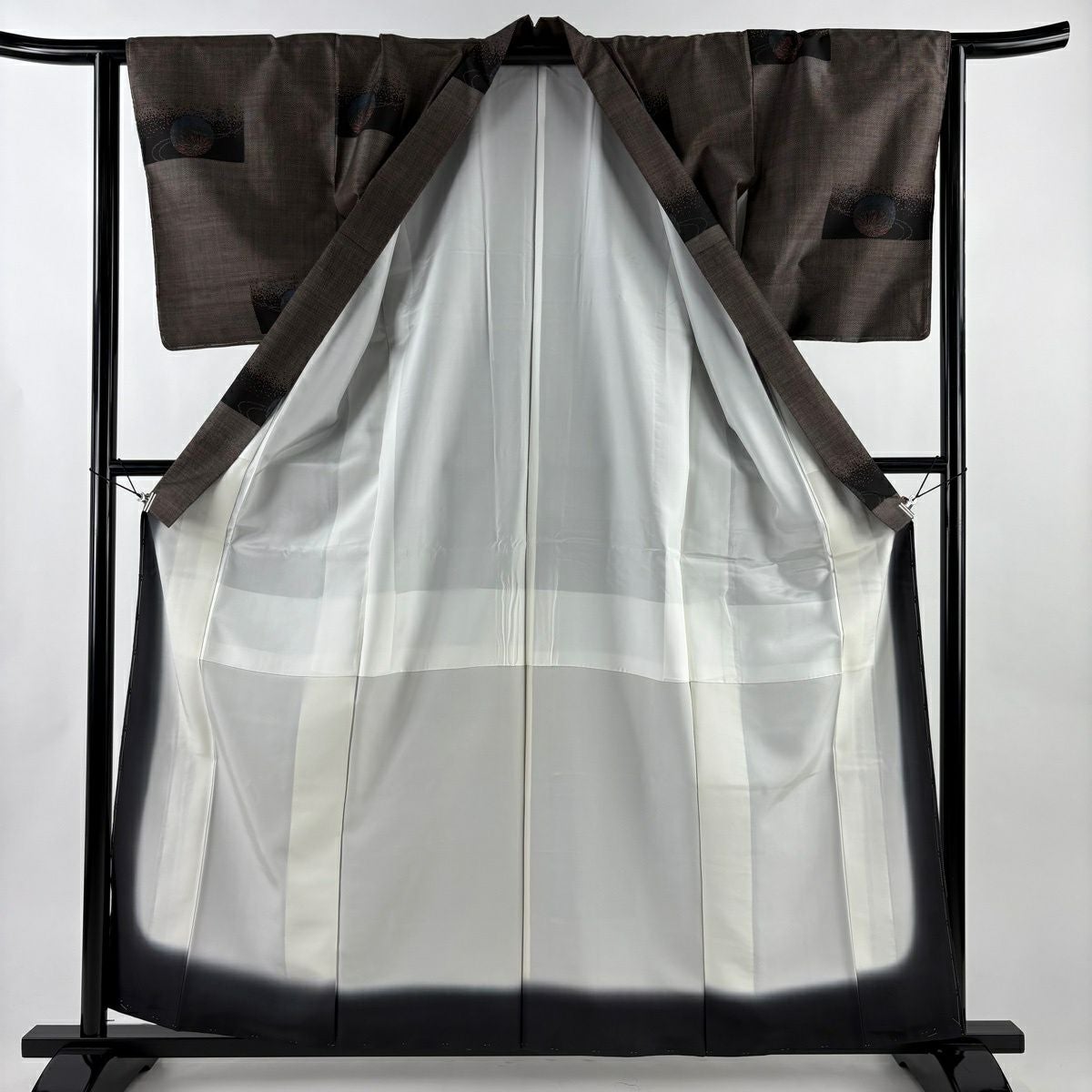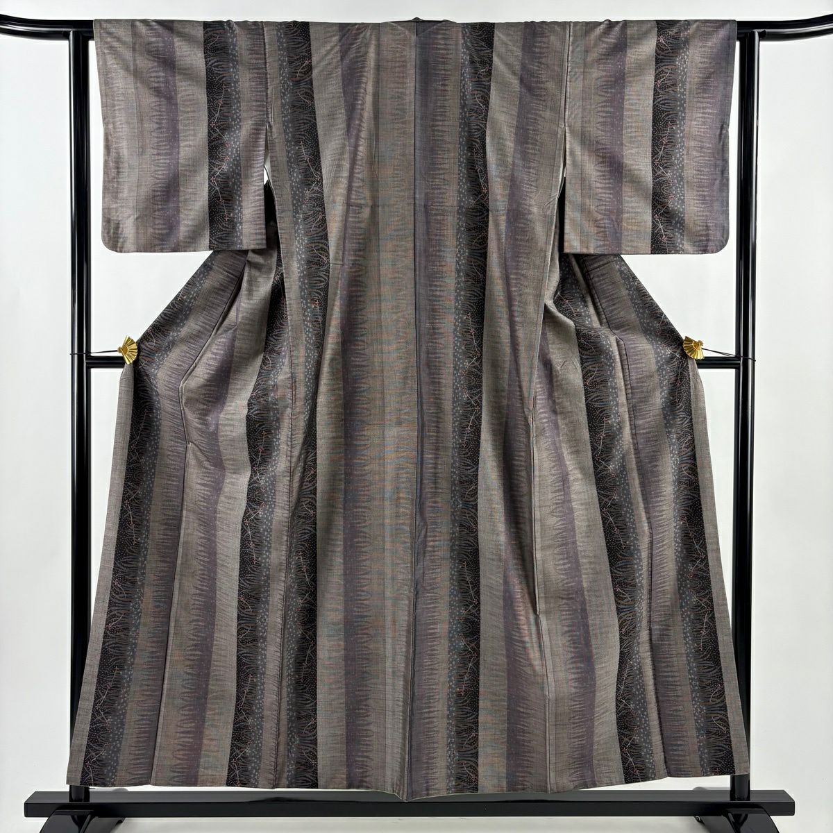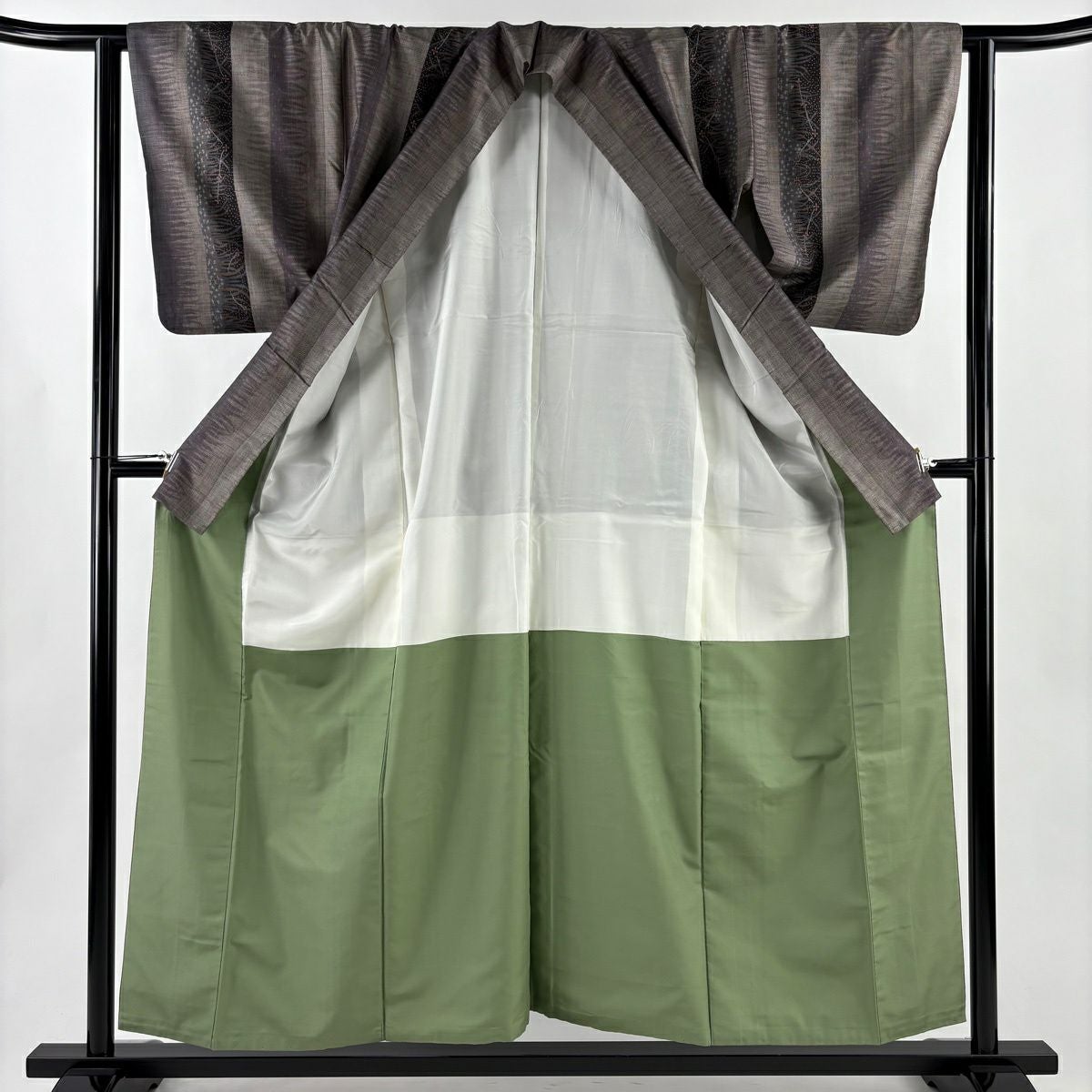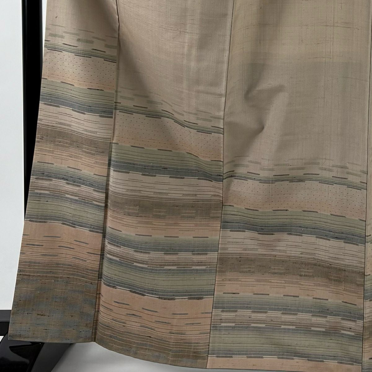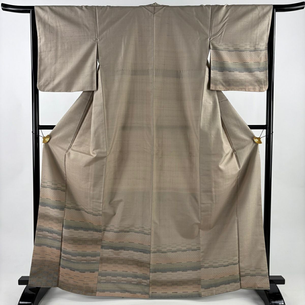 50%OFF 付下げ 身丈167cm 裄丈64.5cm M 袷 紬地 段縞 幾何学模様 灰茶 正絹 秀品 K50