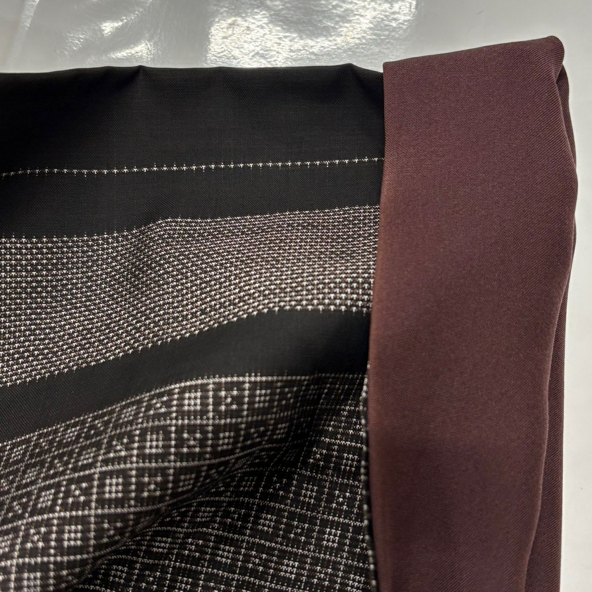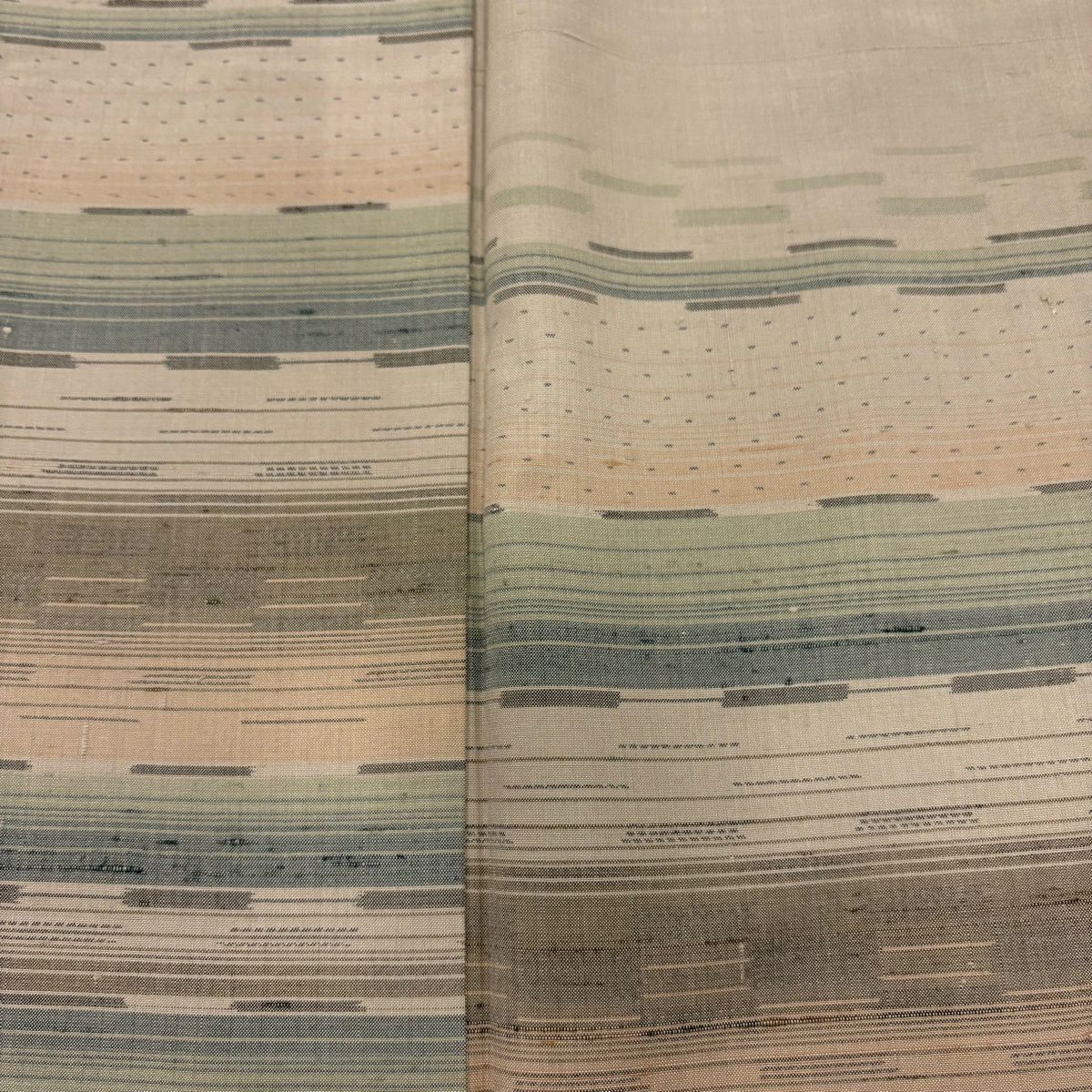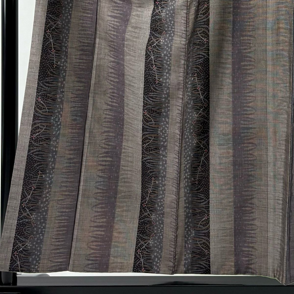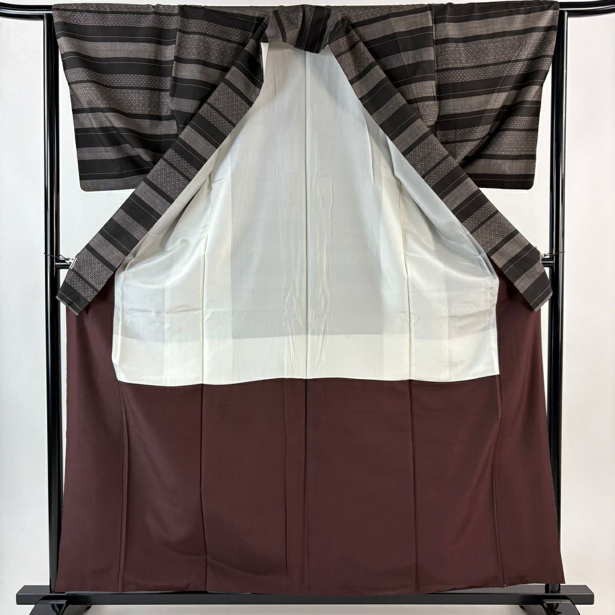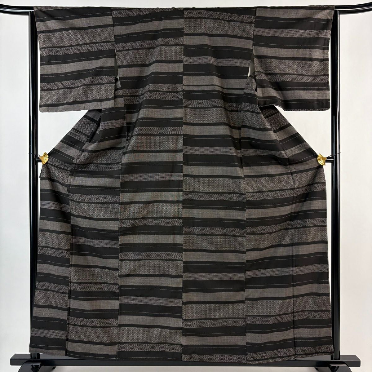 50%OFF 付下げ 身丈167cm 裄丈64.5cm M 袷 紬地 段縞 幾何学模様 灰茶 正絹 秀品 K50