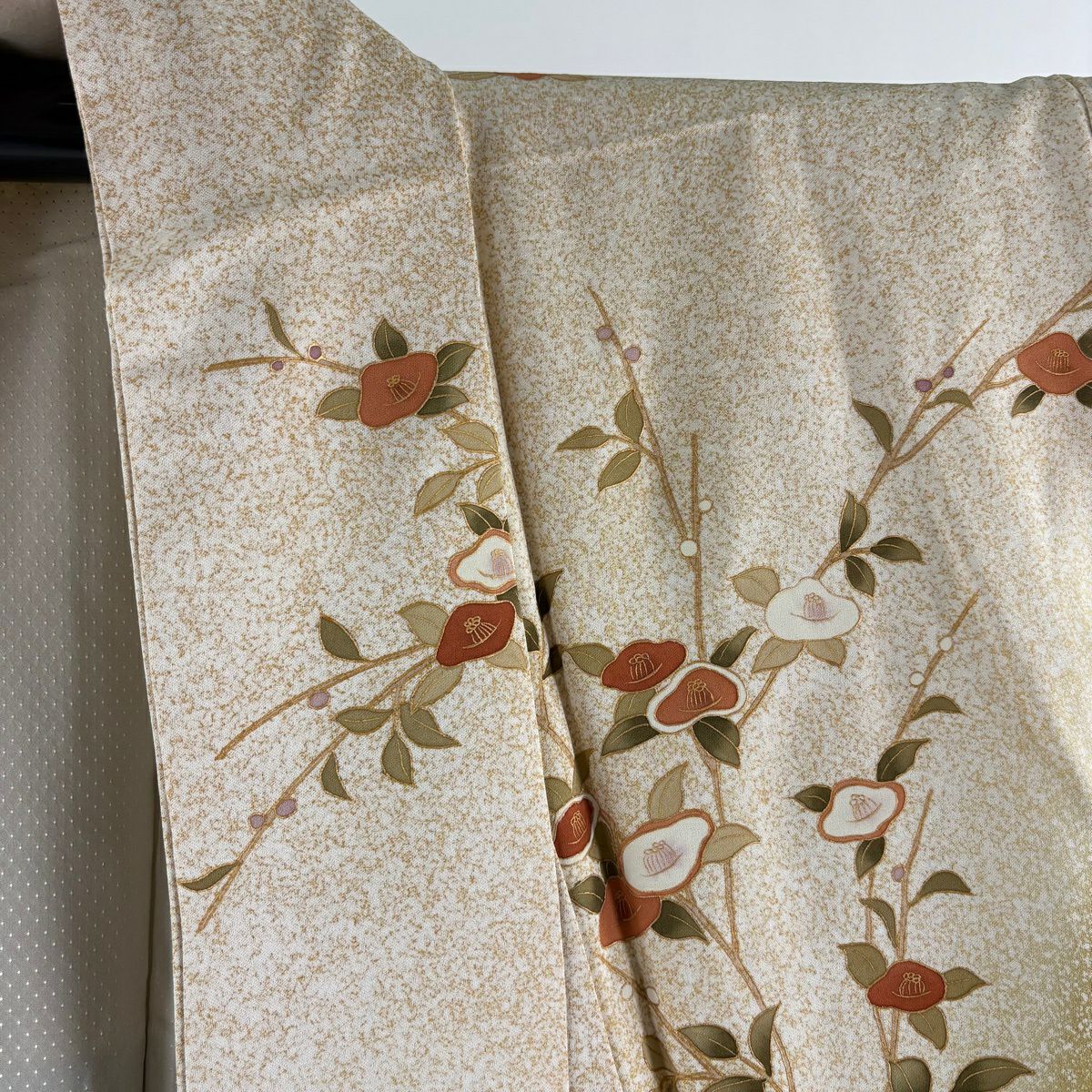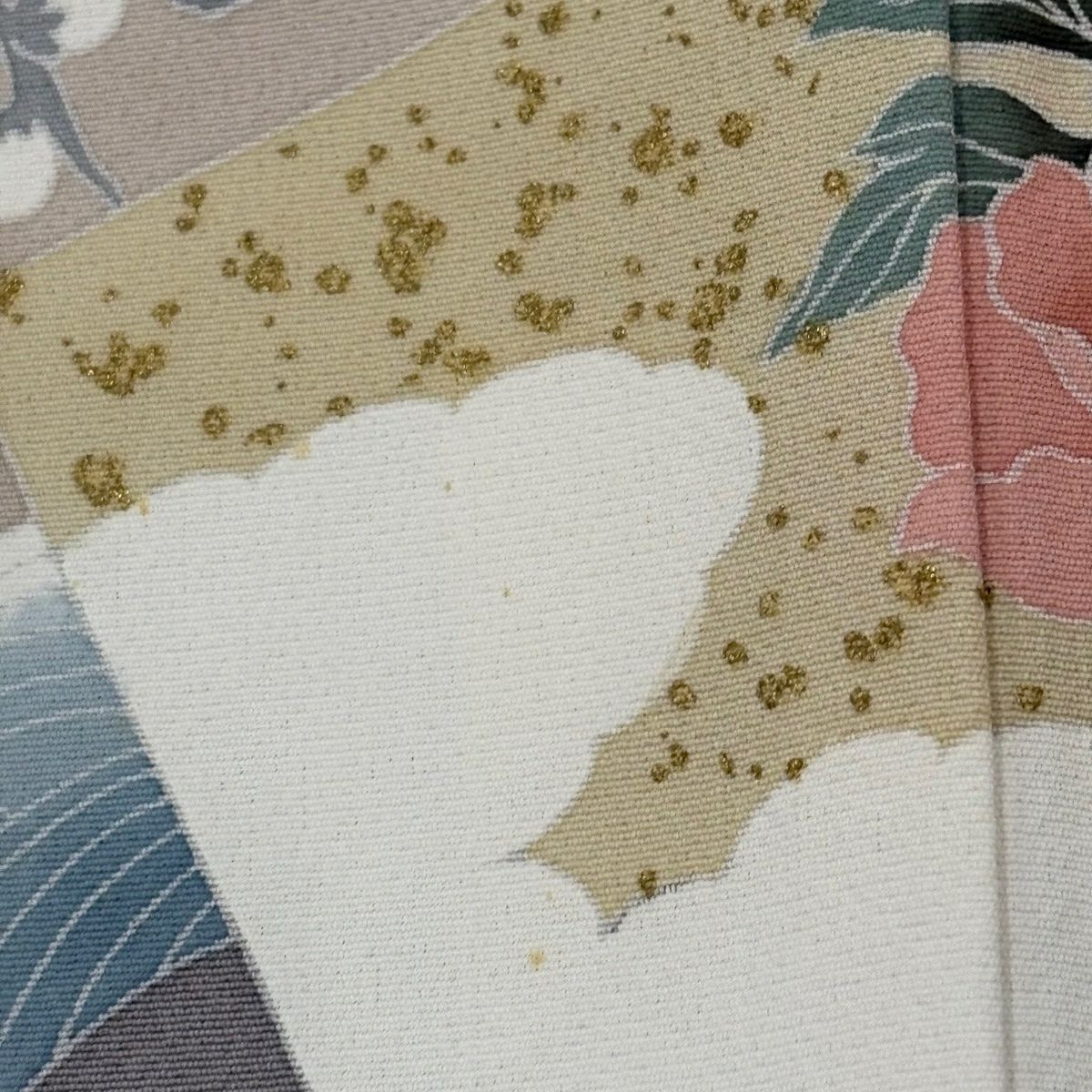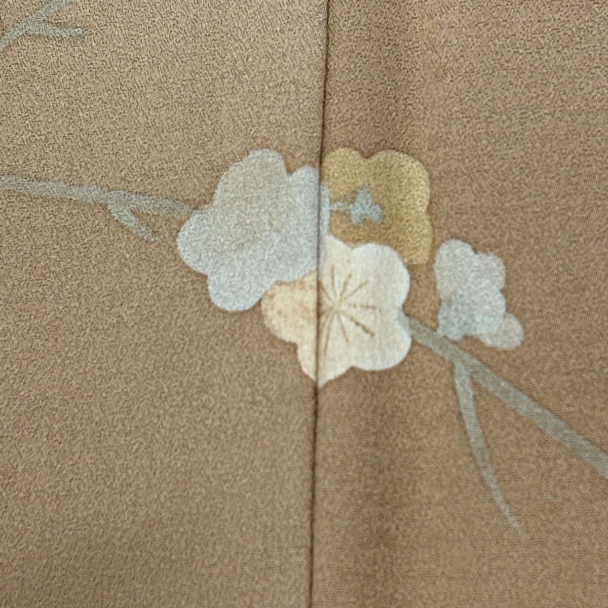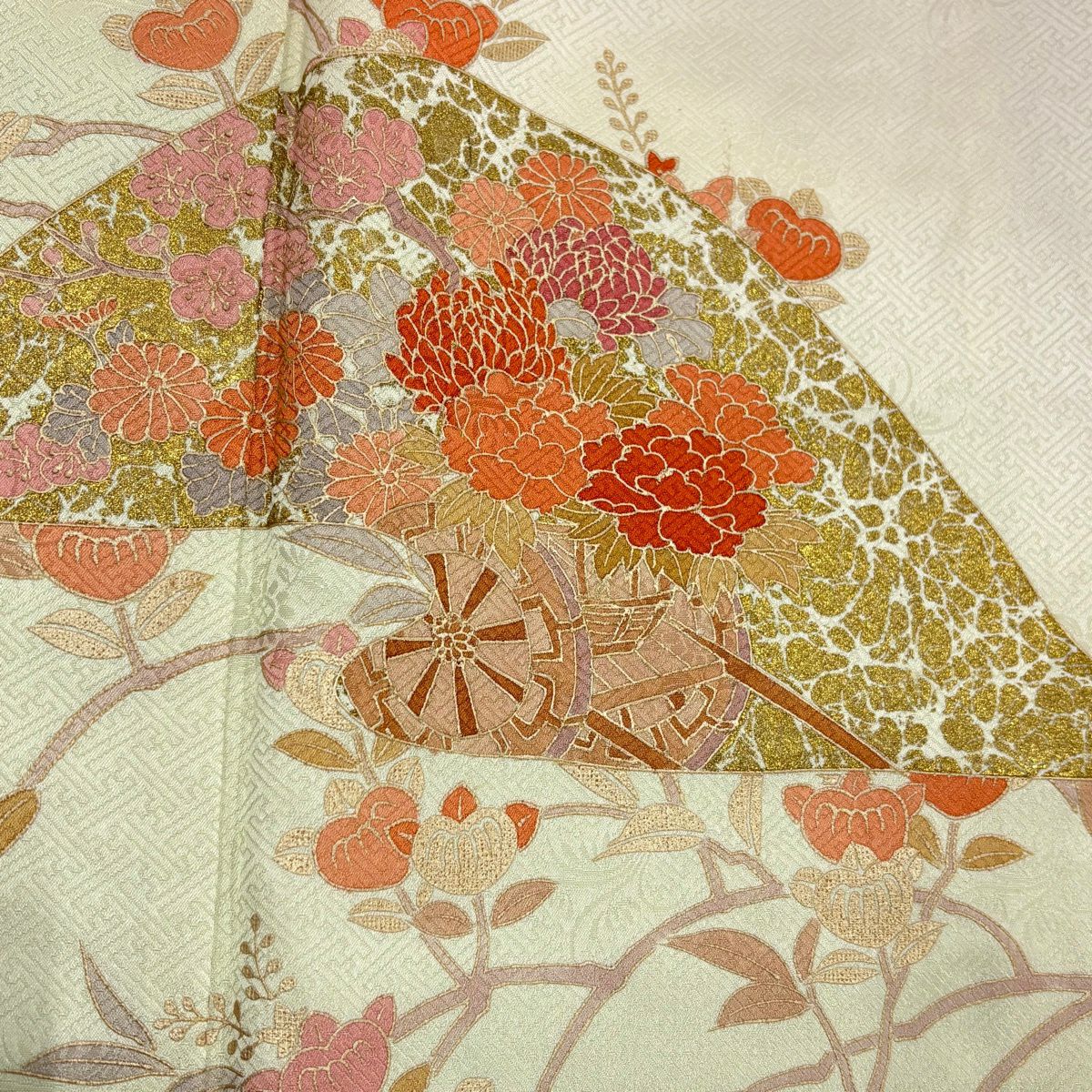 50%OFF 訪問着 身丈159cm 裄丈64.5cm M 袷 扇面 草花 金糸 金彩 薄茶色 正絹 秀品 K50