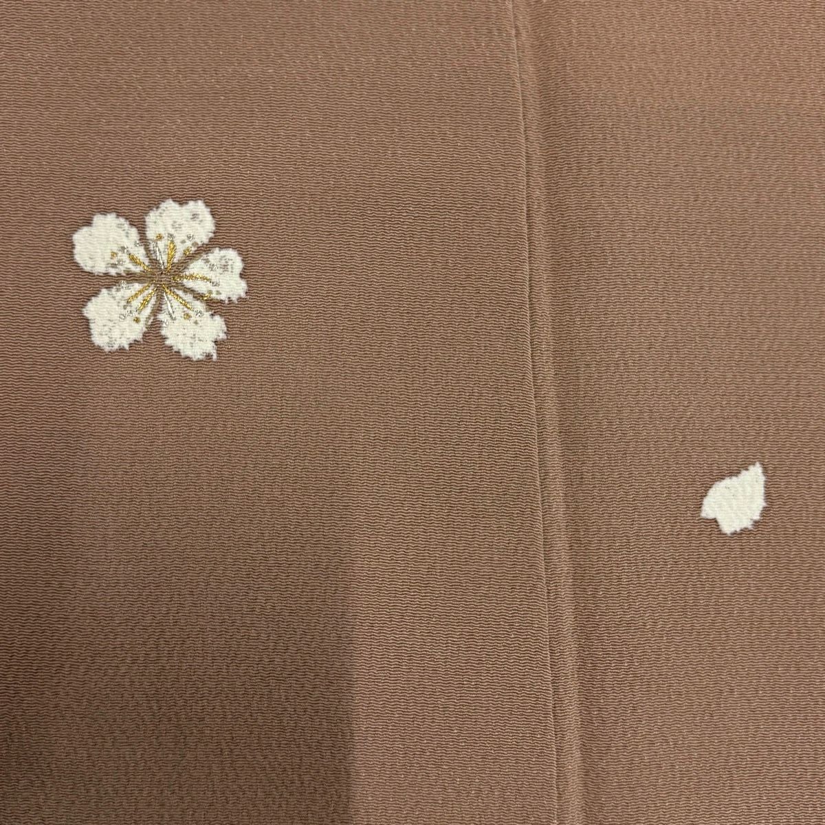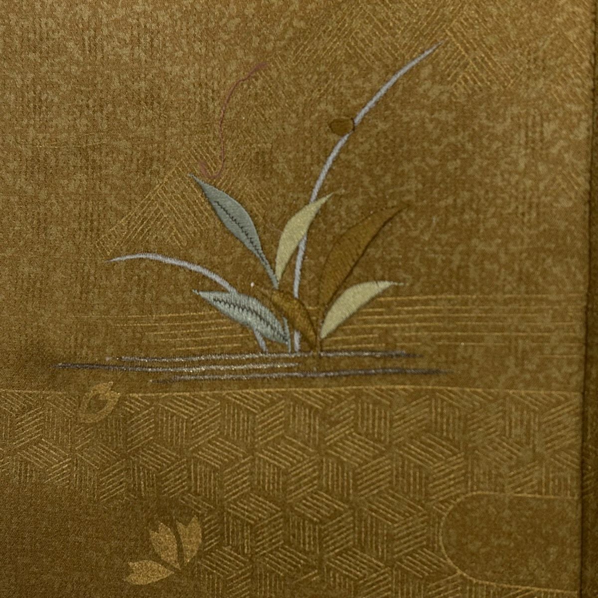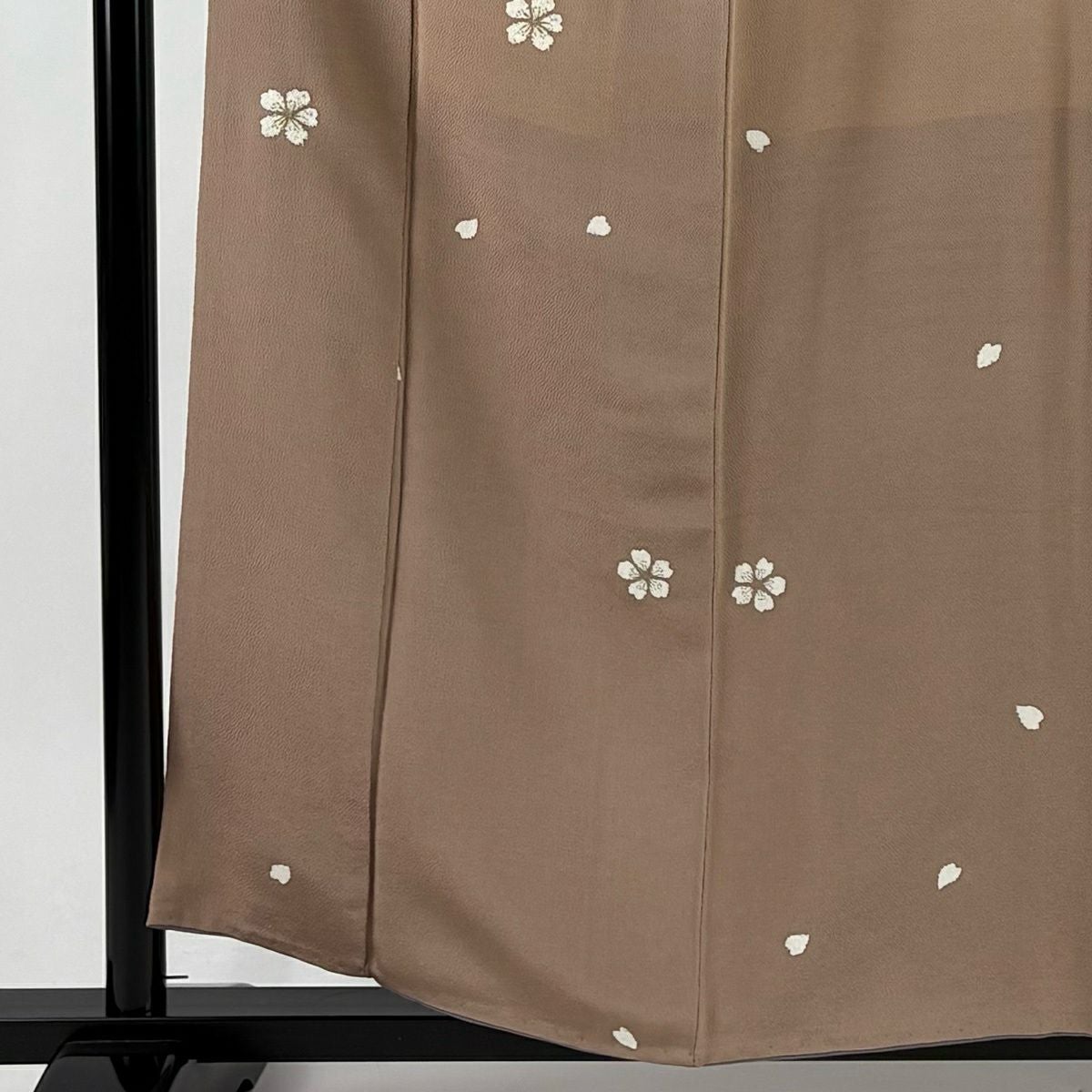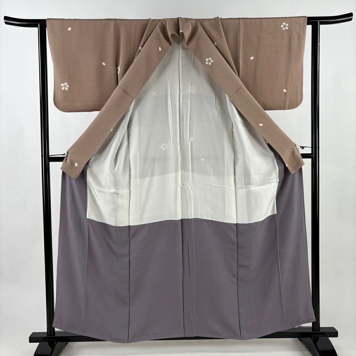 50%OFF 付下げ 身丈157cm 裄丈62.5cm S 袷 草花 流水 銀糸 刺繍 茶色 正絹 秀品 K50