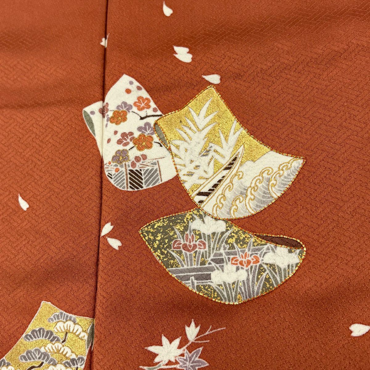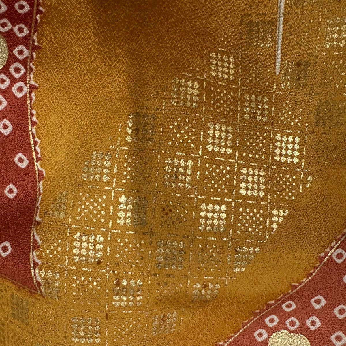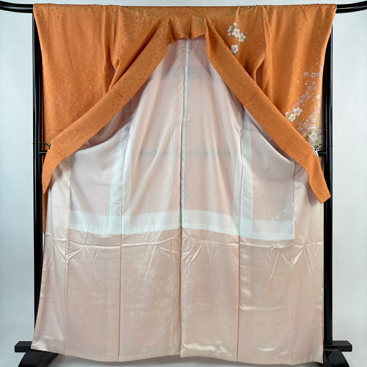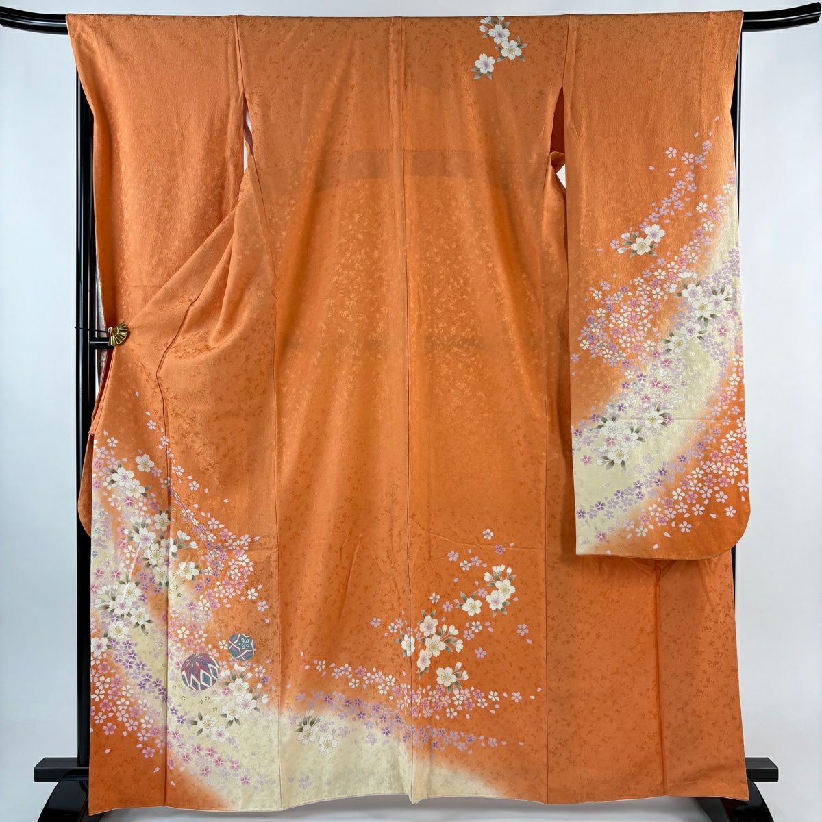 50%OFF 振袖 身丈165.5cm 裄丈67cm M 袷 桜 手鞠 金糸 金彩 オレンジ 正絹 秀品 K50