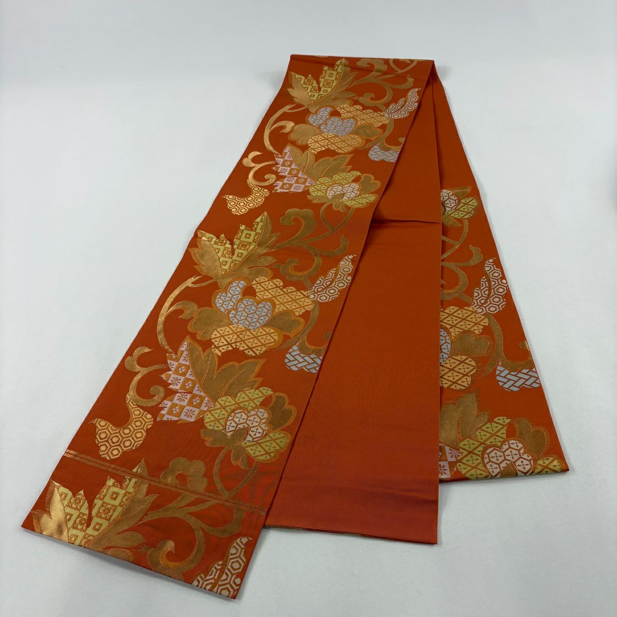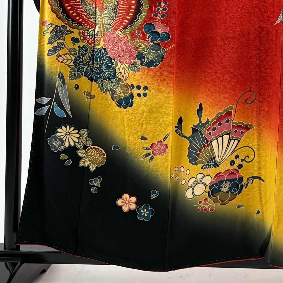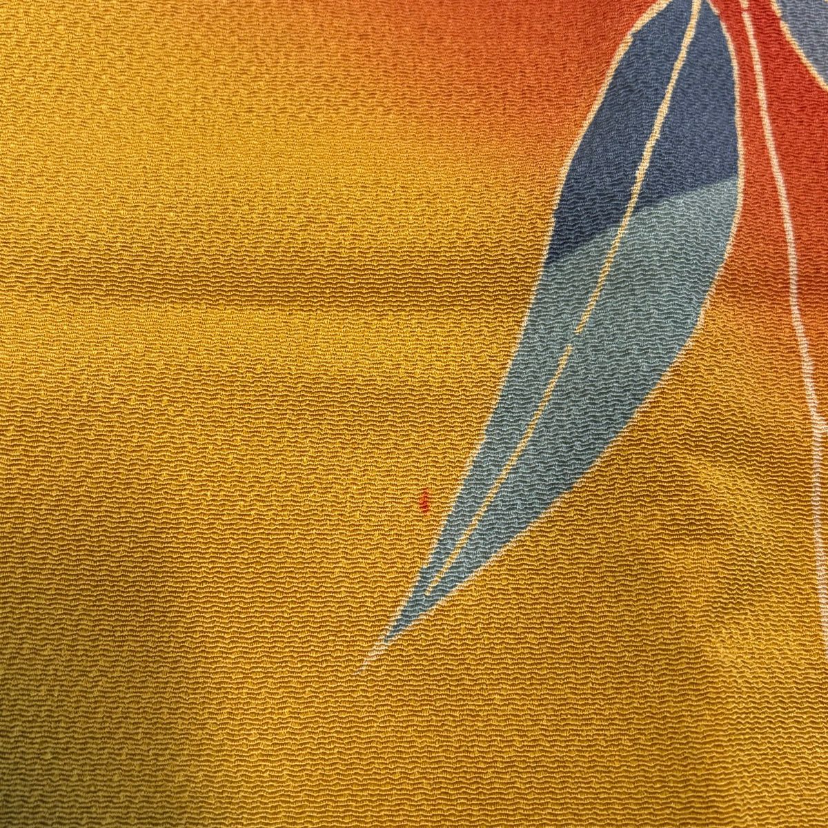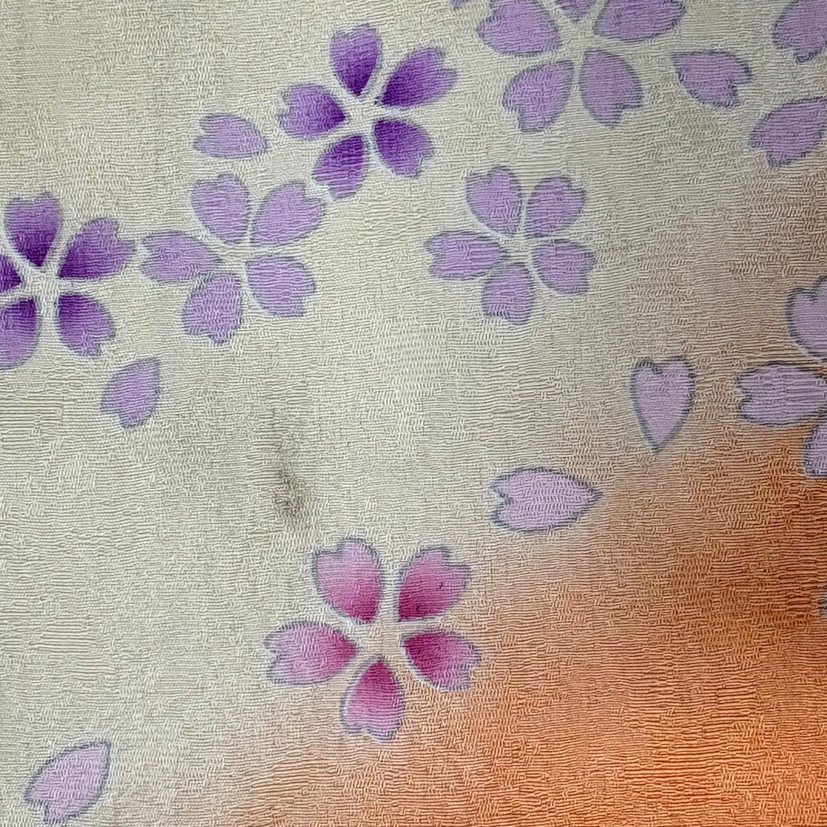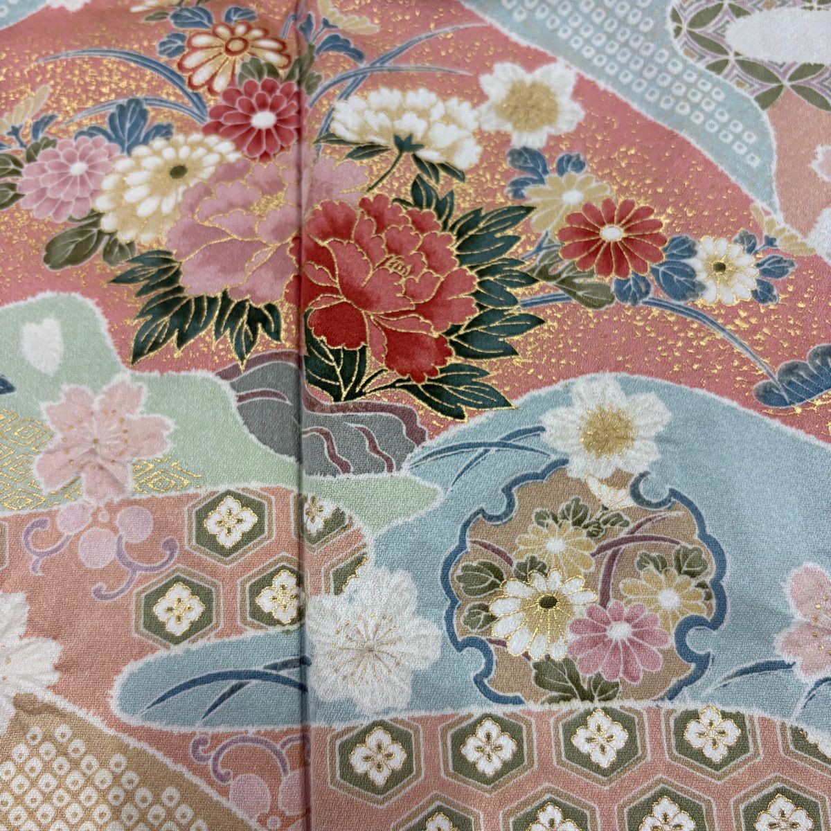 50%OFF 振袖 身丈165.5cm 裄丈67cm M 袷 桜 手鞠 金糸 金彩 オレンジ 正絹 秀品 K50