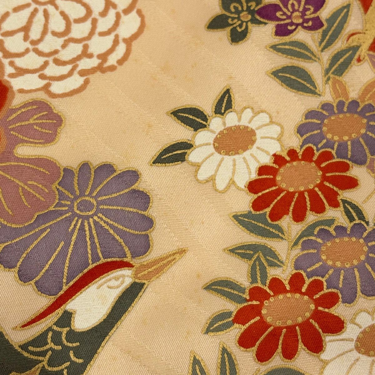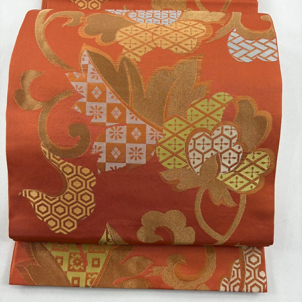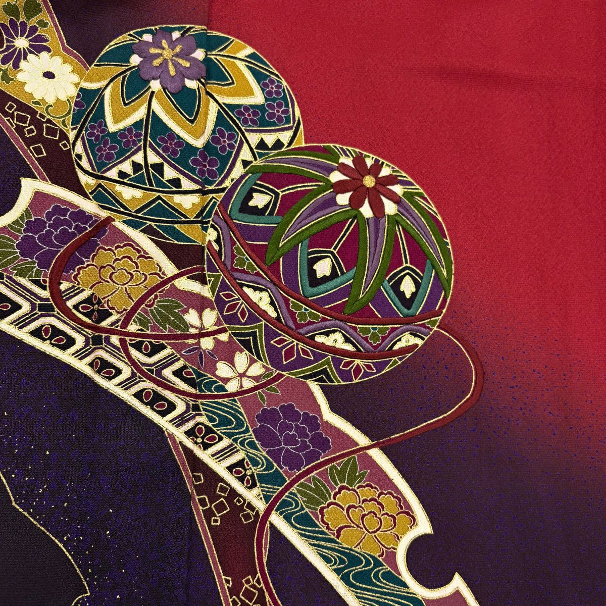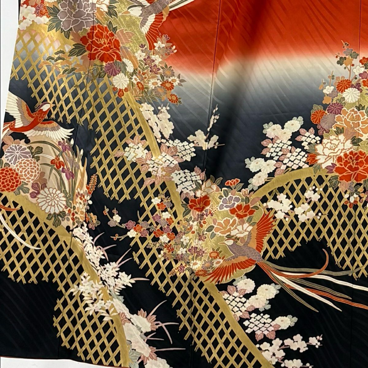 50%OFF 振袖 身丈165.5cm 裄丈67cm M 袷 桜 手鞠 金糸 金彩 オレンジ 正絹 秀品 K50
