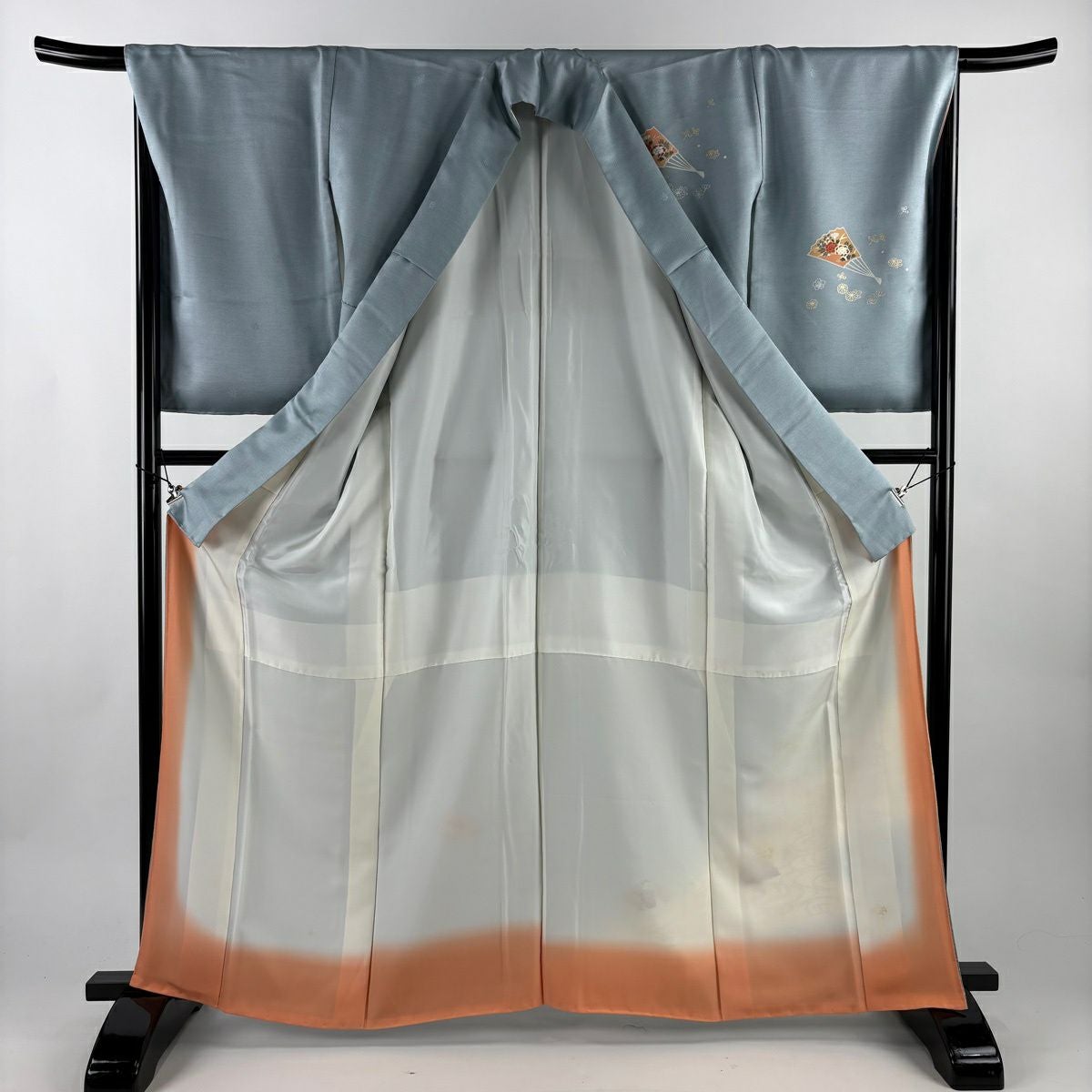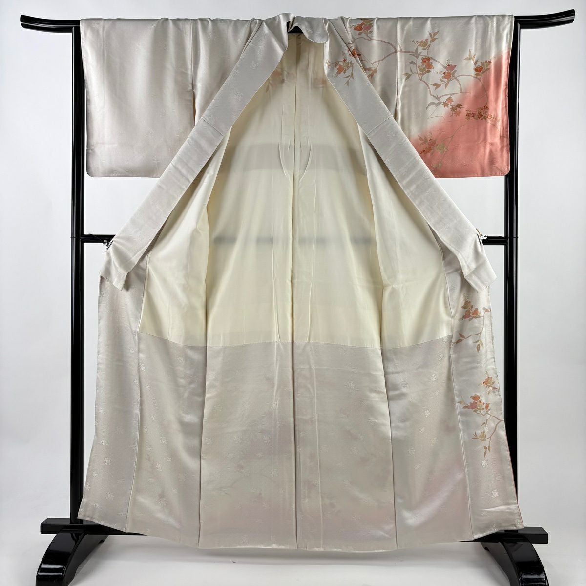 50%OFF 訪問着 身丈161.5cm 裄丈66.5cm M 袷 花車 橘 金彩 ぼかし 灰白 正絹 秀品 K50
