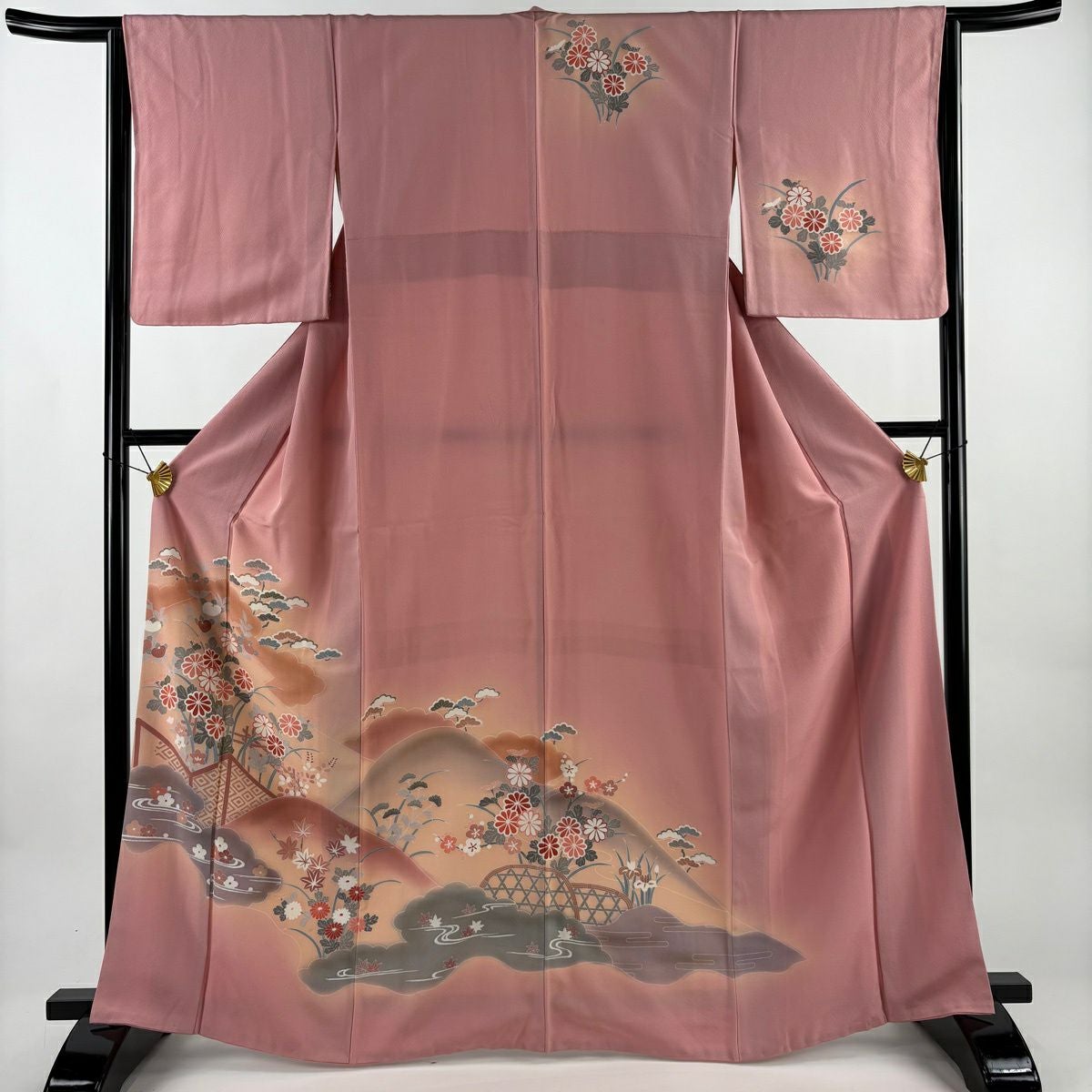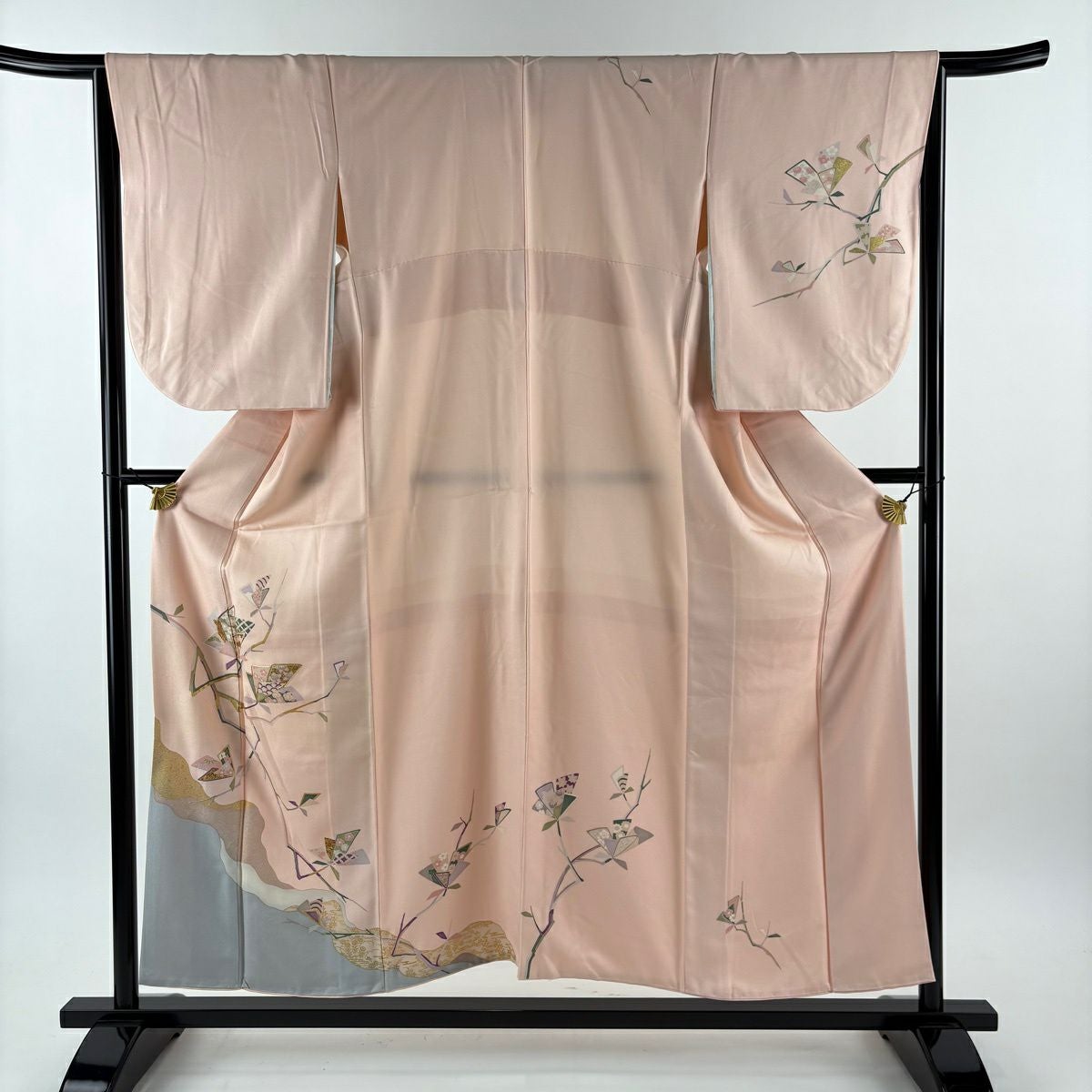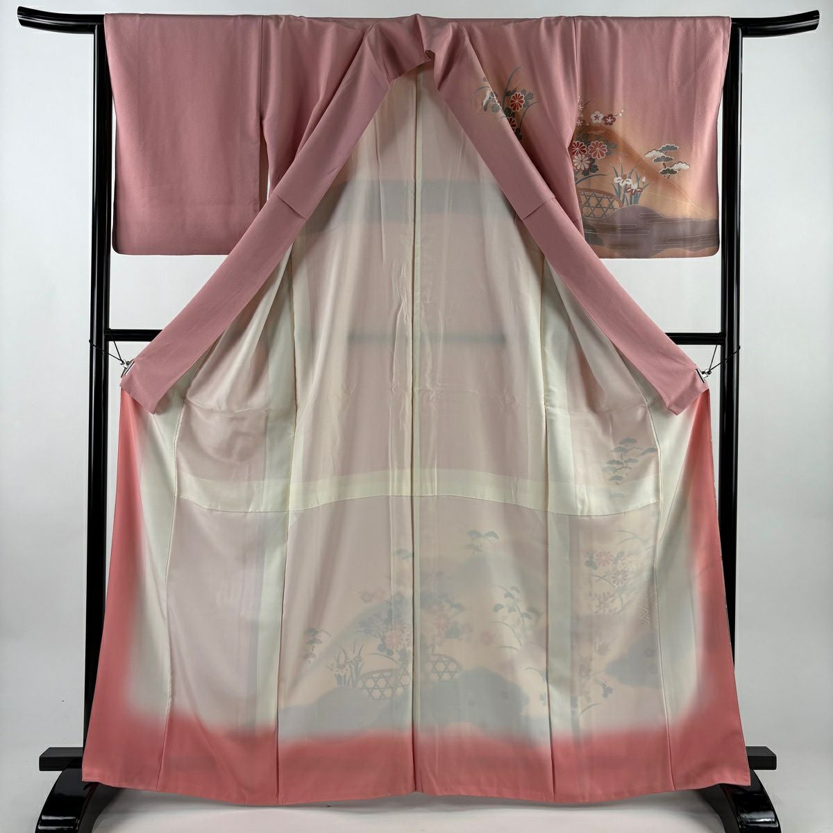 50%OFF 訪問着 身丈154cm 裄丈65.5cm M 袷 枝花 霞 金糸 金彩 ピンク 正絹 秀品 K50