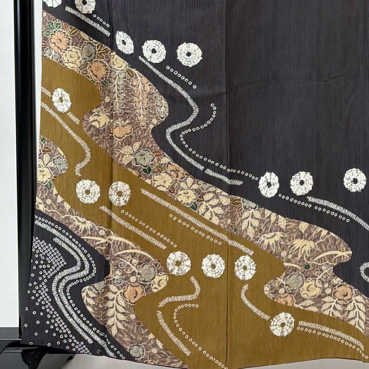 50%OFF 【美品】 訪問着 身丈162cm 裄丈63.5cm S 袷 辻が花柄 笹 墨色 正絹 秀品 K50
