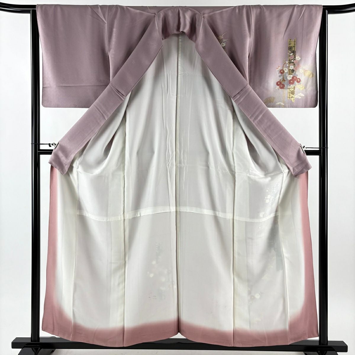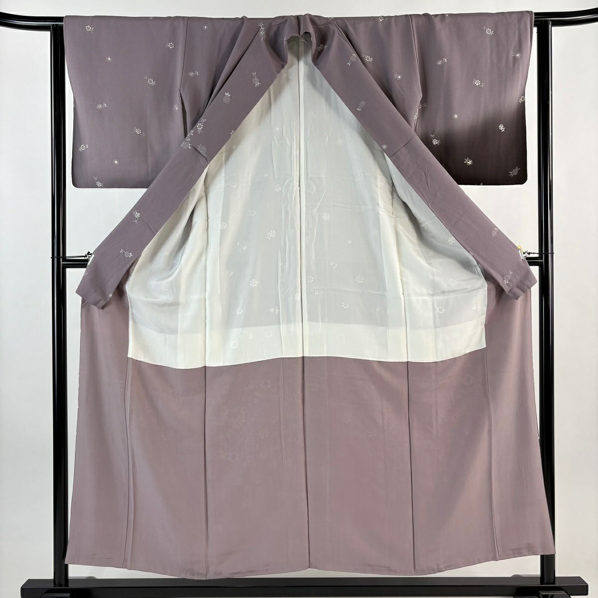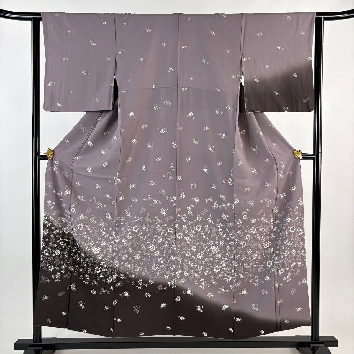 50%OFF 付下げ 身丈154cm 裄丈62.5cm S 袷 草花 染め分け ぼかし 灰紫 正絹 秀品 K50