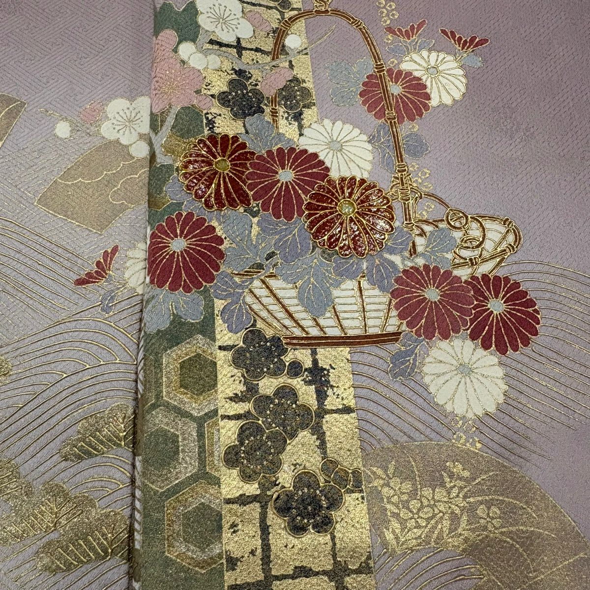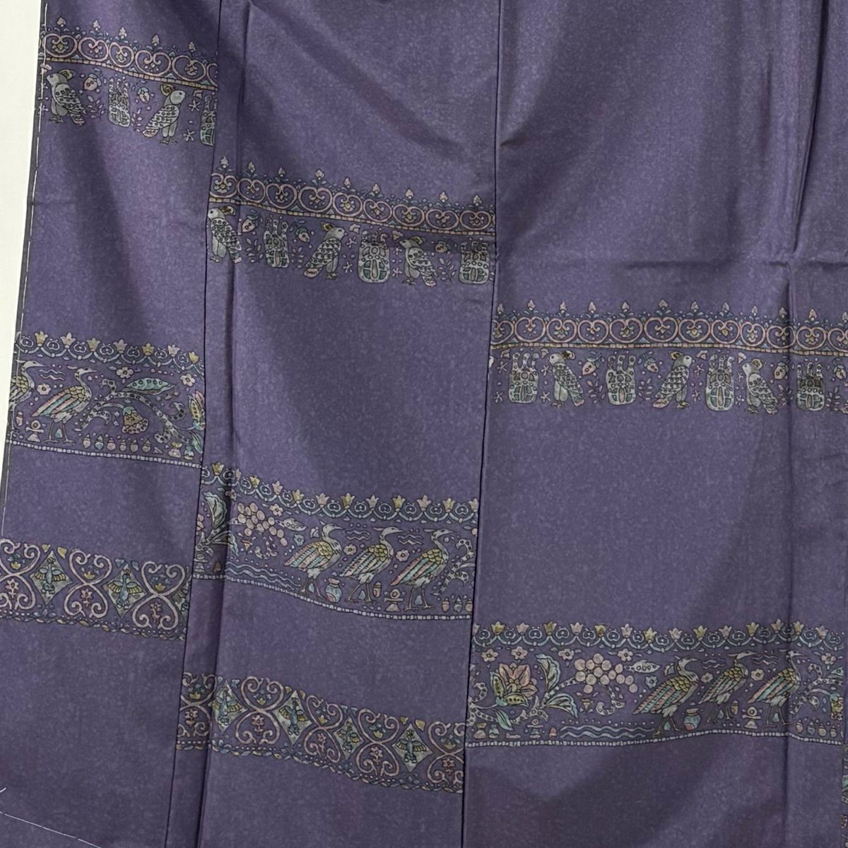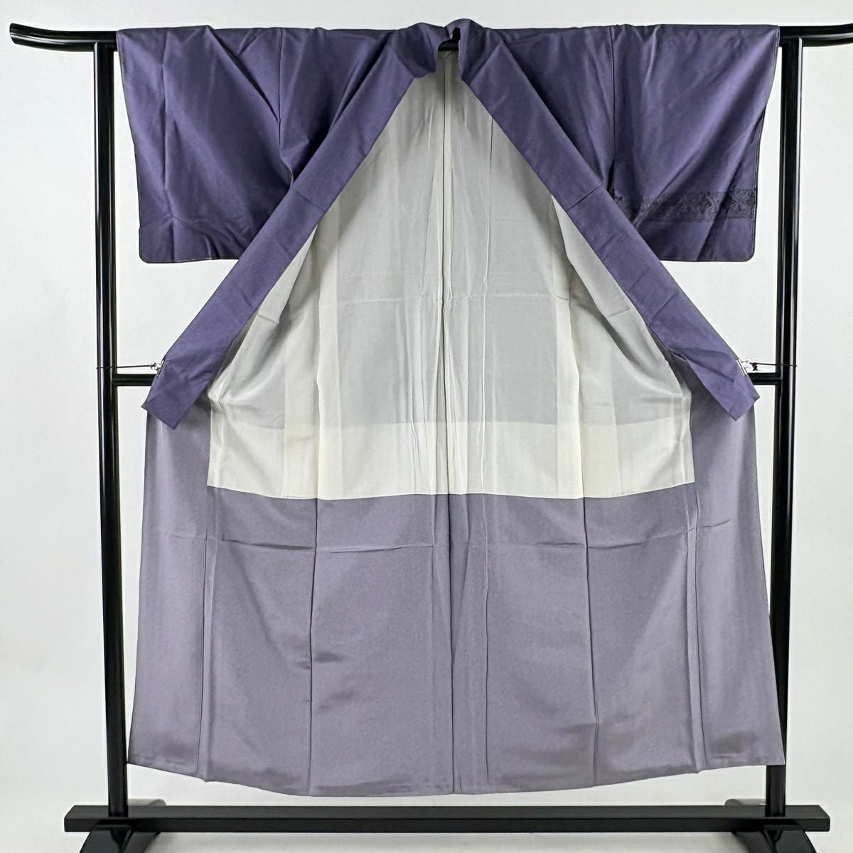 50%OFF 付下げ 身丈154cm 裄丈62.5cm S 袷 草花 染め分け ぼかし 灰紫 正絹 秀品 K50