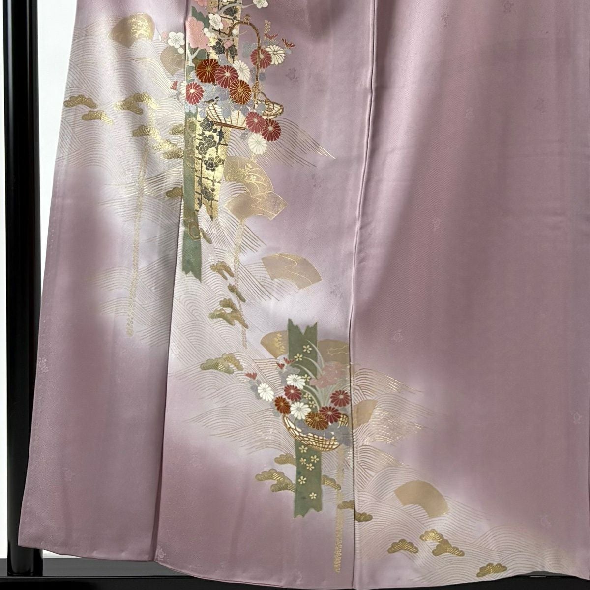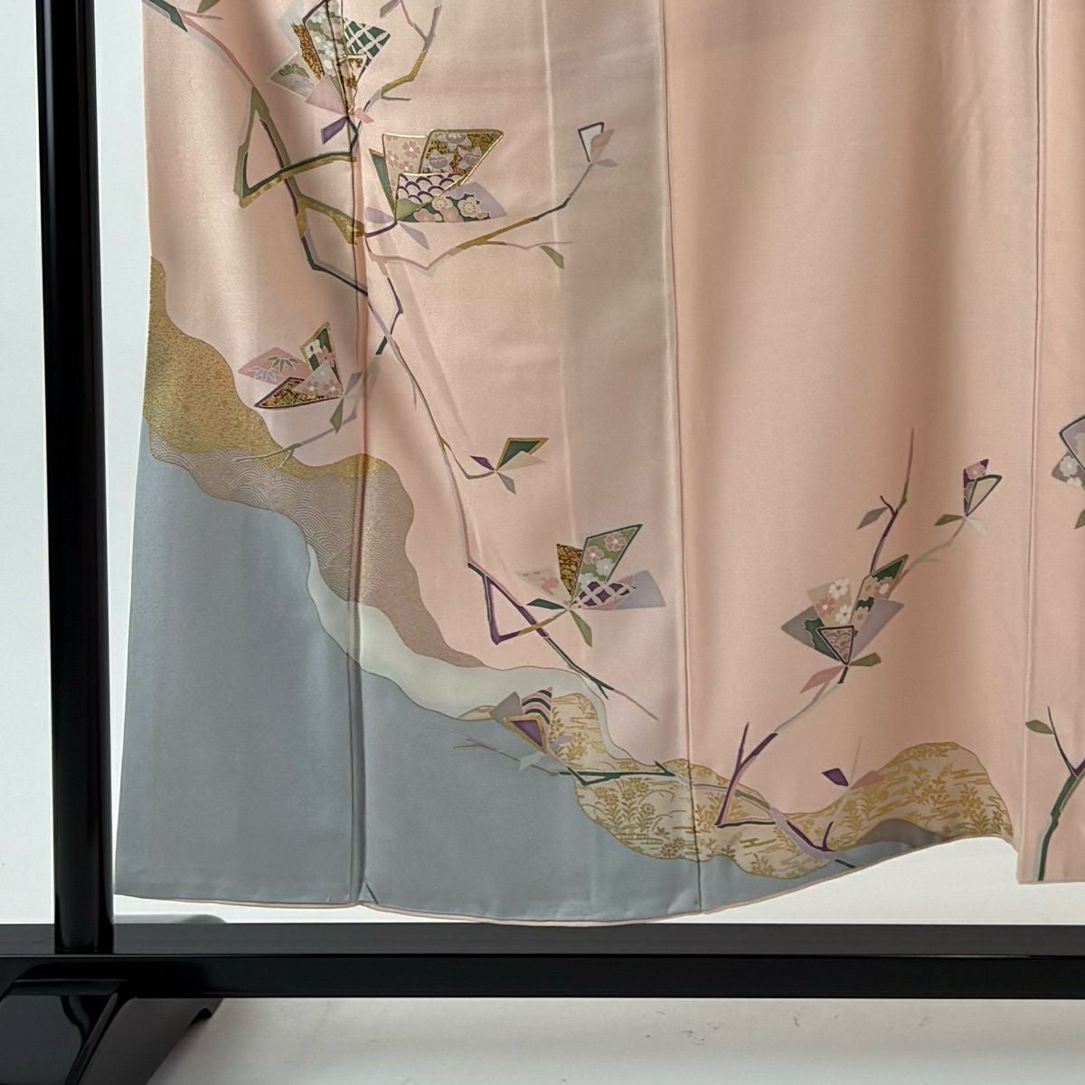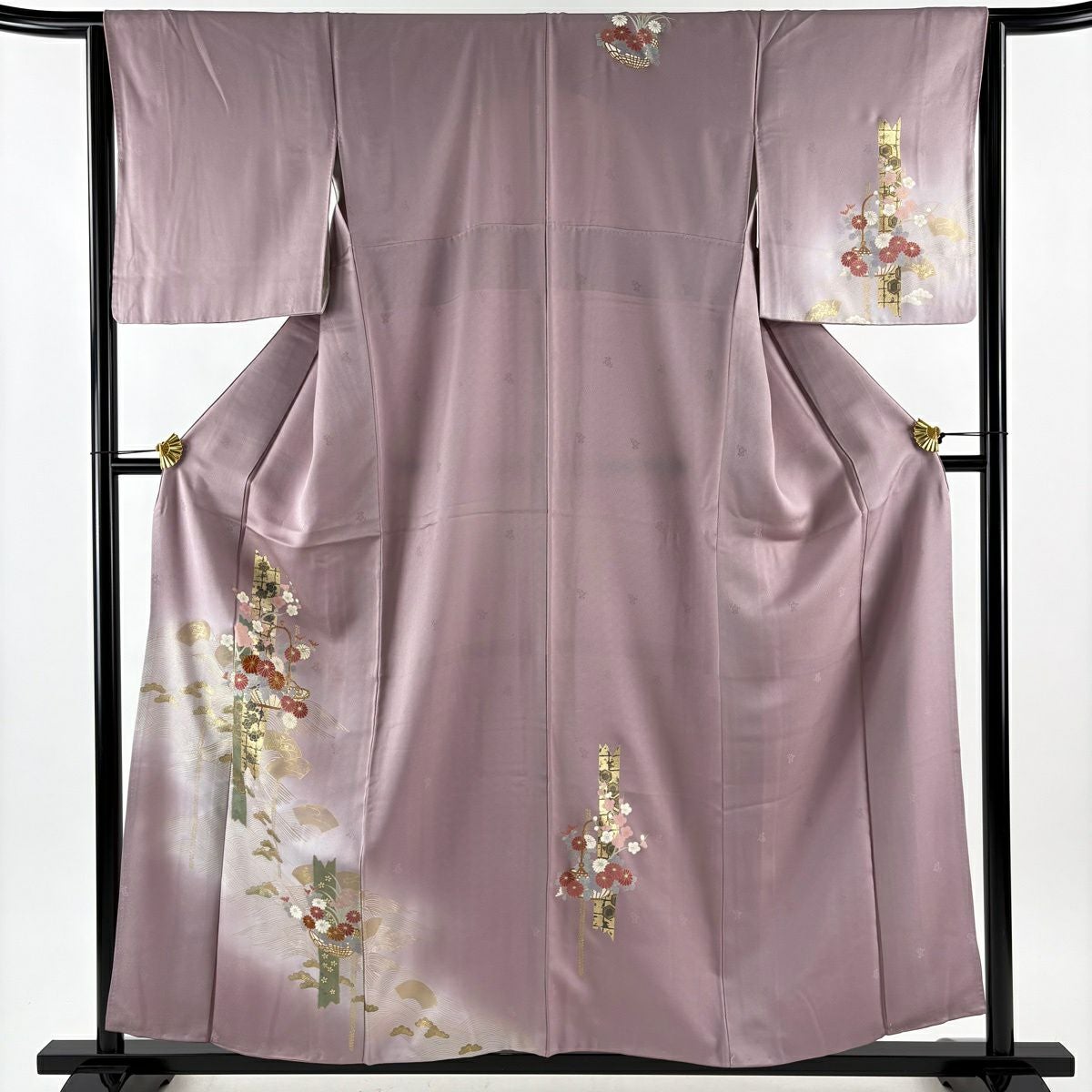 50%OFF 訪問着 身丈157cm 裄丈64cm M 袷 色紙 松竹梅 金糸 金彩 ピンク 正絹 秀品 K50