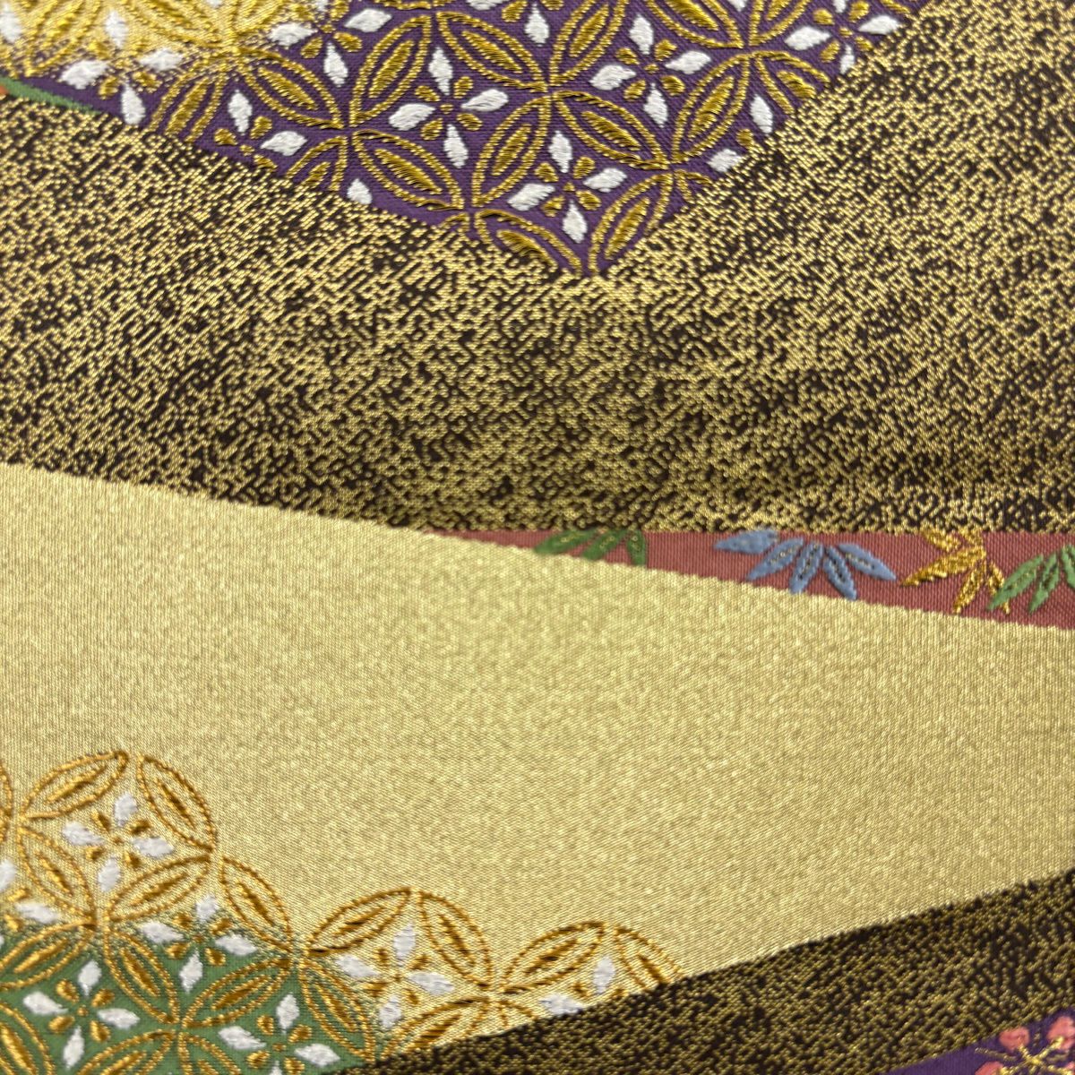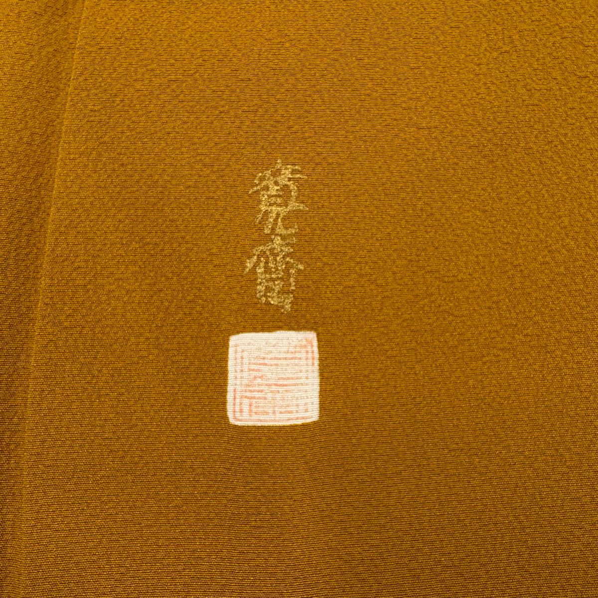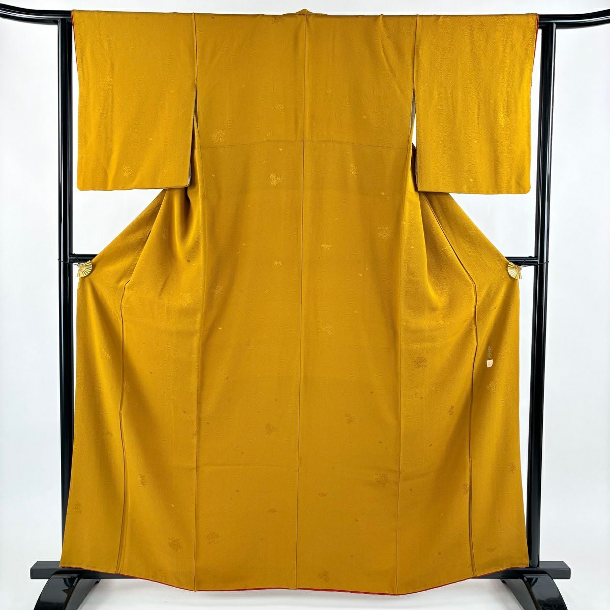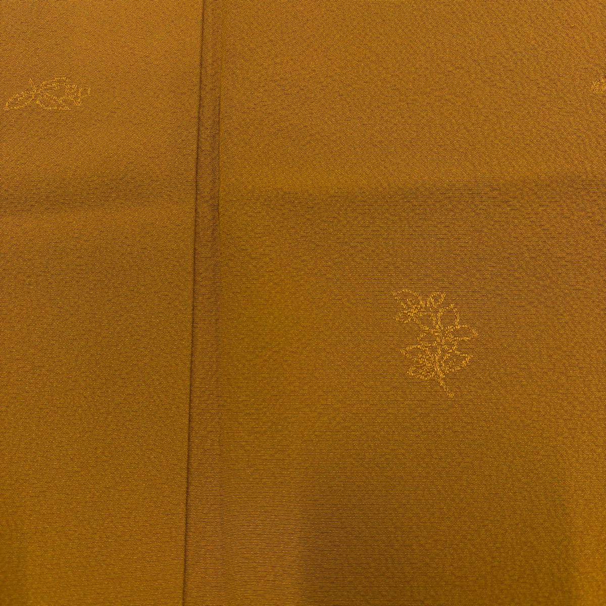 70%OFF 【美品】 小紋 身丈162.5cm 裄丈66cm M 袷 橘 笹 金彩 黄土色 正絹 秀品 K70