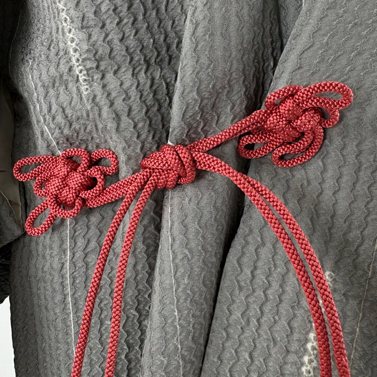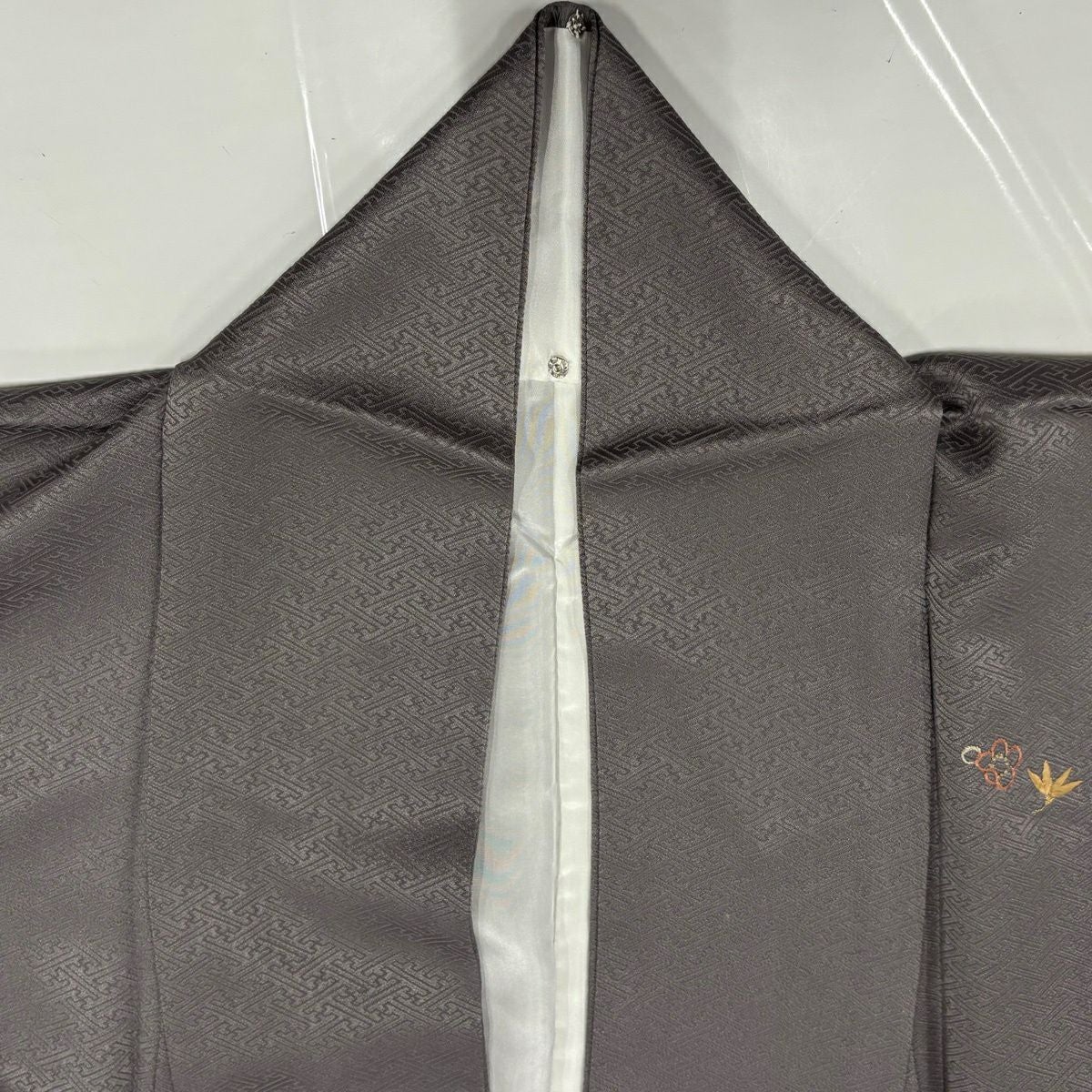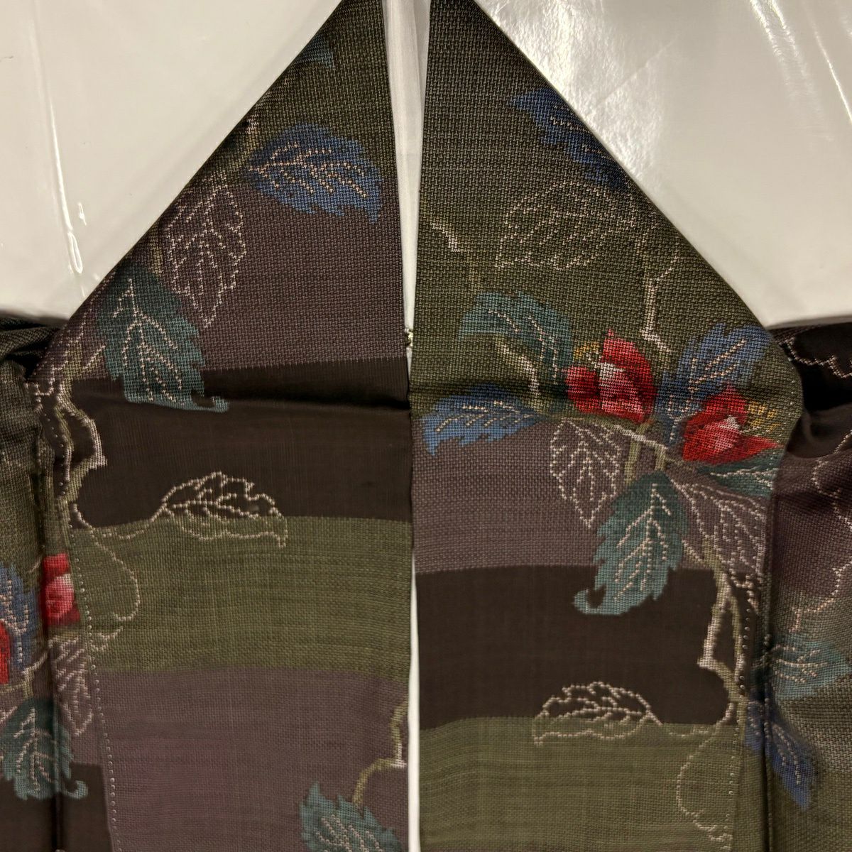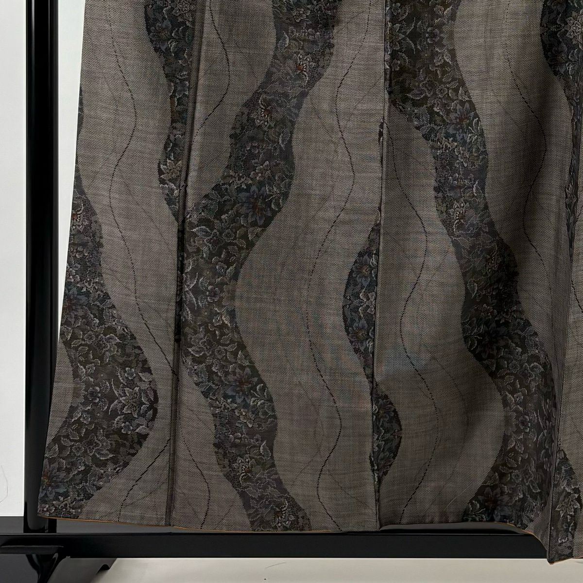 【最終値引き】 70%OFF 紬 身丈159cm 裄丈63cm S 袷 草花 よろけ縞 灰茶 正絹 秀品 K70